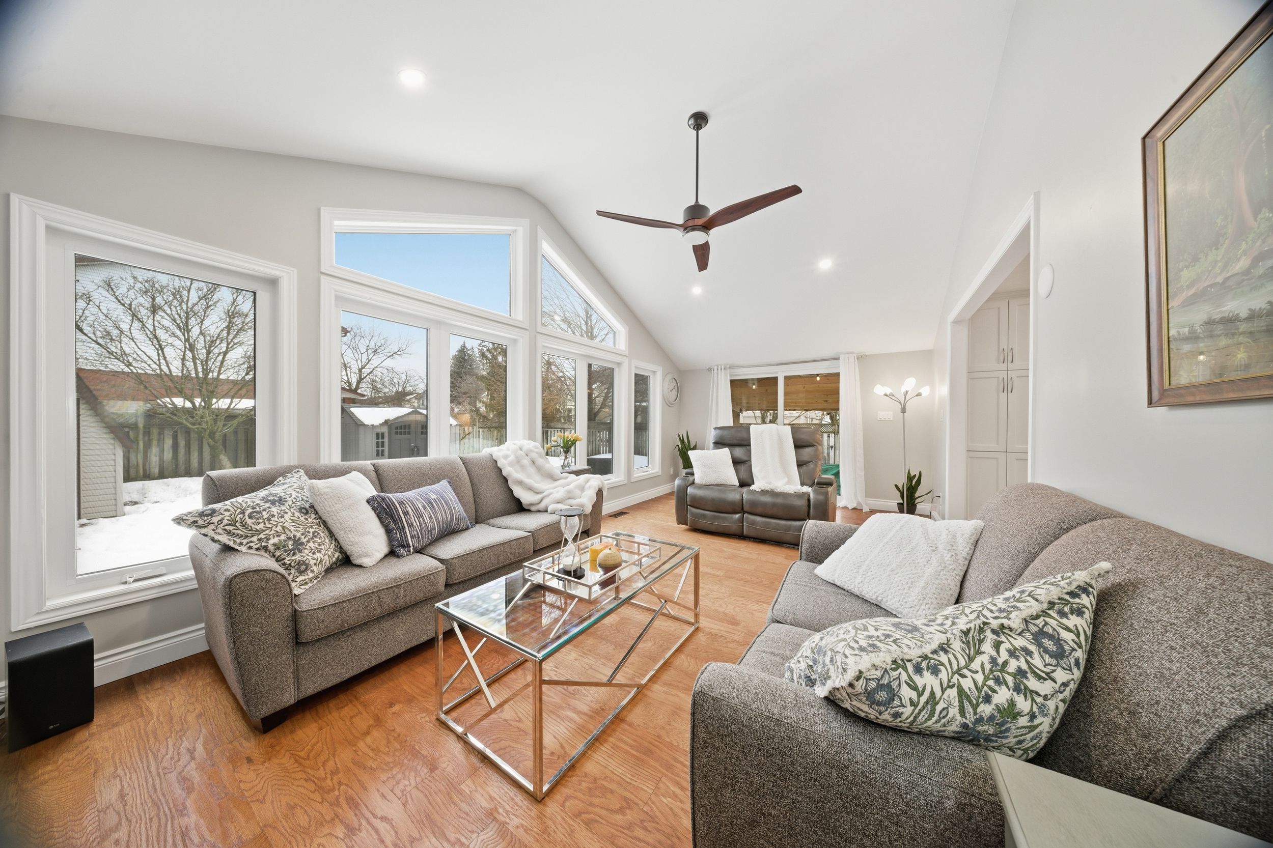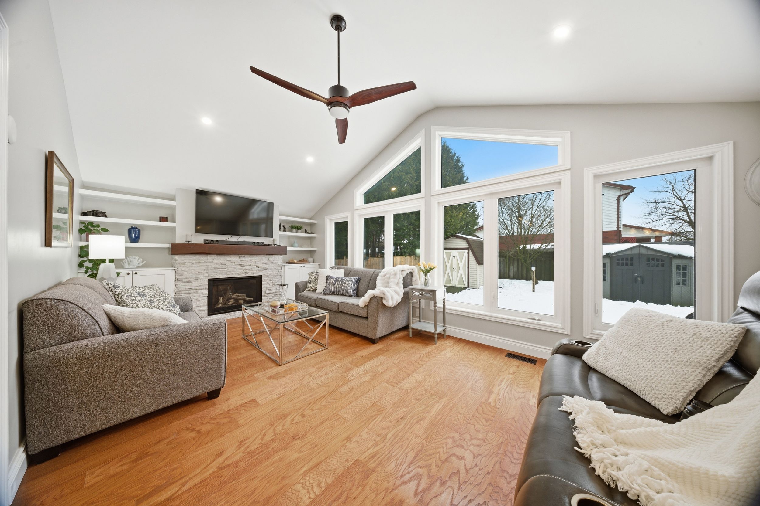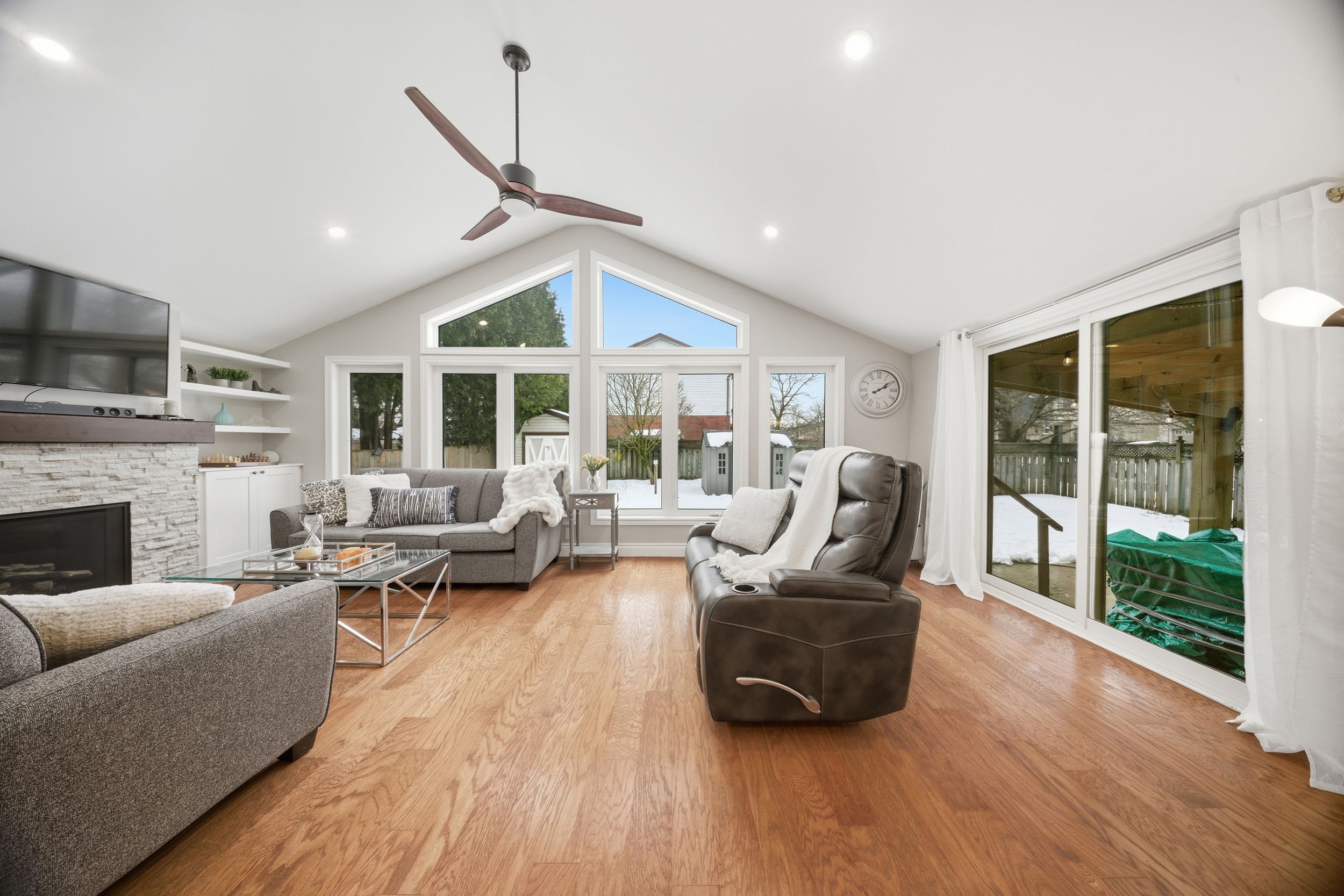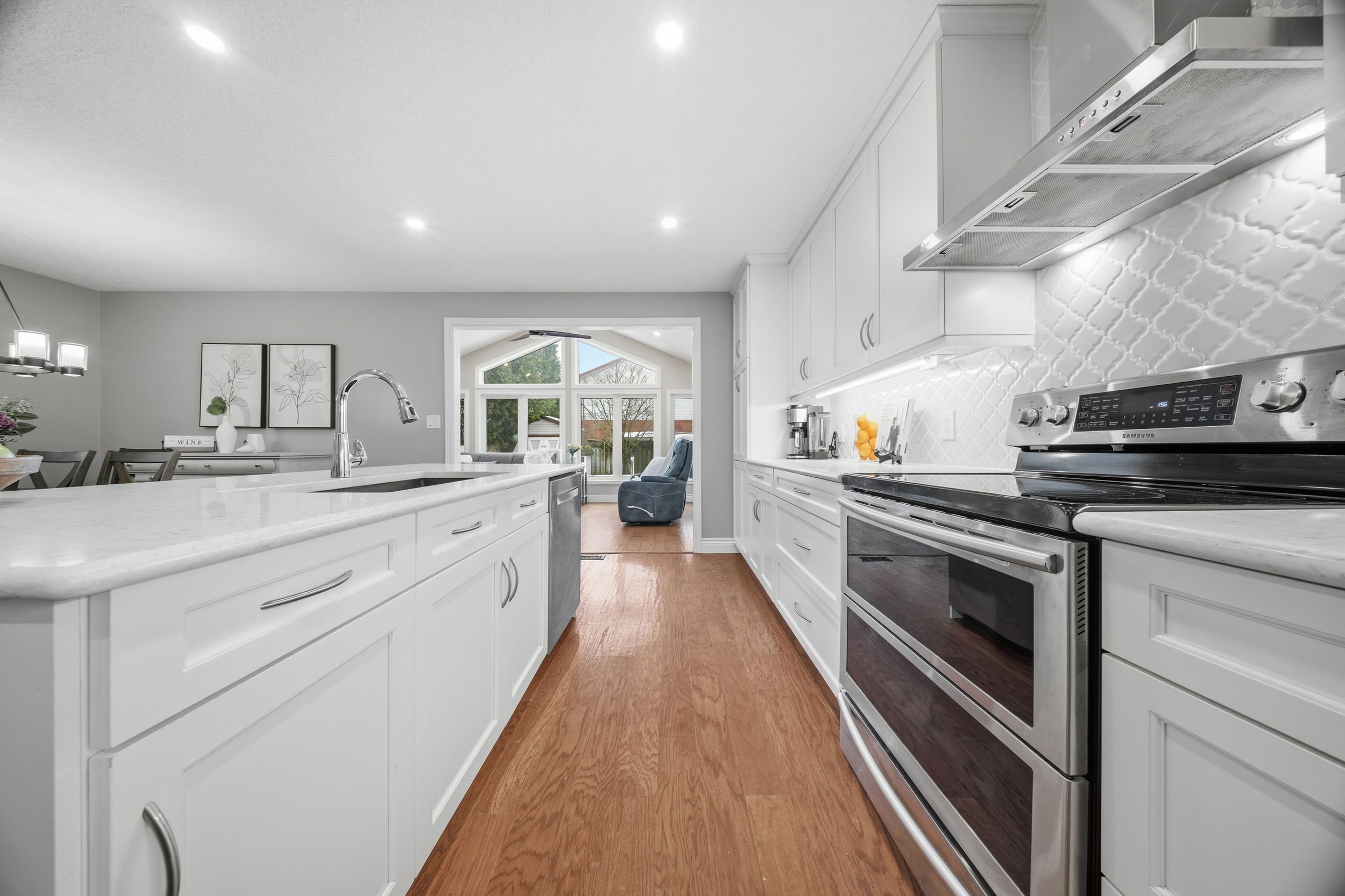 Bungalow living, at its finest in the fiddlesticks community. This beautifully maintained open-concept home offers approximately 2850 sf of living space. It boasts ease of main-floor living with the added flexibility of a fully finished lower level. Whether you're a baby boomer ready to simplify, empty nesters seeking comfort without stairs, retirees planning your next chapter, or a young family looking to settle into a safe and welcoming neighbourhood, this home adapts beautifully to every stage of life. **you'll fall in love with the grand family room featuring vaulted ceilings, a cozy gas fireplace, and a stunning wall of windows that floods the space with natural light while overlooking the backyard. **three main-floor bedrooms provide everyday convenience, while the finished basement offers exceptional bonus space for guests, hobbies, a home office, or extended family. There is even roughed in plumbing at the bar should you need a 2nd kitchen or wet bar. ** just minutes from shade's mills conservation area - a local favourite for kayaking, paddleboarding, sports, fishing, canoeing, cross country skiing with groomed trails and over 12 kilometres of marked trails for mountain biking and hiking. Year-round outdoor enjoyment. **this location blends lifestyle and practicality. Excellent schools, parks, shopping, and quick access to major routes make daily living seamless. Quiet streets. Mature trees. A true sense of community. ** this is the kind of home that makes life simpler - and weekends better!**