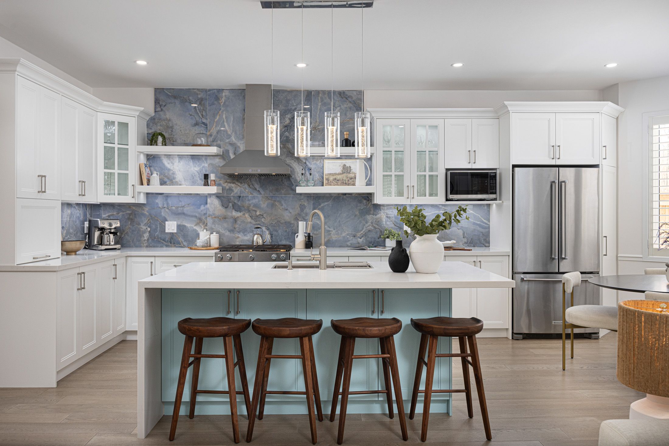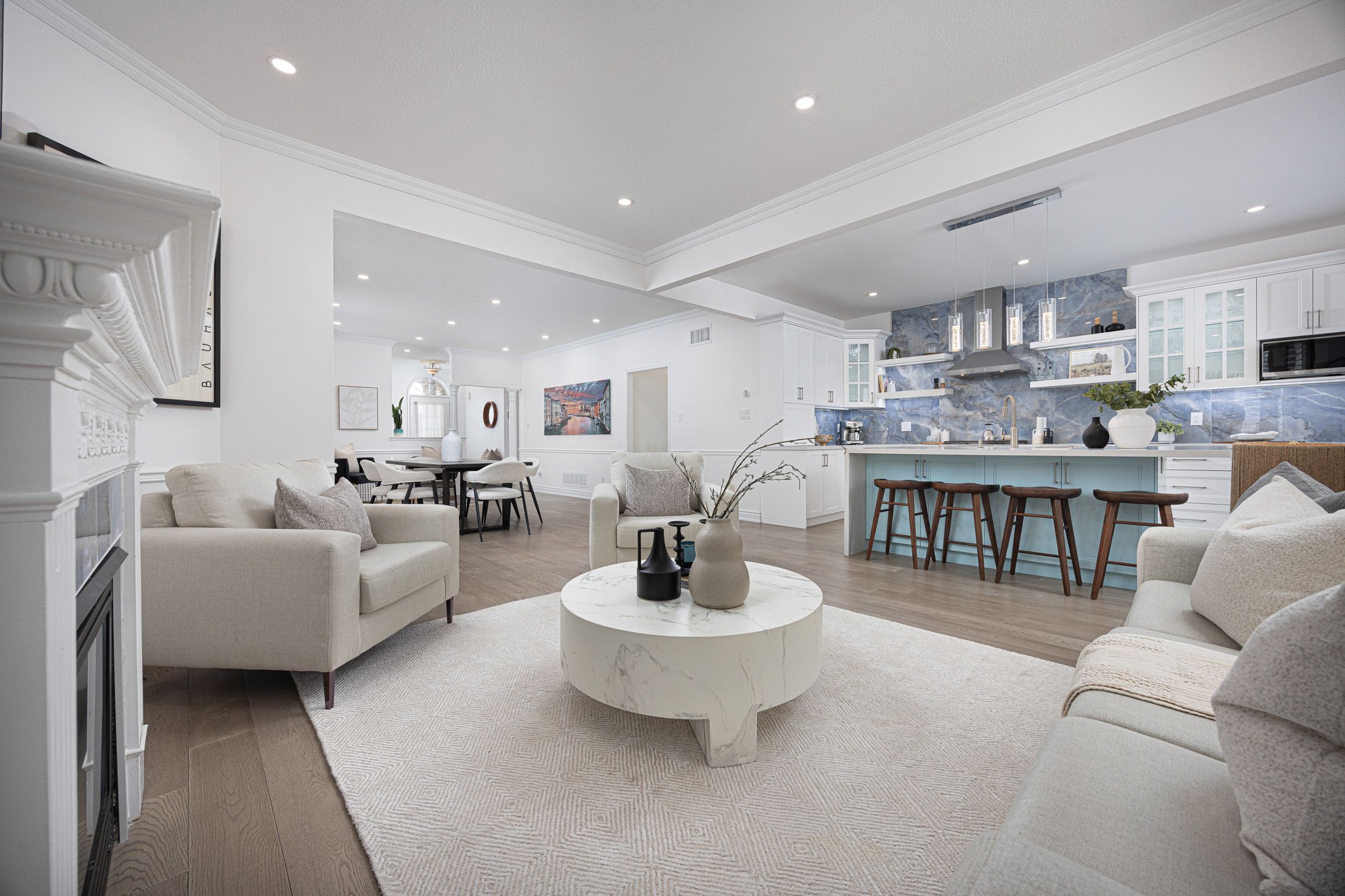 • Bright open-concept layout with 9-foot ceilings for a spacious feel.