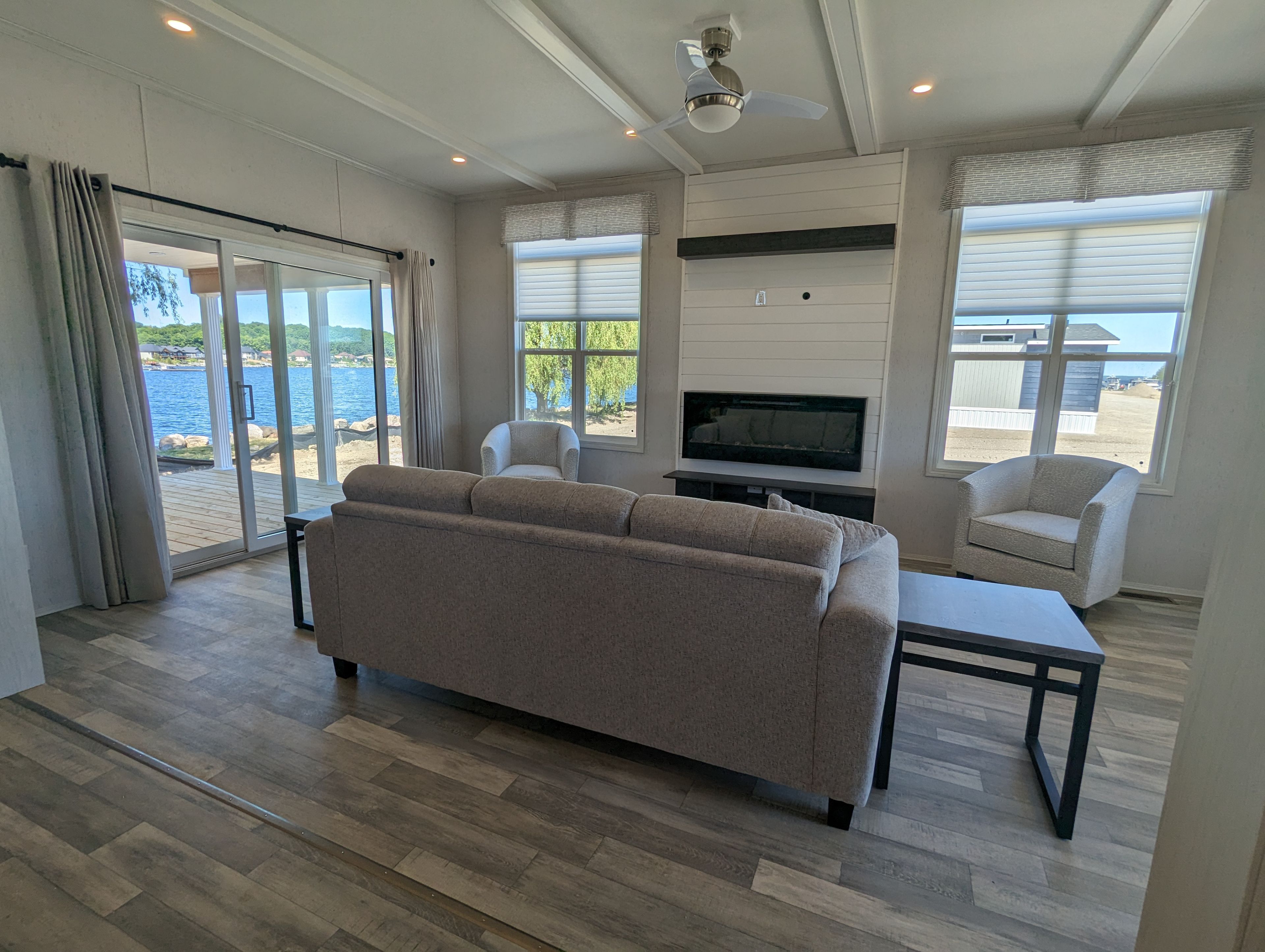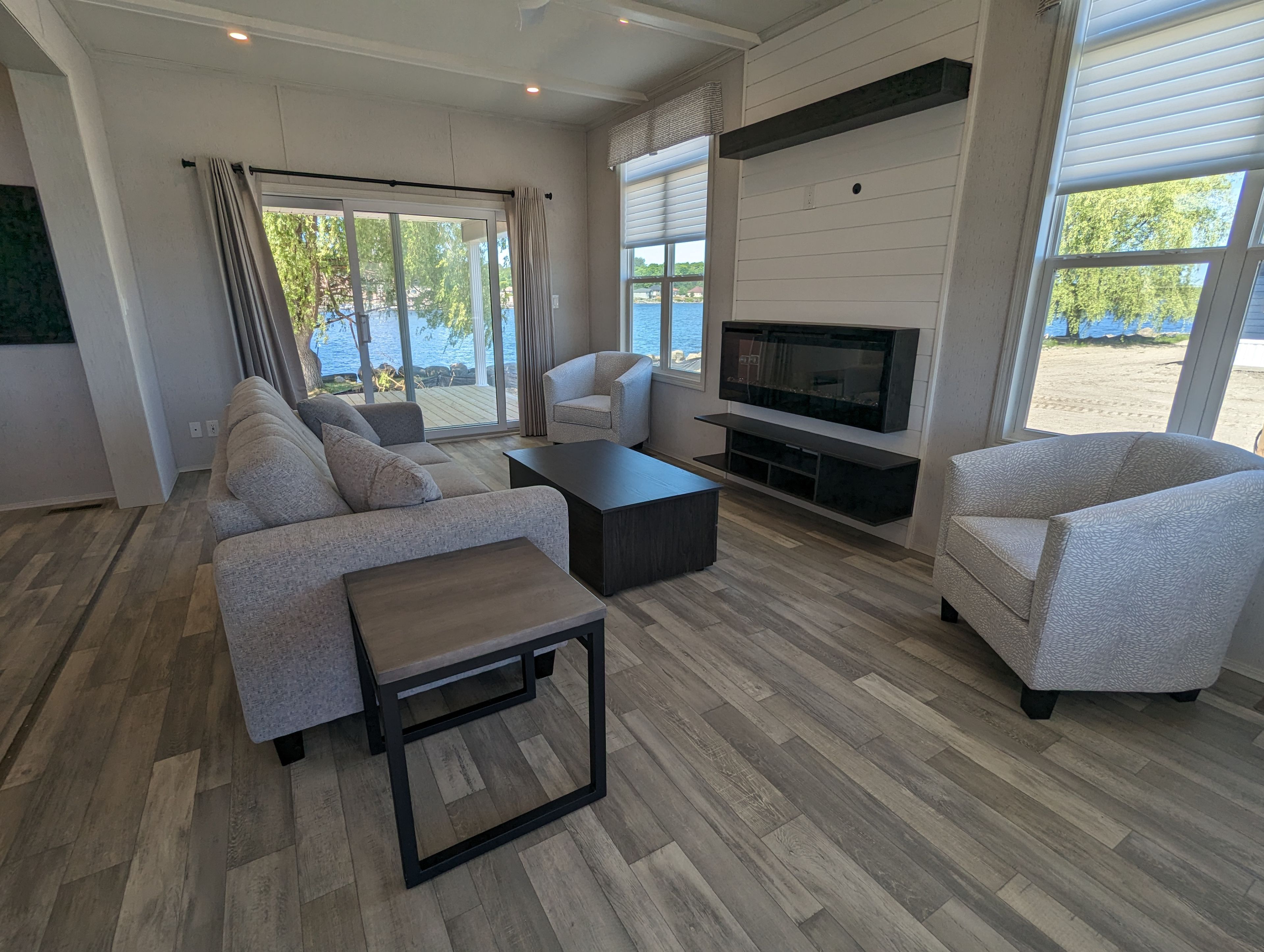 Situated on a rare, premium waterfront end lot (lot 47) right on the shores of georgian bay, this brand-new beckwith cottage model offers 780 sq ft of beautifully designed living space. With 2 bedrooms and 2 bathrooms, this move-in-ready cottage is part of the exclusive phase 1 release and is in one of the most sought-after areas of the resort. Proudly manufactured in canada, its the perfect place to embrace the 2025 cottage season. This modern, well-planned cottage combines dining, living, and storage areas in an open-concept layout. The space is enhanced by two covered outdoor patios where you can take in stunning sunsets over the bay. Inside, you'll find premium inclusions such as a queen pillow-top bed, bunk beds, a double sofa with a hide-a-bed, a 50 linear wall electric fireplace, central air conditioning, and more. Wye heritage marine resort is a seasonal 8-month resort offering a wealth of amenities, including heated swimming pools, sports courts, a restaurant with a waterfront patio, a sandy beach, and full-service boating facilities. Owners are guaranteed a boat slip and receive a 20% discount on boat slip fees. With secure, gated access and all the comforts of resort living, this phase 1 lot presents an exceptional opportunity on georgian bay. Additional onsite storage (8' x 10') and/or an electric golf cart are available at an extra cost. Don't miss your chance to own this premium waterfront retreat!