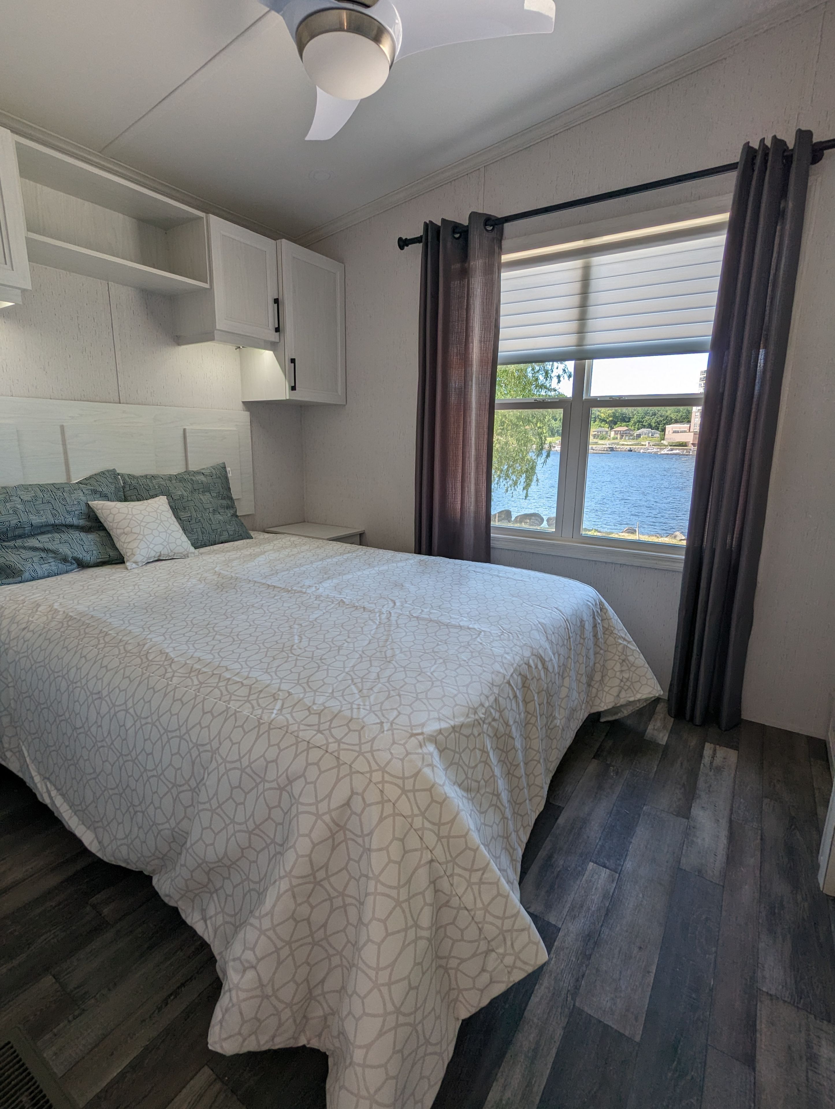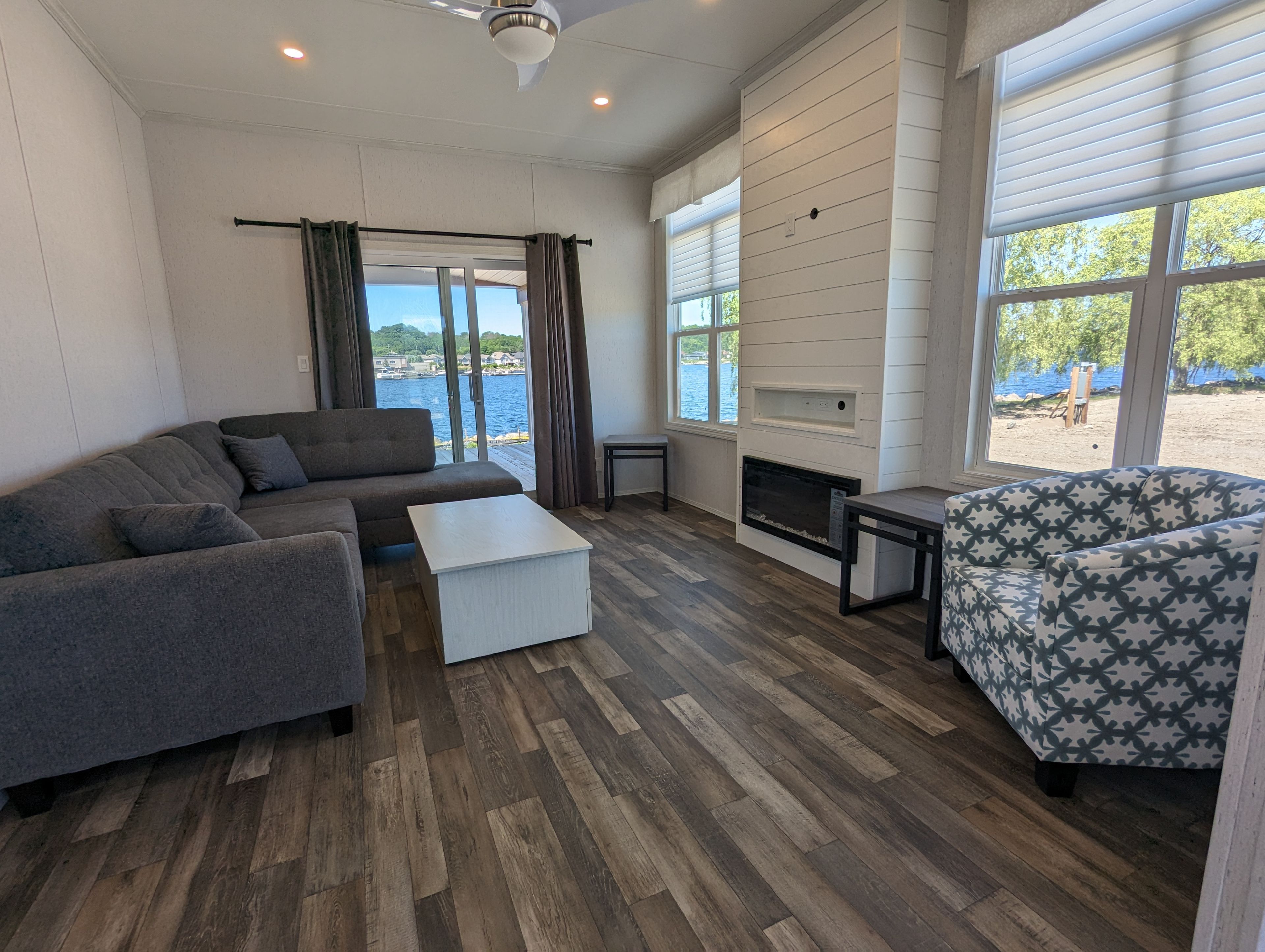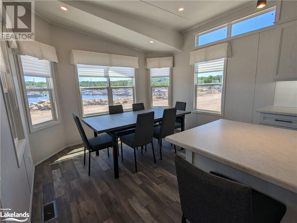 Nestled along the serene shores of southern georgian bay, this brand-new 2-bedroom, 1-bathroom sans souci cottage offers an unparalleled opportunity for exclusive resort living. Located on a premium waterfront lot in the highly sought-after phase 1 release of wye heritage marine resort, this 728 sq ft cottage is ready for immediate occupancy, allowing you to make the most of the 2025 cottage season. With a thoughtfully designed open-concept layout, this cottage is the perfect retreat for those seeking both comfort and style. The spacious living area seamlessly flows into a fully-equipped kitchen, making it ideal for both relaxing and entertaining. Large windows throughout capture the breathtaking views of georgian bay, while the cozy living room, complemented by modern finishes, creates a welcoming atmosphere. Step outside onto one of your two, covered private decks and enjoy the tranquil sounds of the water as you unwind with a cup of coffee, or spend your evenings watching the sunset over the bay. With robust options included, this turn-key cottage is equipped with all the amenities you need for seasonal enjoyment, including central air conditioning and a fully appointed interior. Wye heritage marine resort offers an exclusive, seasonal 8-month experience from spring to fall, with an array of premium amenities, such as two heated swimming pools, a sports court (pickleball, tennis, basketball), a restaurant, sandy beach, playground, and a range of boating services. As a cottage owner, you'll be guaranteed a boat slip with a 20% discount on slip fees. Don't miss out on this exclusive opportunity to secure your very own retreat in one of the most desirable locations in the resort!