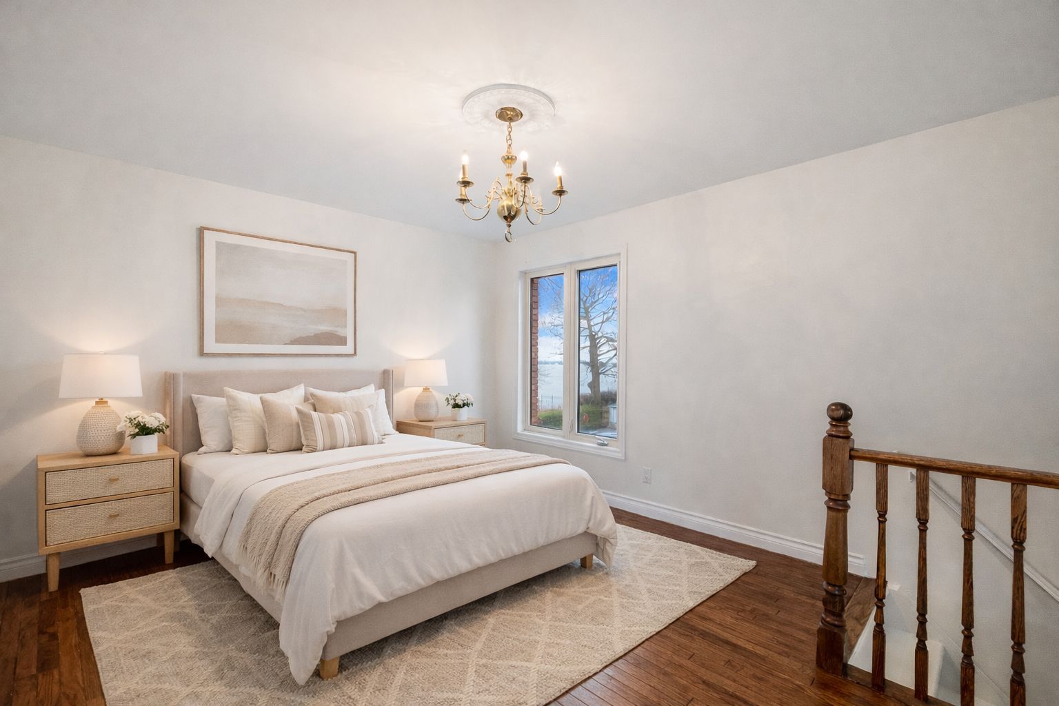 • Wall-to-wall windows and oak hardwood floors throughout, providing natural light.