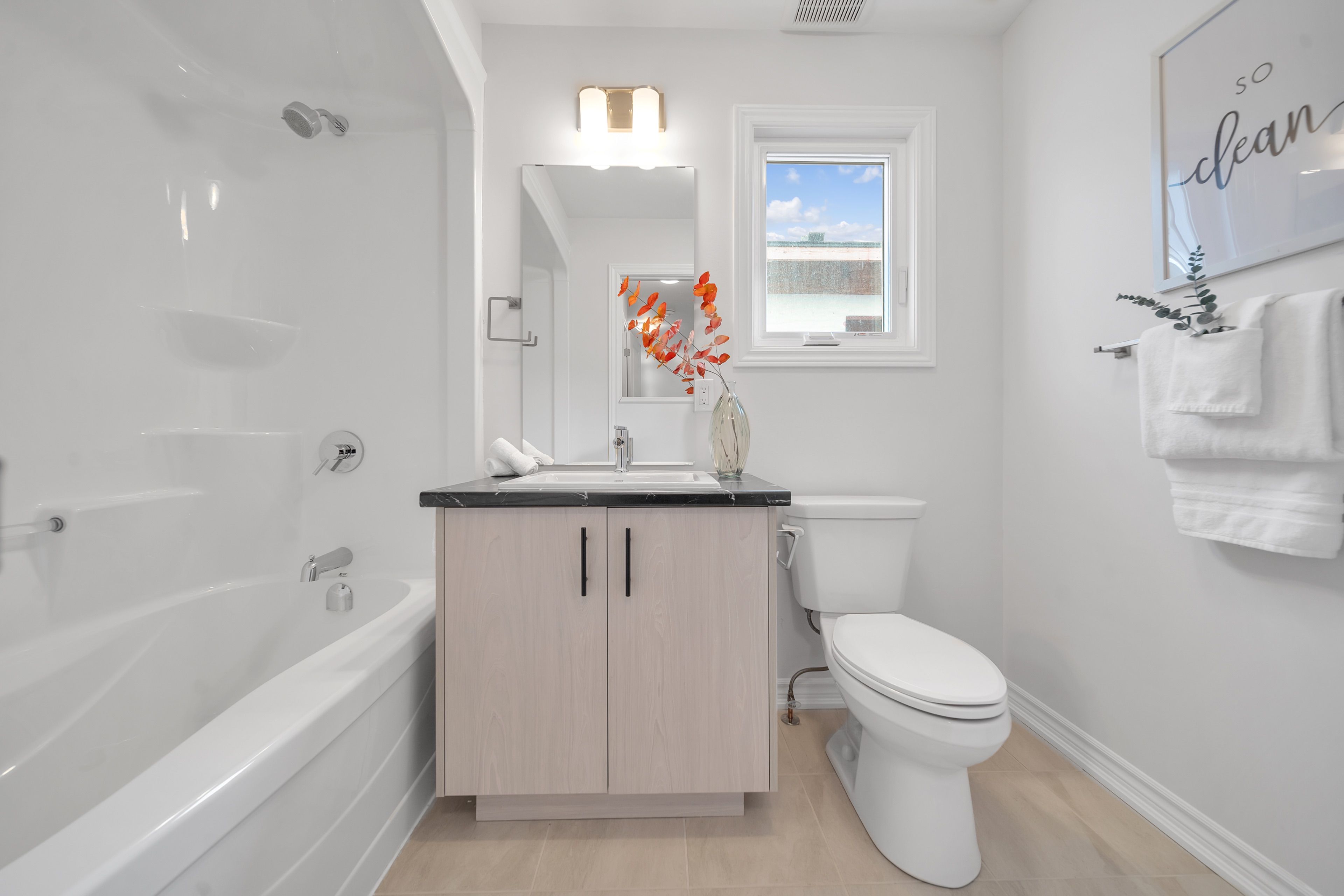 • Convenient upstairs laundry room and additional bathroom for ease.