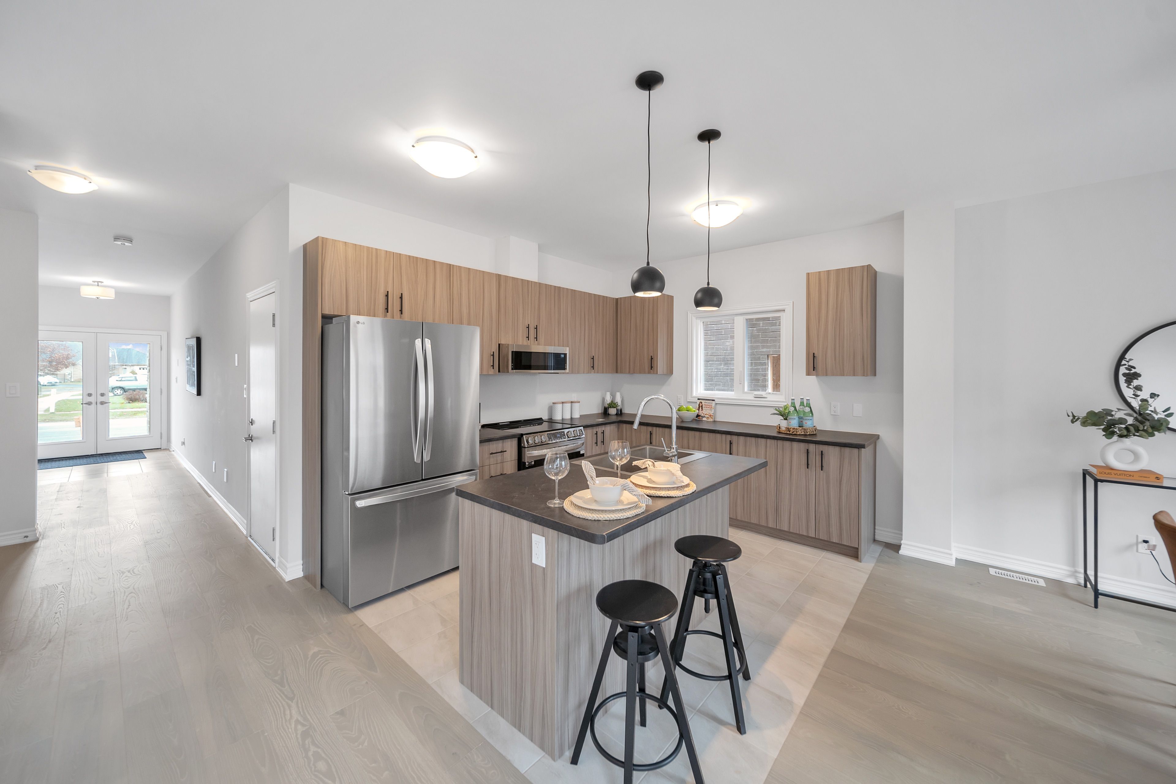 Welcome to this beautiful two-storey semi-detached home in the sought-after southridge meadows development in fort erie. This stunning 3-bedroom, 2. 5-bathroom property offers an ideal location just steps from crystal beach, lake erie, parks, restaurants, and the peace bridge to the usa. The main floor boasts upgraded hardwood flooring, an open-concept great room, a modern kitchen with stainless steel appliances, a centre island, a breakfast bar, a dining room, a study, and a convenient 2-piece powder room. Upstairs, you'll find three spacious bedrooms, including a master suite featuring a private balcony, a 4-piece ensuite with a standing shower, and a walk-in closet. The second floor also includes a laundry room with a sink and a 3-piece bathroom for added convenience. The unfinished basement offers a separate front entrance, a 3-piece bathroom rough-in, cold storage, and ample space for future customization or additional storage. A generously sized backyard. This home offers easy access to all amenities and is truly a must-see! (images have been previously staged for marketing purpose only)