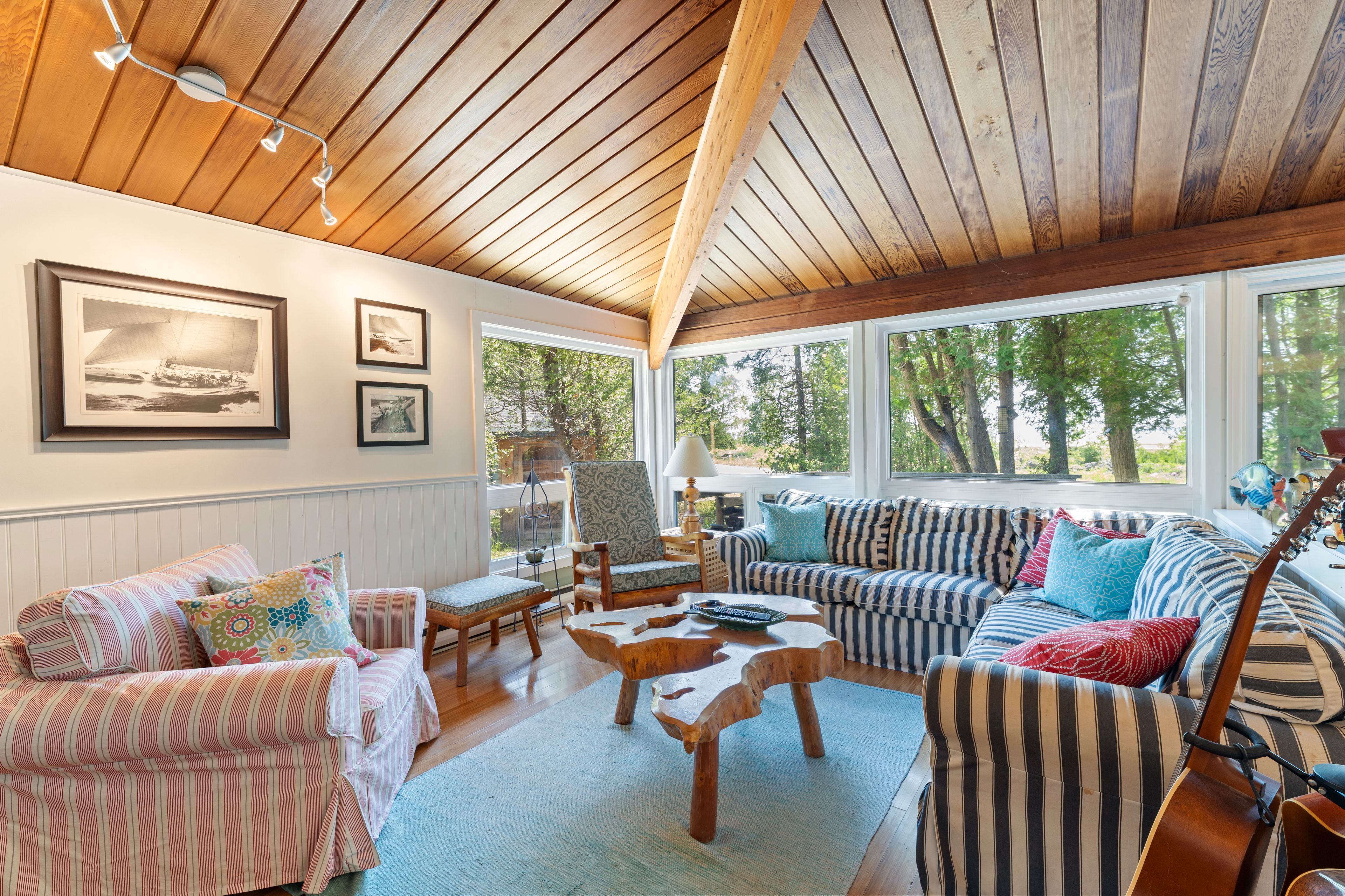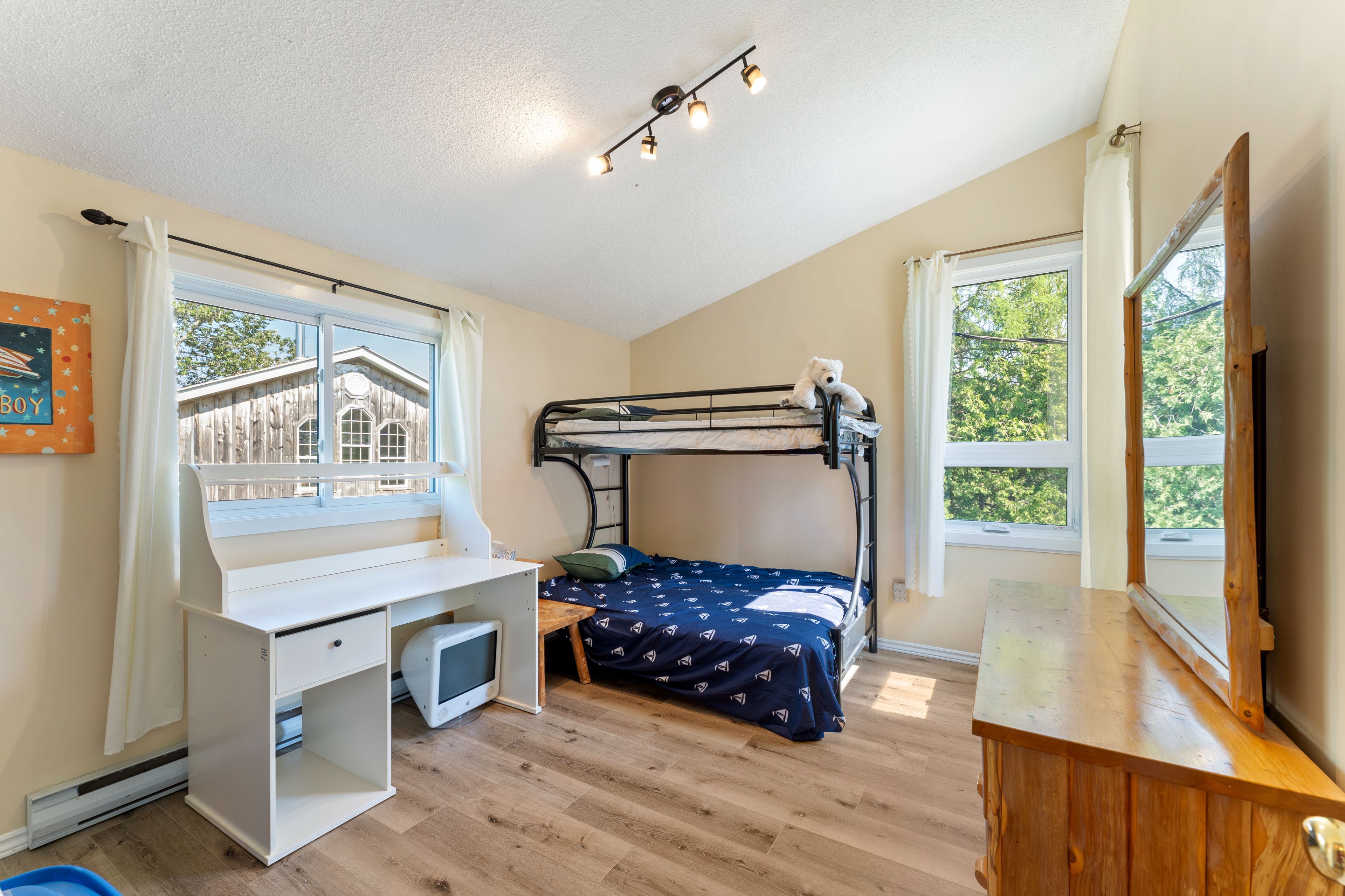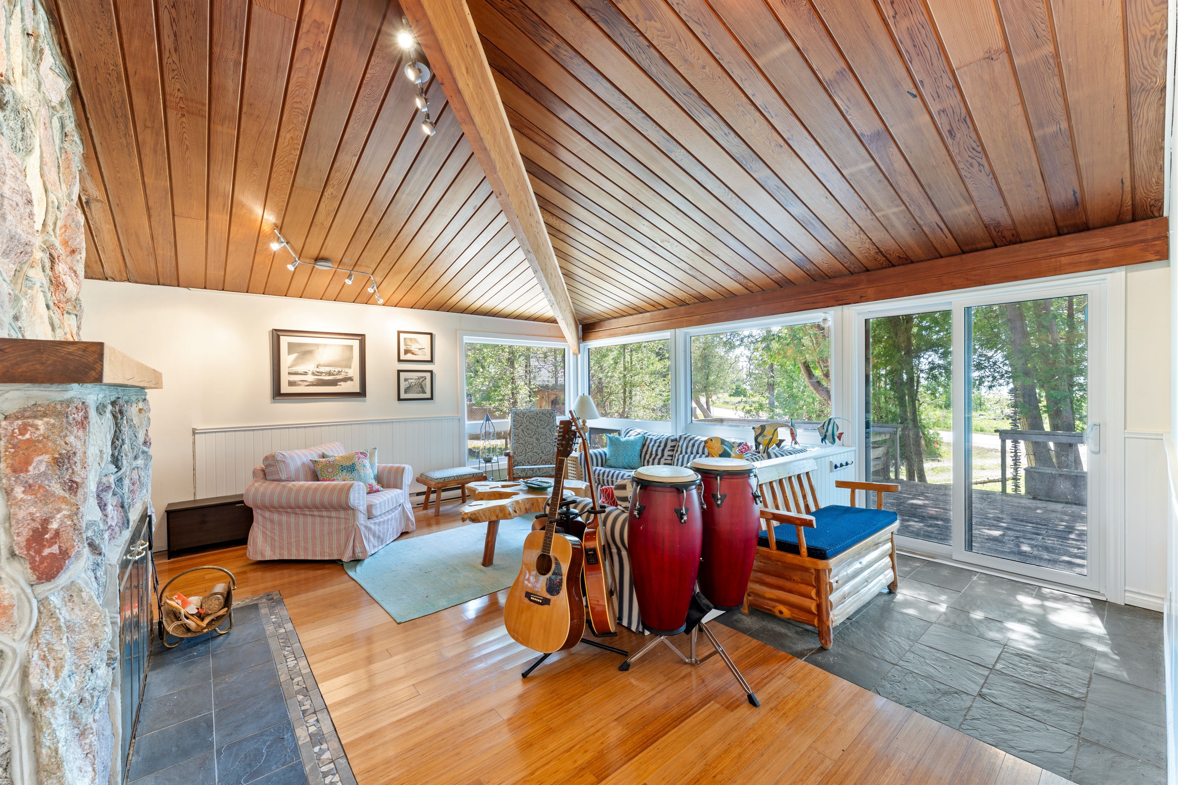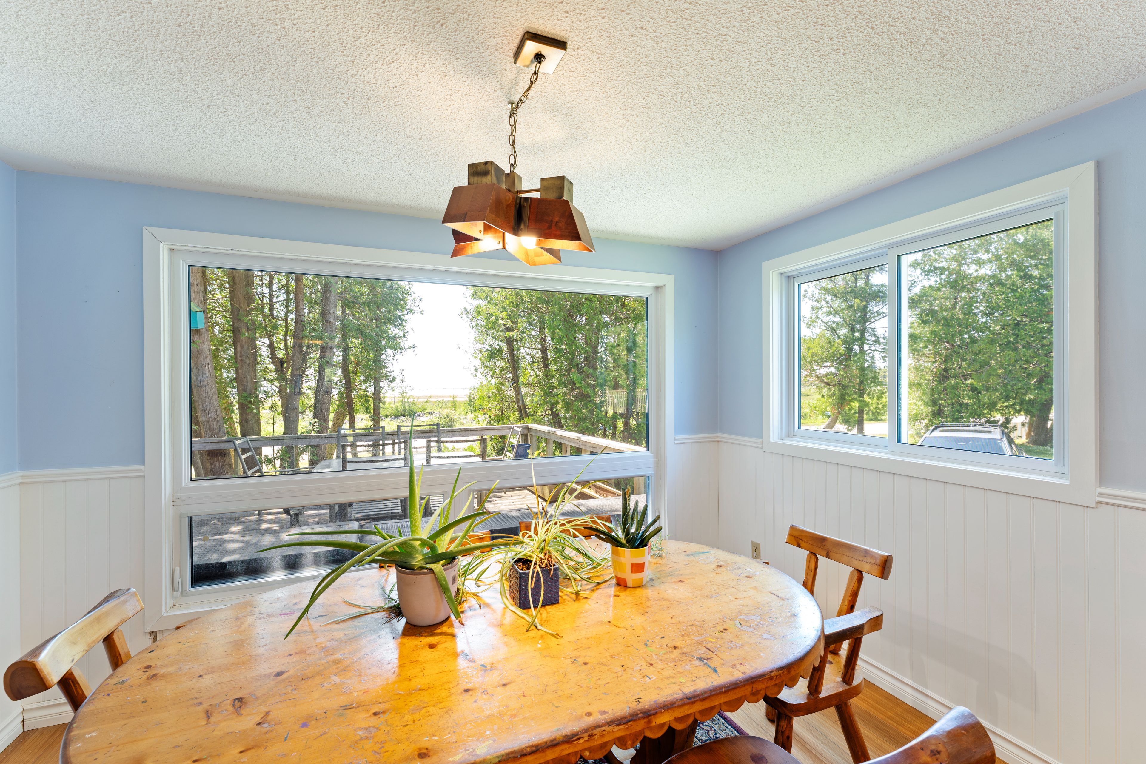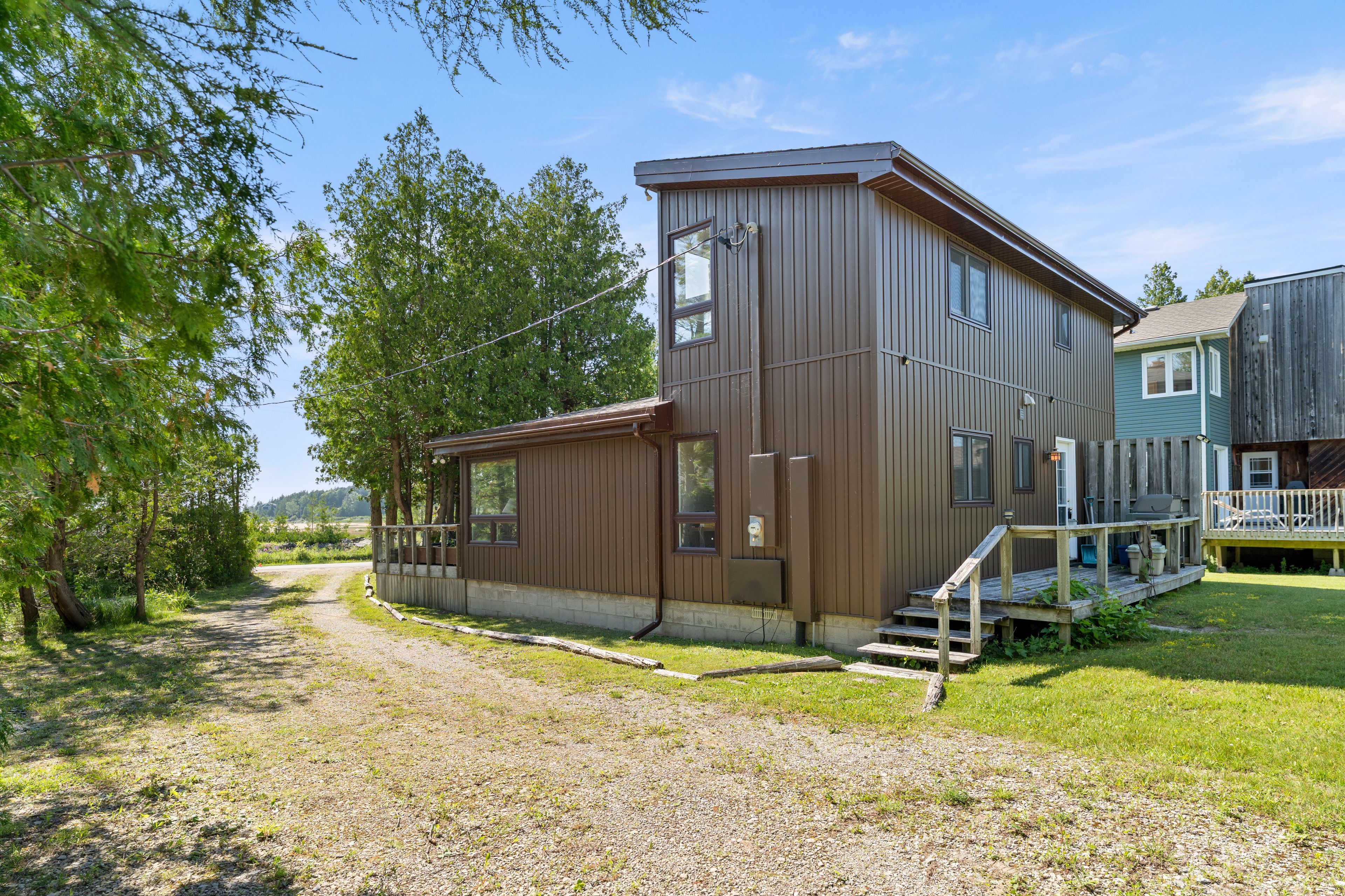 Lakefront living with a great beach and unforgettable sunsets. Welcome to your dream retreat on the shores of lake huron! This 3 bedroom, 2 bathroom viceroy home boasts stunning cathedral ceilings and a stone fireplace that anchors the spacious living room. Beautiful water and beach views through the large windows and two patio doors; one leading to a water view 17 foot x 30 foot deck, the other to a private balcony with sweeping views of the sandy beach below. The oversized 30' x 30' heated four season garage is a great workshop, for all your tools and all your toys. Even better, the garage features a 2 bedroom, 1 bathroom loft with a full kitchen, ideal for guests and extended family. Whether you are looking for a year round home or a lakeside escape, this property has it all, comfort, space, and unbeatable waterfront views. All windows replaced in 2021 (northstar, most triple pane), siding 2021, garage built 2003 with radiant in floor heat with separate zones upper and lower. New raised septic system in 2003, drilled well. Easy access to the fine sand beach directly across the road or walk north on bay street past 3 cottages to the sign "hannigan cottage", access the beach through the boardwalk. The beach and waterfront are great for kids and puppies as well as kayaking, fishing, paddle boarding, sailing power boating and all other watersports. Or just relaxing by the water. A rare find on this bay, this property has been owned by the same family for over 25 years. Properties like this don't come upon ofter... Close to sauble beach, southampton, tobermory and owen sound