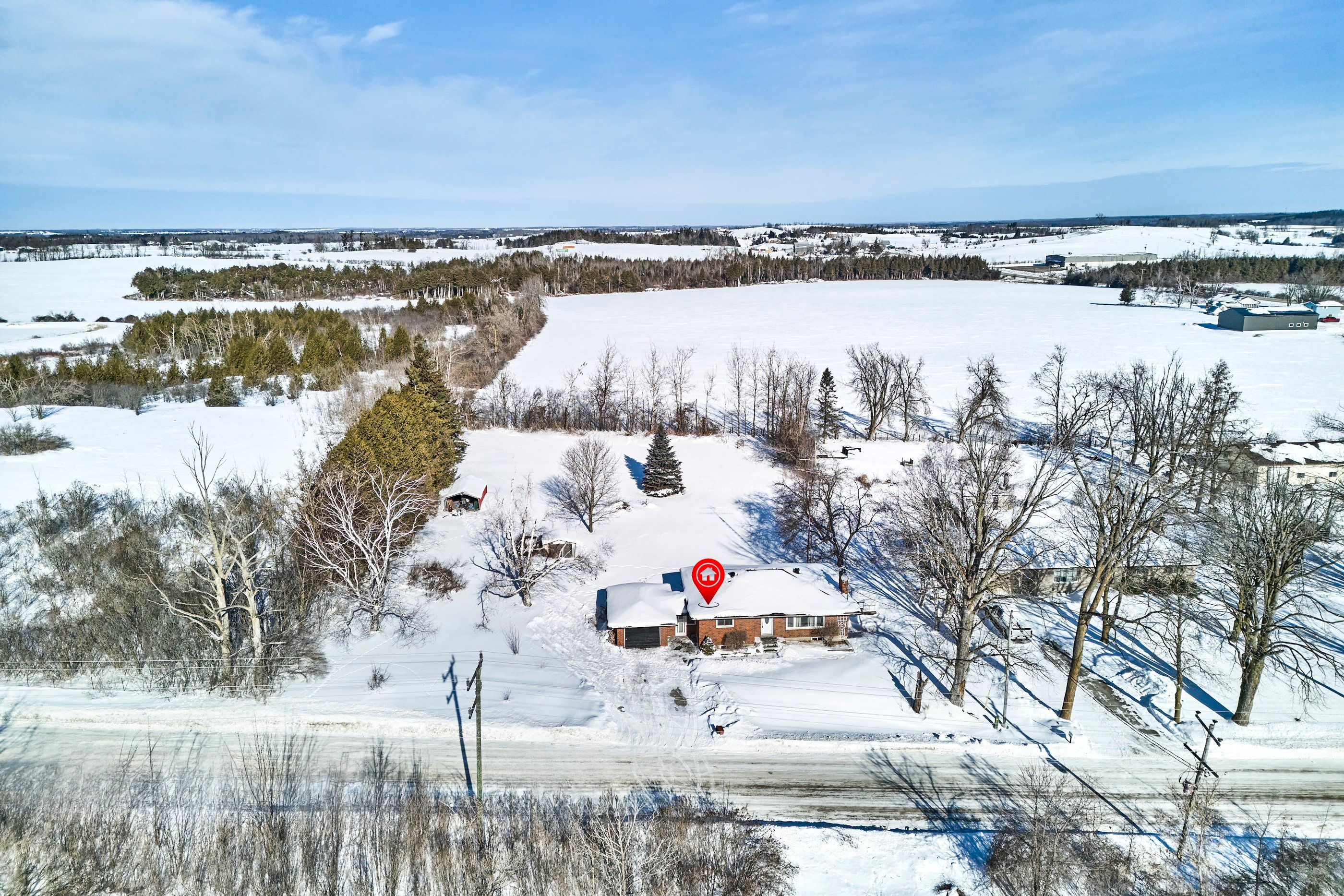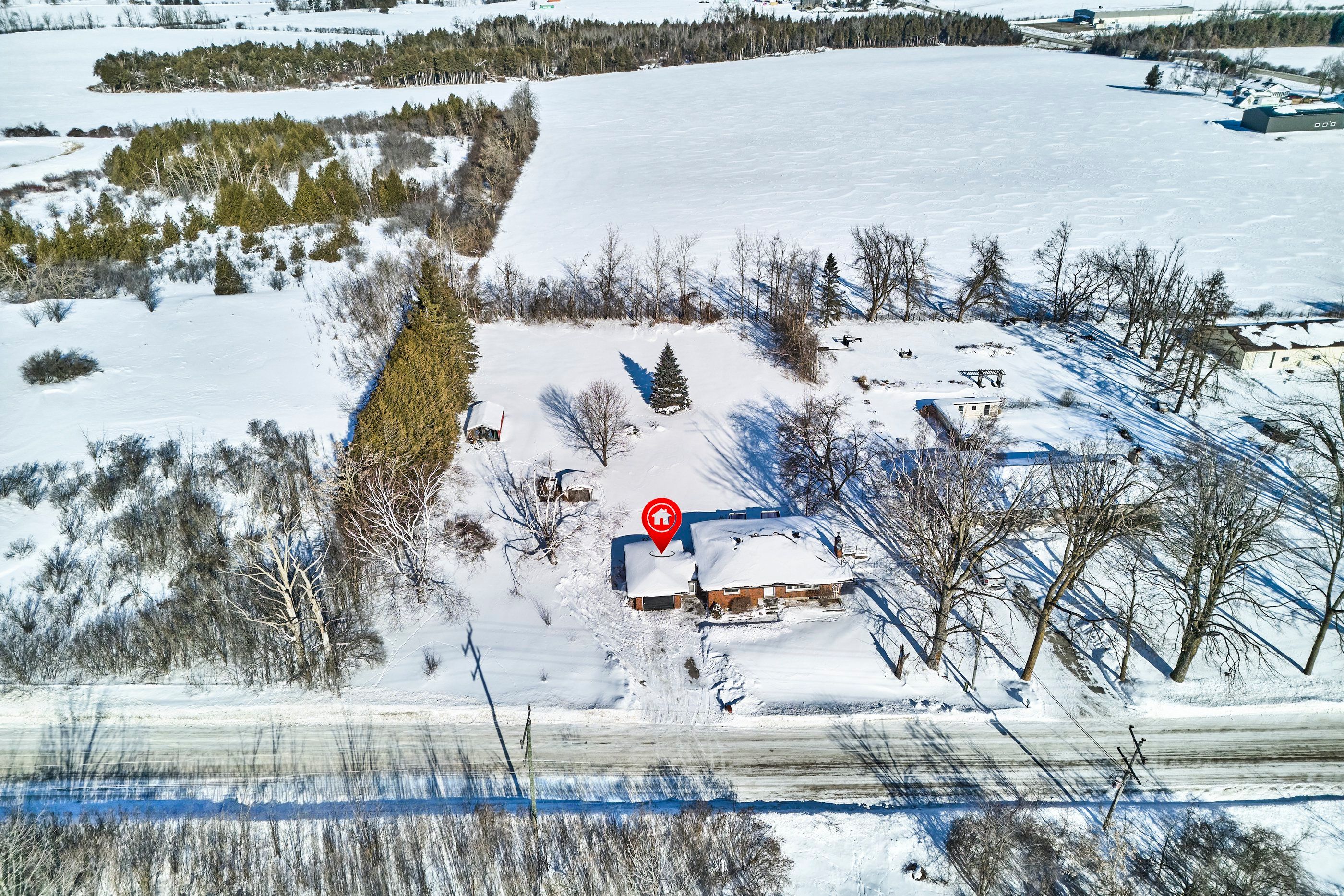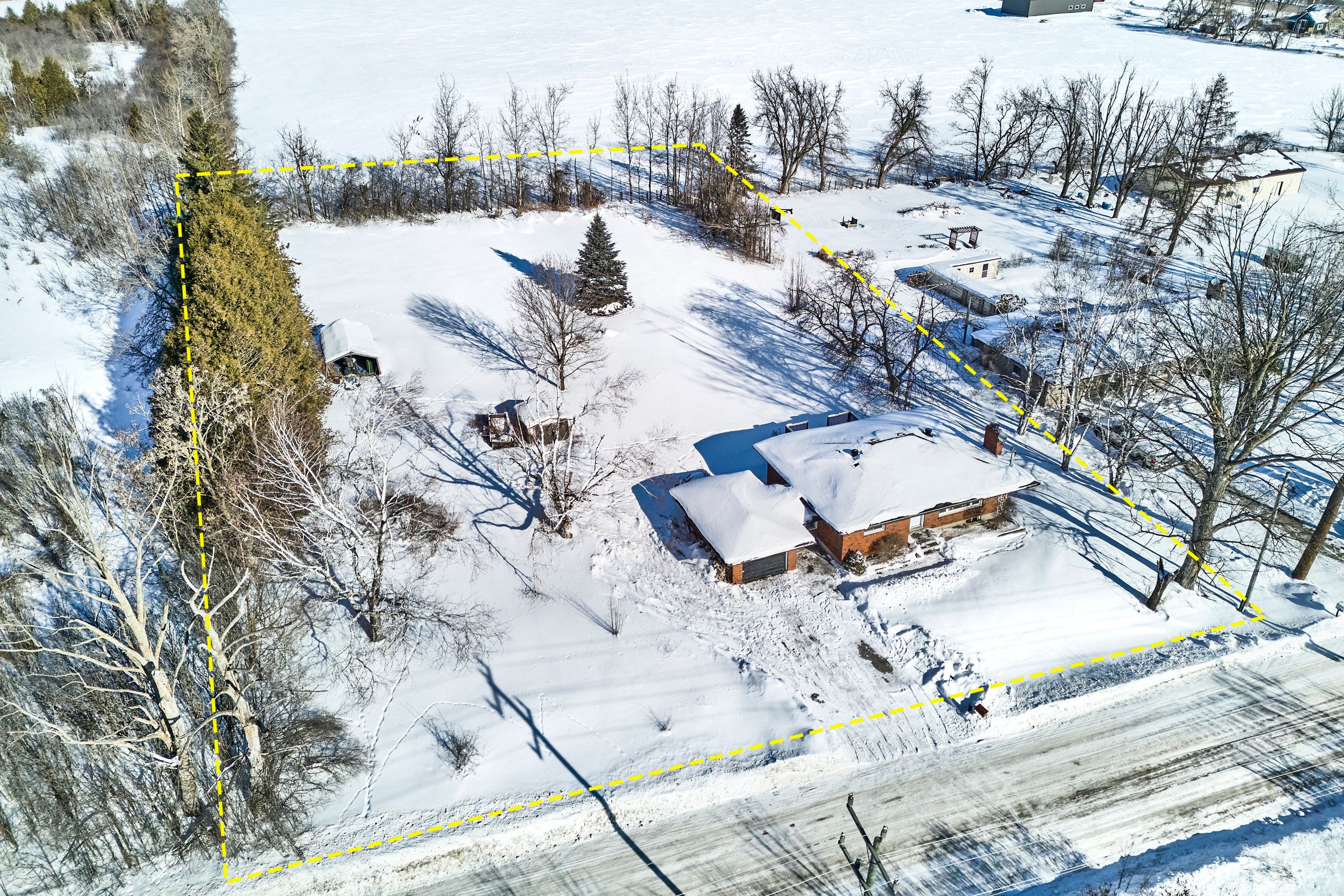 "charming 1970 brick bungalow on 1 acre in a prime location. Welcome to this solid, well-built 1970 brick bungalow set on a picturesque 1-acre lot in an amazing location. Offering timeless construction and incredible potential, this property is the perfect opportunity to create your dream home. The main level features a large front window that fills the living space with natural light while offering beautiful views of the expansive front yard. Mature trees surround the massive property, providing privacy and a serene setting. Enjoy the convenience of an attached garage with direct access to the home, plus a spacious driveway that comfortably parks four vehicles. A separate side entrance to the basement presents excellent potential for an in-law suite, rental opportunity, or additional living space. With its solid structure, generous lot size, and unbeatable location, this property is ready for your personal touch. Don't miss the chance to transform this bungalow into the perfect home and investment."