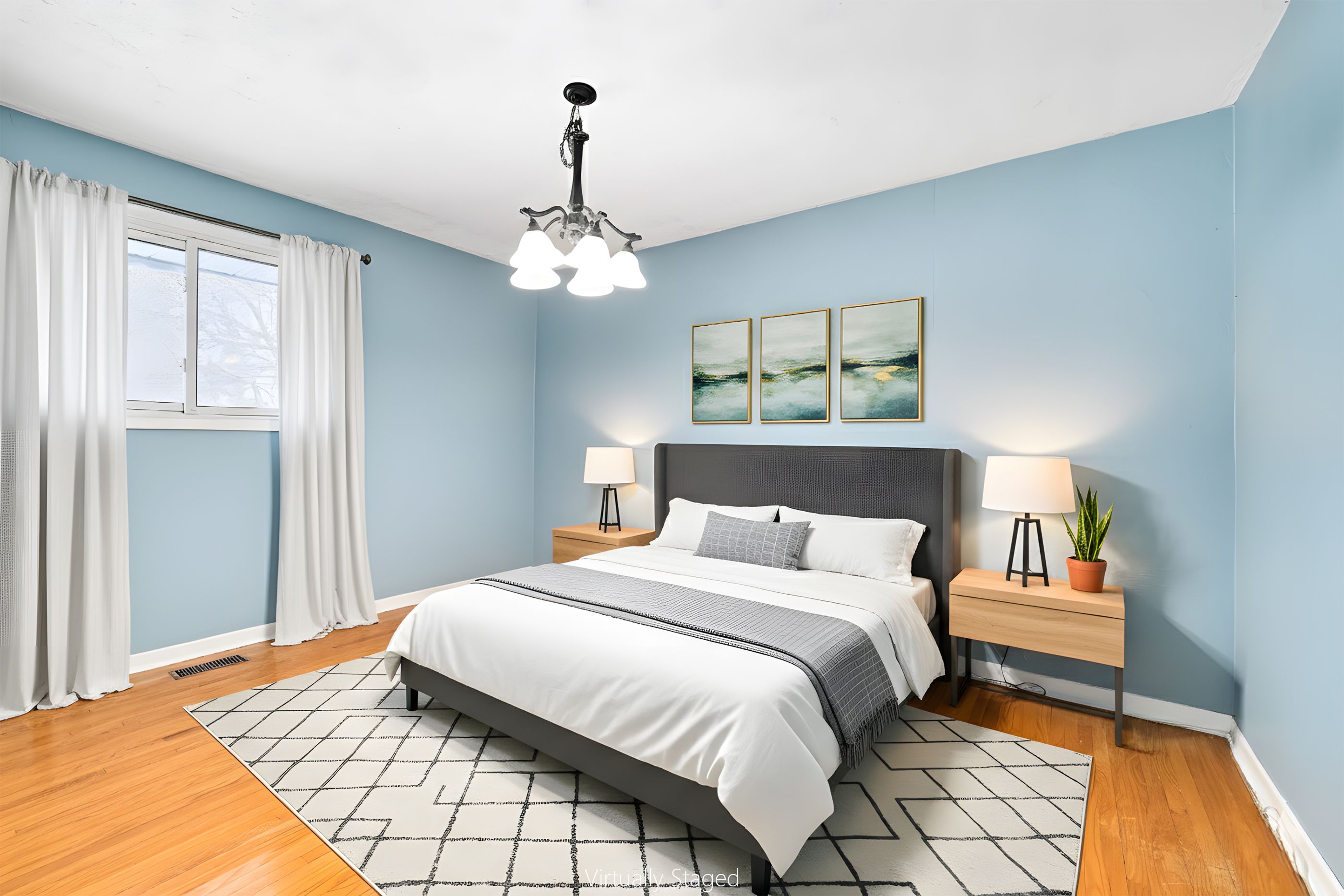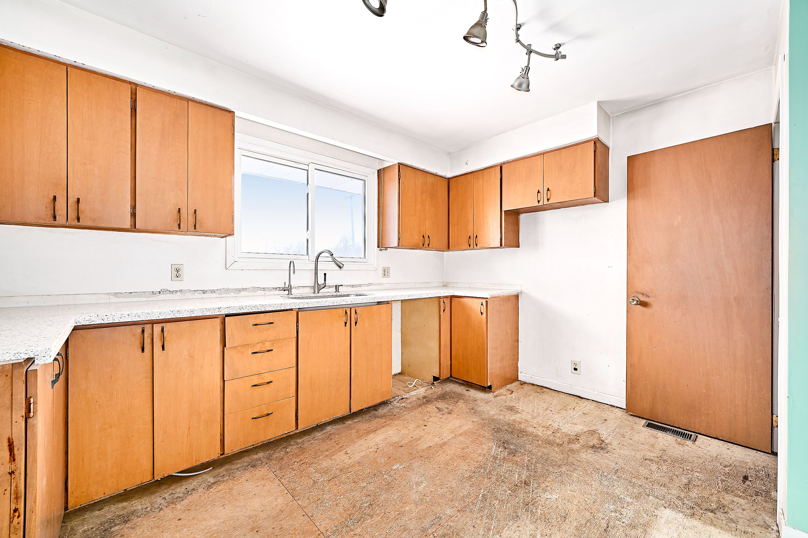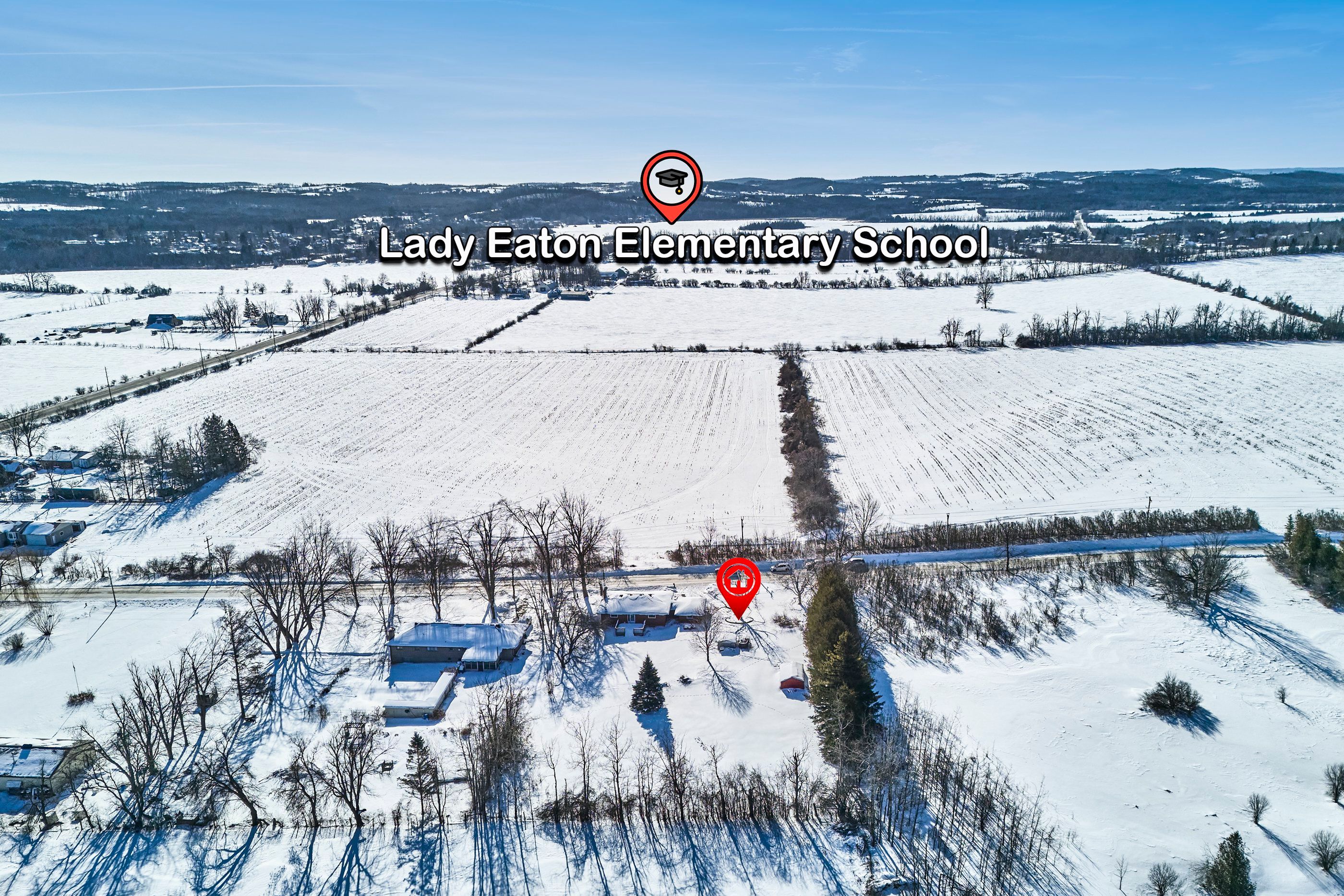 "charming 1970 brick bungalow on 1 acre in a prime location. Welcome to this solid, well-built 1970 brick bungalow set on a picturesque 1-acre lot in an amazing location. Offering timeless construction and incredible potential, this property is the perfect opportunity to create your dream home. The main level features a large front window that fills the living space with natural light while offering beautiful views of the expansive front yard. Mature trees surround the massive property, providing privacy and a serene setting. Enjoy the convenience of an attached garage with direct access to the home, plus a spacious driveway that comfortably parks four vehicles. A separate side entrance to the basement presents excellent potential for an in-law suite, rental opportunity, or additional living space. With its solid structure, generous lot size, and unbeatable location, this property is ready for your personal touch. Don't miss the chance to transform this bungalow into the perfect home and investment."