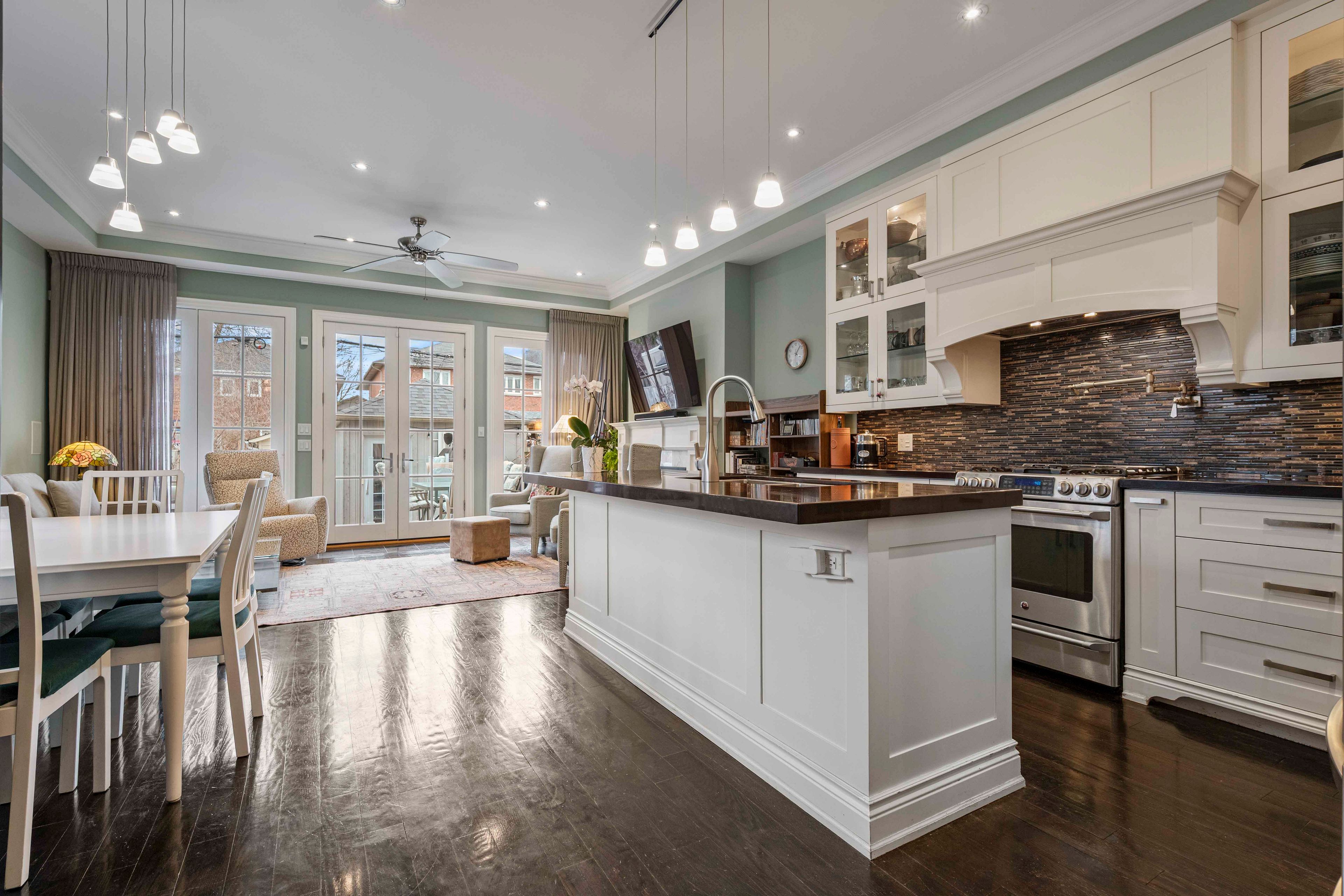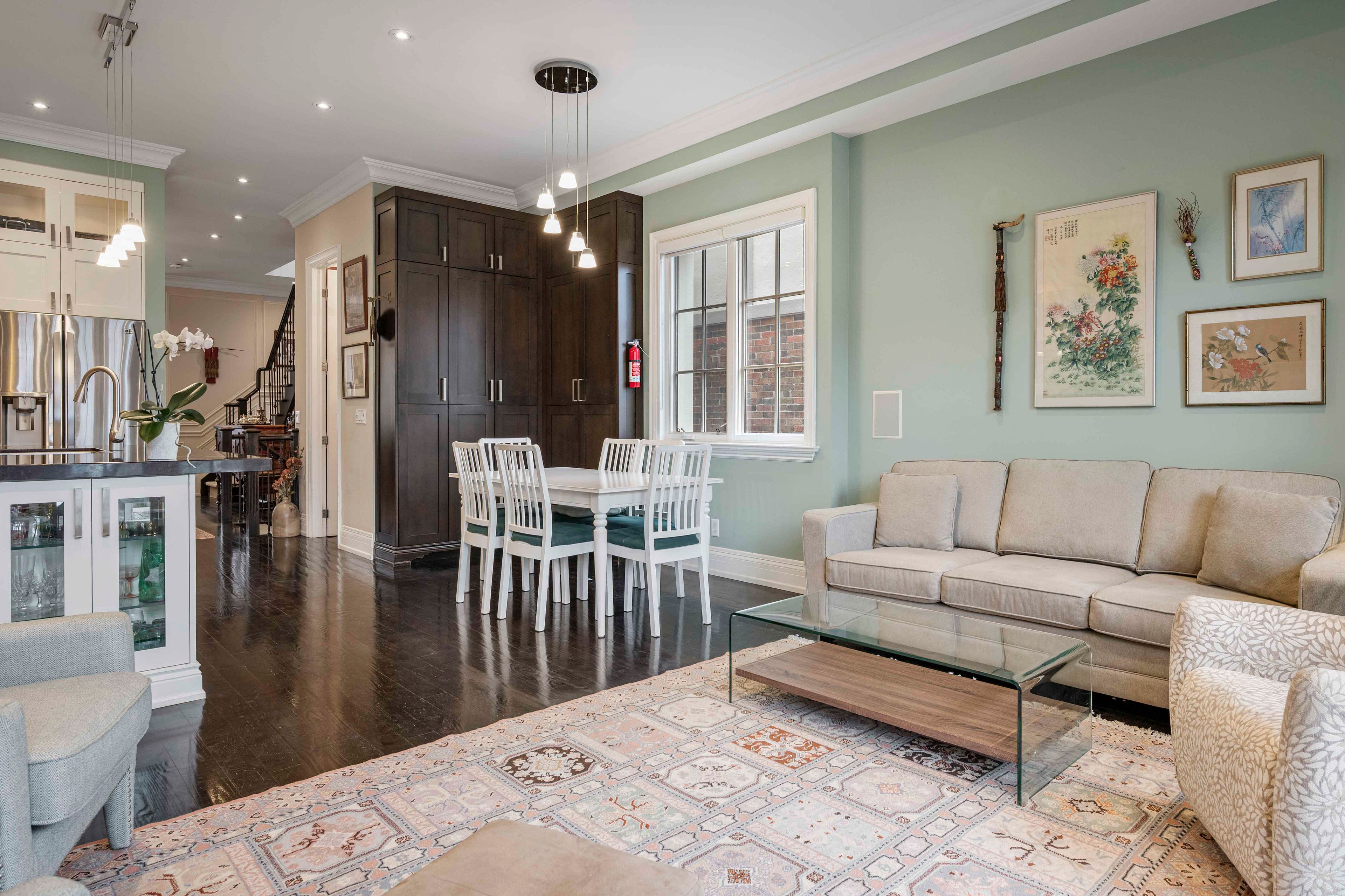Set on a pretty, treed, bedford park street, this custom-built haddington home offers the kind of layout families search for, yet rarely find. A strong sense of community defines the street, while high ceilings, elegant finishes, and thoughtful built-ins give the home character without excess. The main floor balances elegance with everyday life function. From the arched entry door and gas lanterns to the stone facade, custom millwork and wainscoting, every detail has been carefully considered. Formal living and dining rooms anchor the front, while the rear kitchen is designed for real cooking, not just takeout plating. With a gas range, pot filler, and dueling ovens, it's ready for everything from weeknight chaos to full-scale hosting. An eat-in island, breakfast area, and generous family room with a second gas fireplace open to a sunny, south-facing backyard with a large deck, mature landscaping, and a calming water feature. Upstairs, the primary suite is both practical and indulgent, a reading nook, a walk-in, plus wall-to-wall closets, a spacious 4pc ensuite, and a private balcony overlooking the garden. A front bedroom with a charming view invites slow mornings and quiet moments. Second-floor laundry adds everyday convenience. The lower level is equally considered, with a versatile rec space, multiple sitting areas, a third gas fireplace, guest bedroom, wet bar, and a 3pc bath. Movie night, hobbies, overnight guests - it's all covered. With 3+1 bedrooms, 4 bathrooms, and both licensed front pad parking plus a detached garage accessed from the rear lane, this home delivers on comfort and function. Surrounded by fantastic schools (john wanless, blessed sacrament, glenview, lawrence park), you are close to avenue road's stylish boutiques and intimate dining, a short stroll to the subway and everything yonge street, and have quick access to the 400-series highways. This is a location and a home that fits real life, and does it exceptionally well.