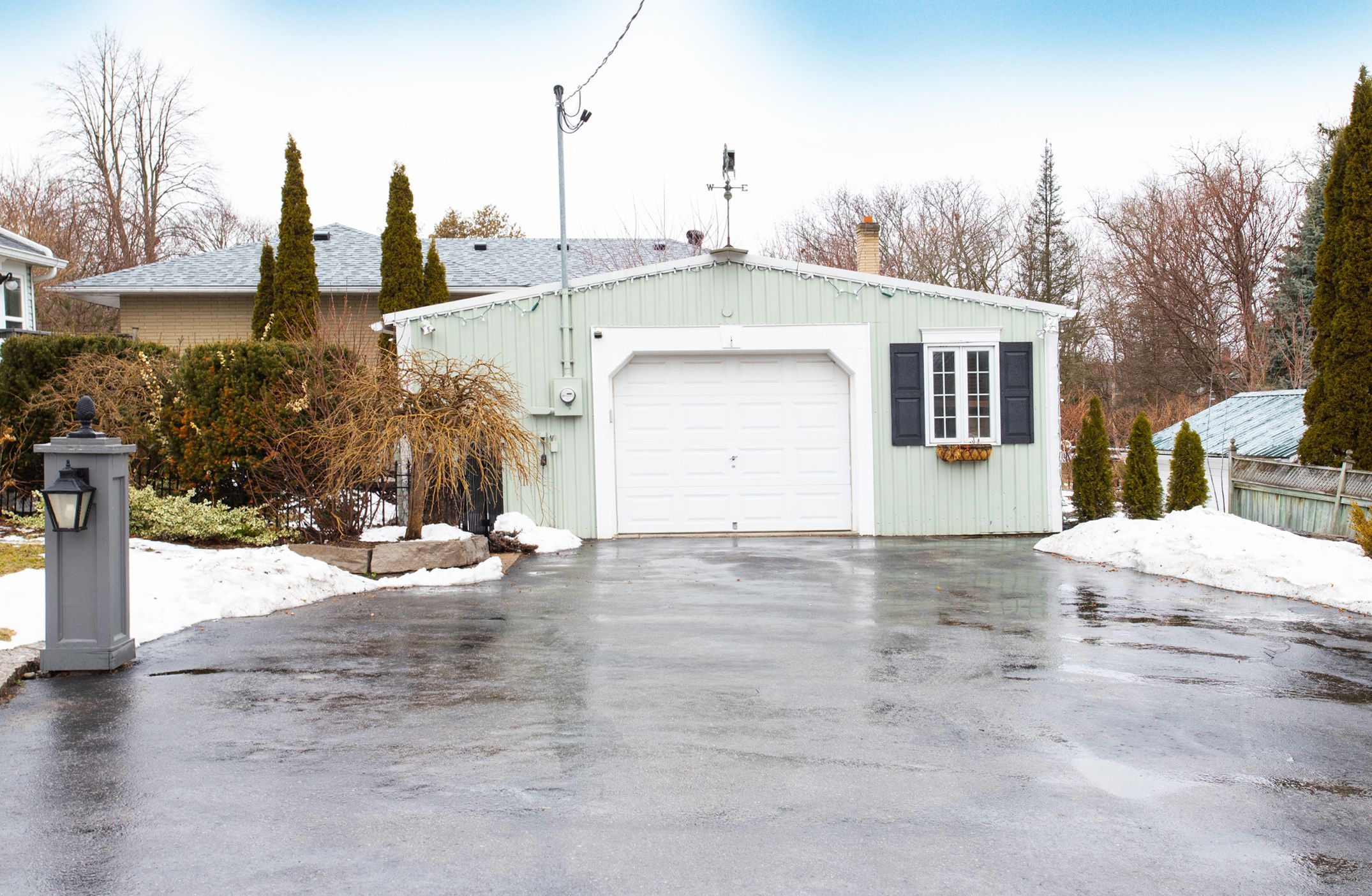 • Unique lot with mature landscaping, tranquil pond, and heated workshop garage.