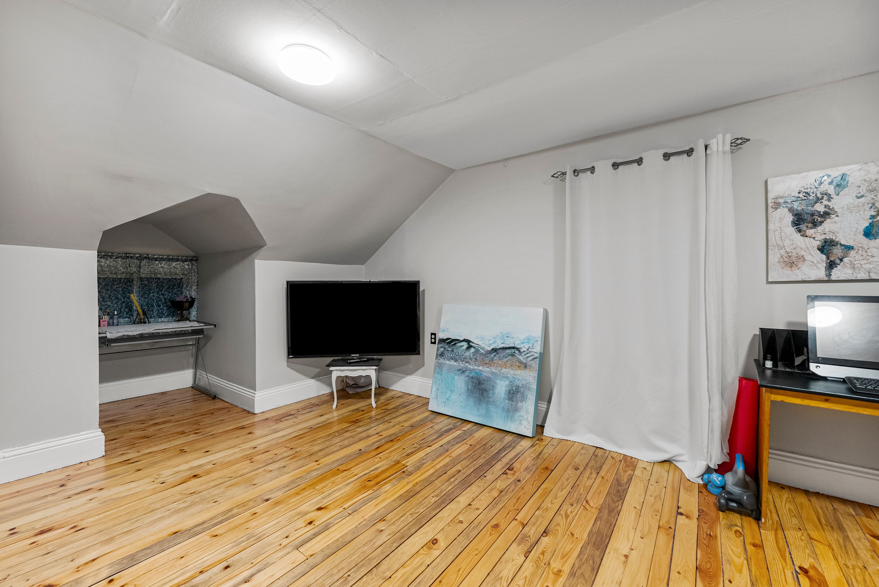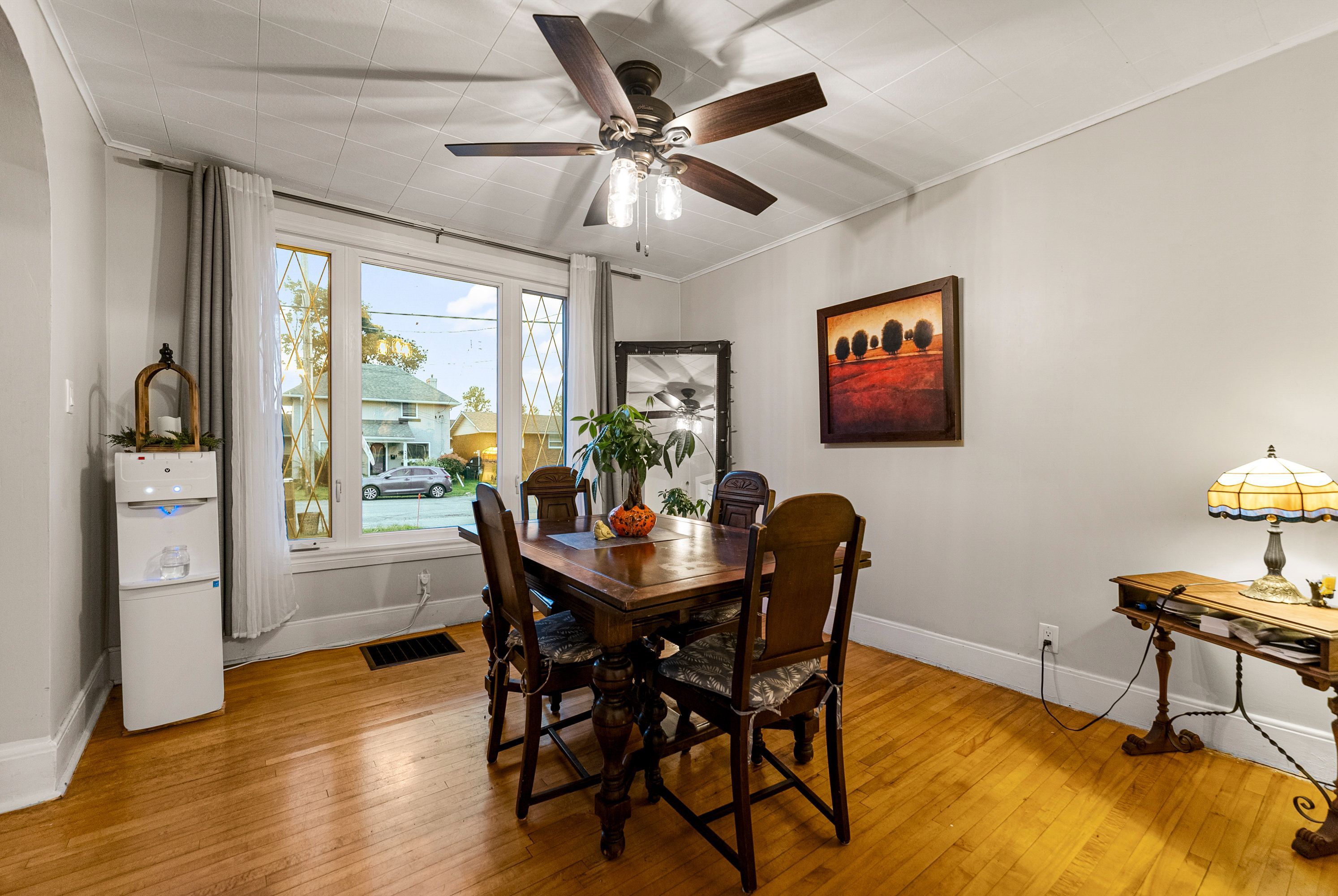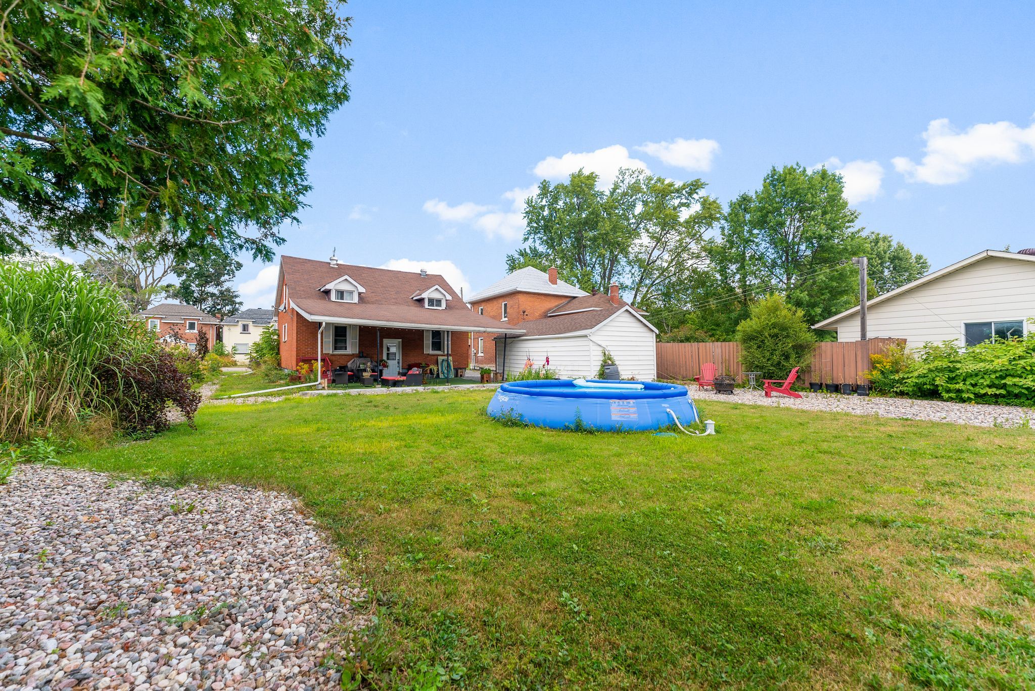 This true family home offers the perfect blend of vintage charm and thoughtful modern updates, creating a warm, functional space designed for everyday living and effortless entertaining. Exceptionally well maintained, this property delivers both character and peace of mind with extensive renovations throughout. The main floor is the heart of the home, featuring a bright kitchen with new lower cabinetry and updated countertops, complemented by original built-ins that add timeless appeal. A fully renovated bathroom showcases a relaxing soaker tub and updated plumbing, while a versatile third bedroom overlooking the backyard provides the perfect space for guests, a home office, or flexible family living. Upstairs, you will find two massive oversized bedrooms with beautifully refinished hardwood floors, offering incredible space rarely found at this price point. The basement provides excellent storage and houses the home's updated mechanical systems. Major upgrades include a new furnace (november 2024), updated electrical panel, and modern pvc plumbing with individual shut-offs. New basement windows and window wells further enhance both efficiency and functionality. Step outside to a truly standout backyard designed for entertaining, featuring an impressive 15' x 36' covered porch that creates the ideal setting for gatherings with family and friends. The property has been professionally landscaped with quality infrastructure, including an armour stone wall and a full french drain system. The detached garage is also well maintained with a newer roof completed in 2021. A solid, spacious, and move-in ready home offering comfort, character, and long-term value-perfect for growing families or anyone looking for space without compromise.