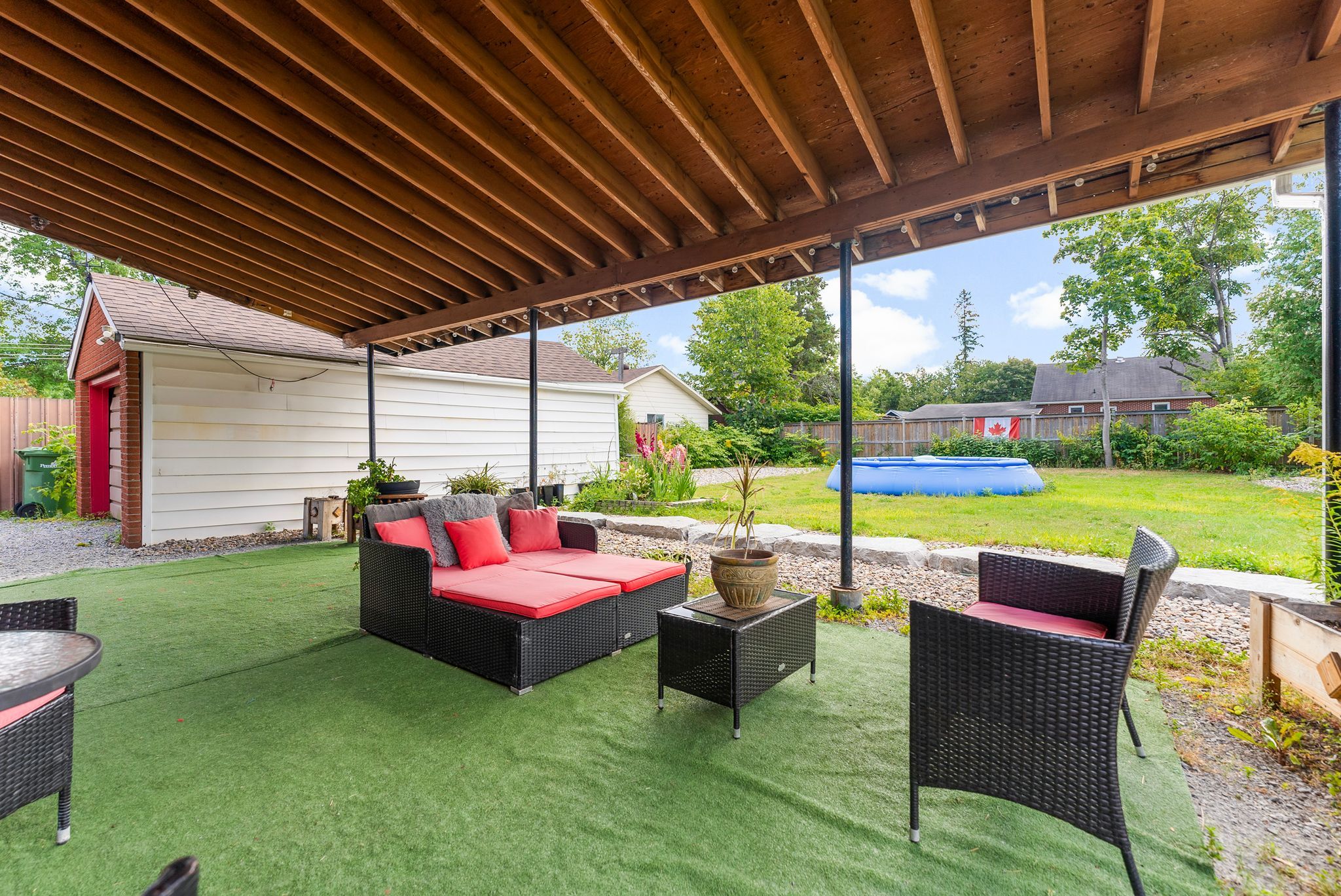 • Impressive backyard with covered porch, perfect for entertaining.