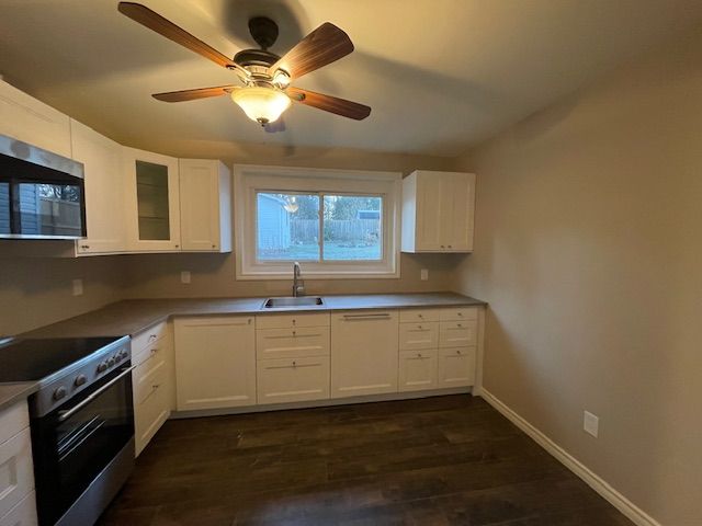 This one bedroom plus den apartment is very spacious. Beautiful new kitchen has modern features with the cupboard panelled fridge and dishwasher creating a clean, uninterrupted aesthetic look. Double window above the sink overlooks the fenced south facing backyard. Large living room with door to the yard. Lots of room in the bedroom, which has a walk in closet. If you work from home, you will appreciate the extra finished room that would work well as an office. Your own laundry room in-suite, along with some extra storage area in the utility room. Convenient location to shopping, lhsc hospital, walking trails, and on a bus route. No on-site parking. Monthly rent is plus 40% hydro and 50% gas costs.