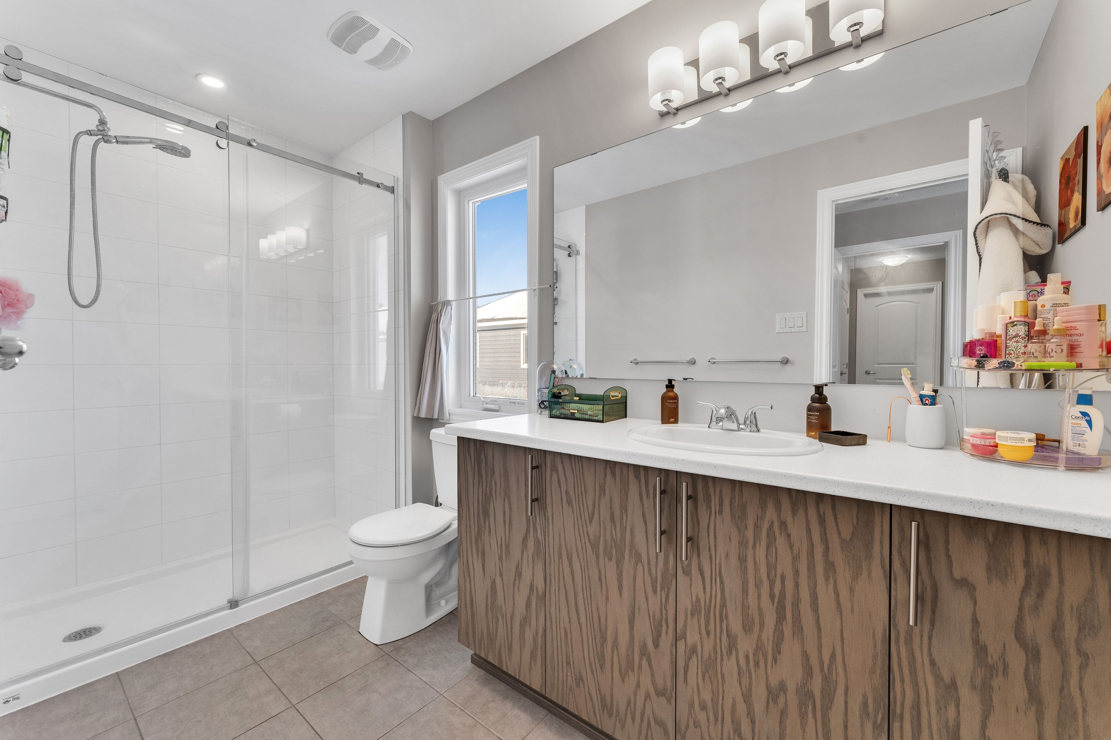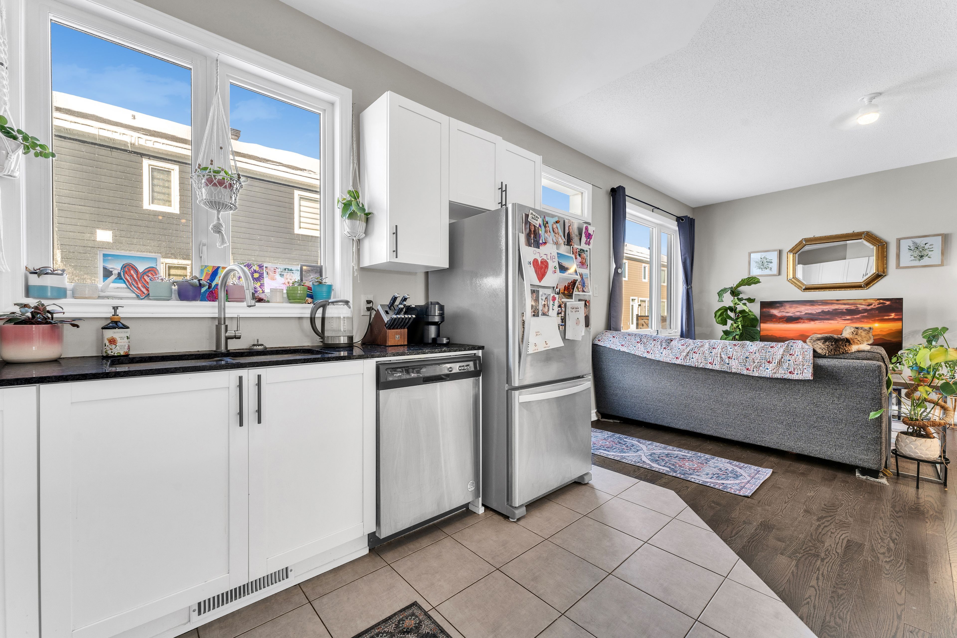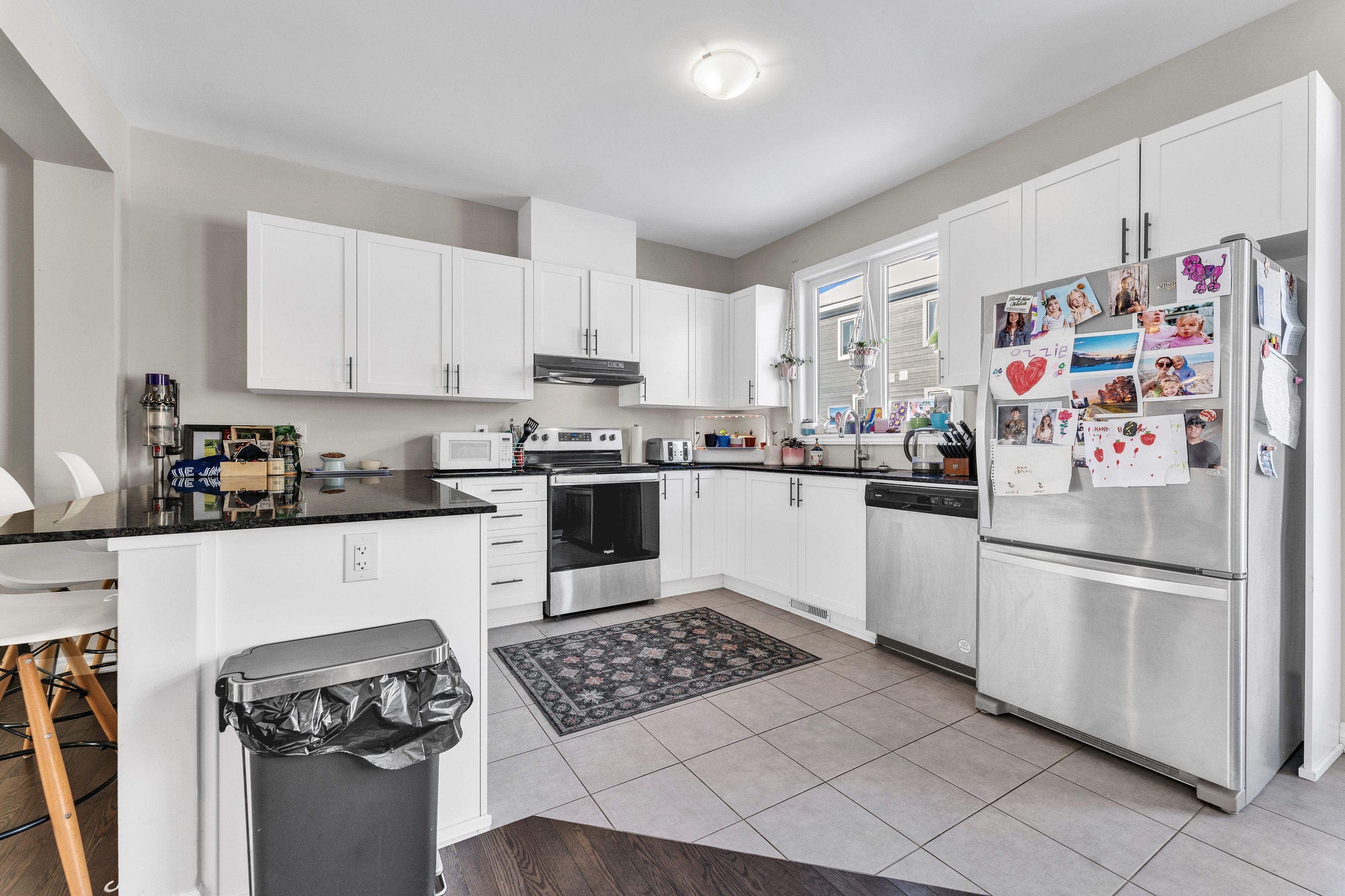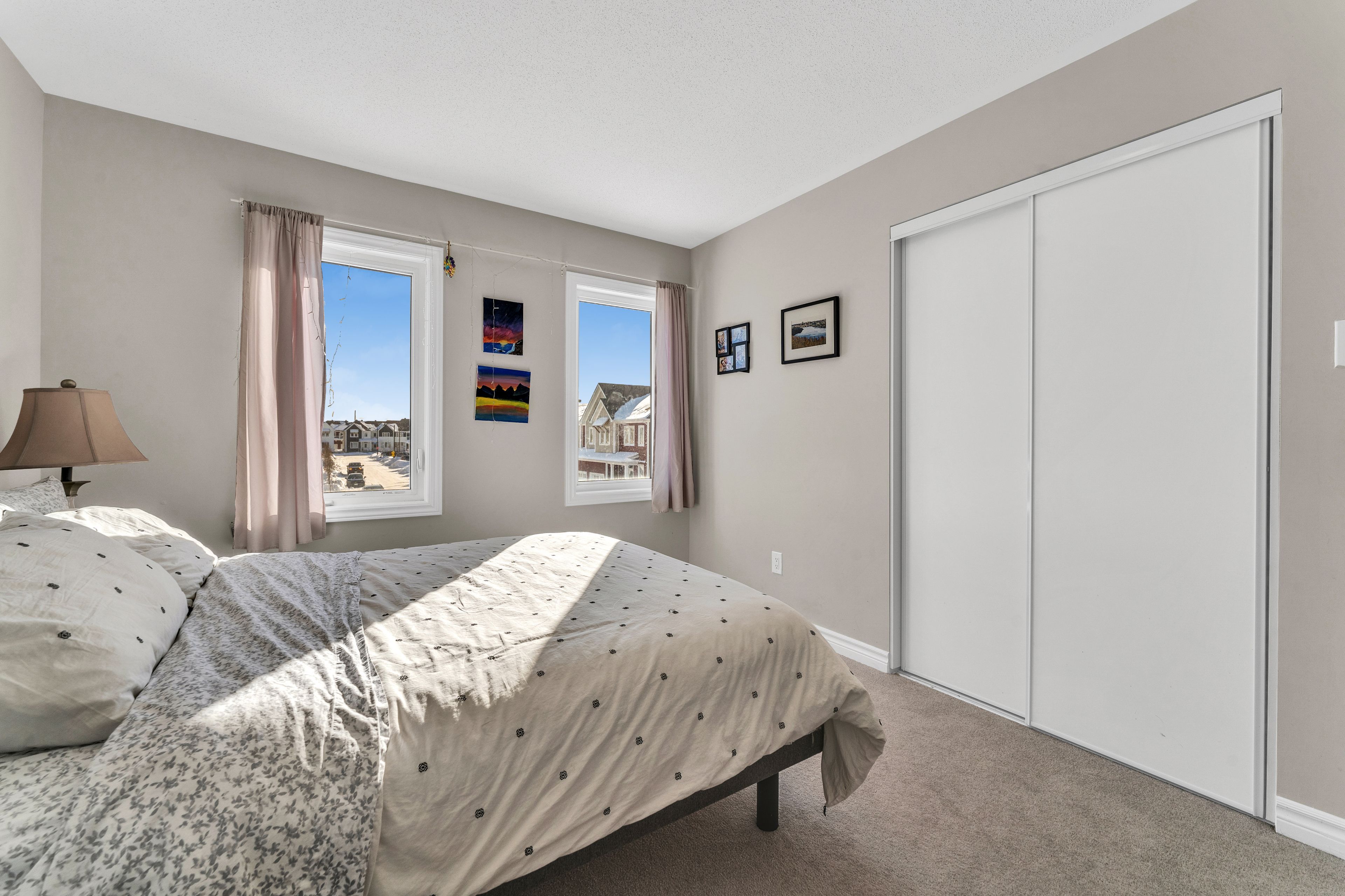 Experience the allure of this immaculate executive townhome boasting 3 bedrooms and 3 bathrooms in the family-oriented fox run neighbourhood. The main floor exudes elegance with its gleaming hardwood flooring, 9' smooth ceilings, pot lights, and expansive windows that flood the space with abundant natural light. The inviting great room, complete with a cozy electric fireplace, seamlessly flows into the kitchen, which features quartz countertops, stainless steel appliances, a breakfast bar, and ample cabinet space. Upstairs, you'll find three generously sized bedrooms, including a spacious primary bedroom with a walk-in closet and a luxurious ensuite featuring a walk-in glass shower. The fully finished basement offers versatile space to suit your every need. Conveniently located near a plaza, schools, parks, and just minutes away from the highway, this remarkable townhouse is an opportunity not to be missed. Schedule your showing today and embark on a journey of refined living!