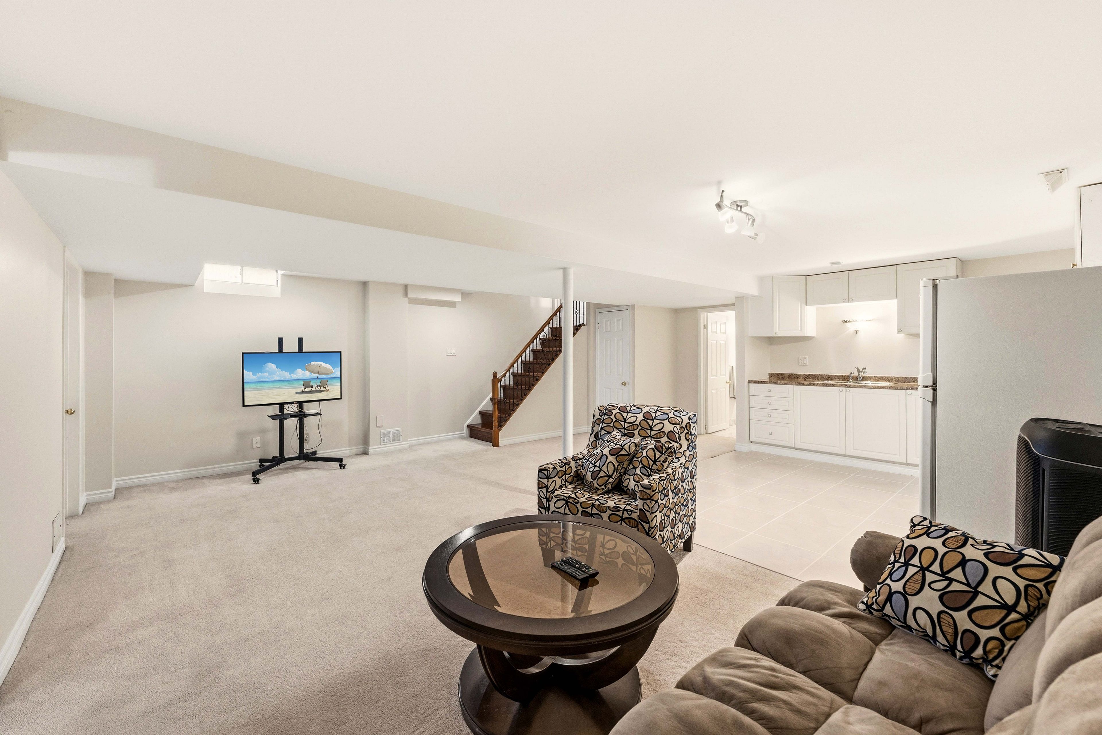 • Finished basement includes a separate entrance, kitchen, and spacious bedroom.