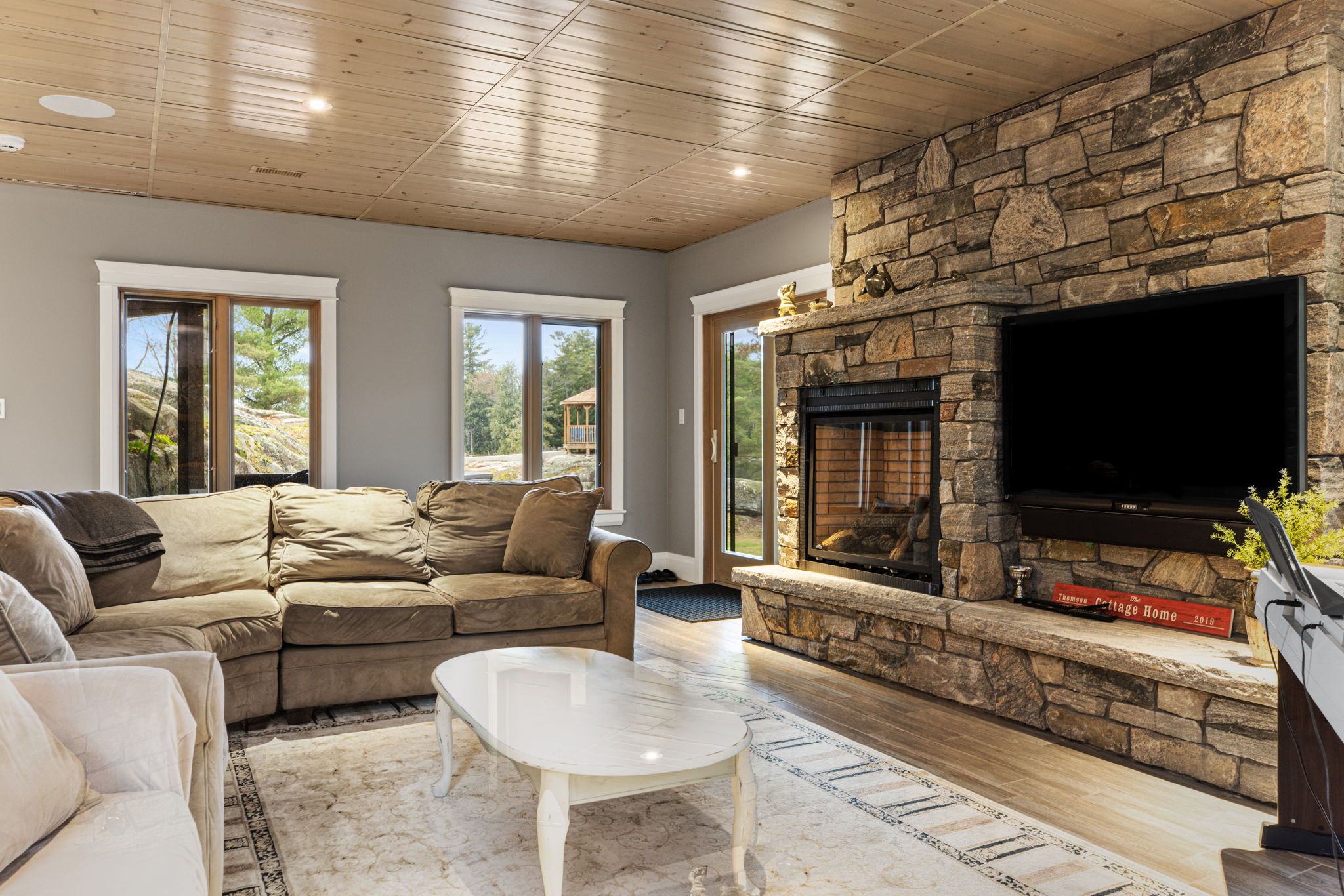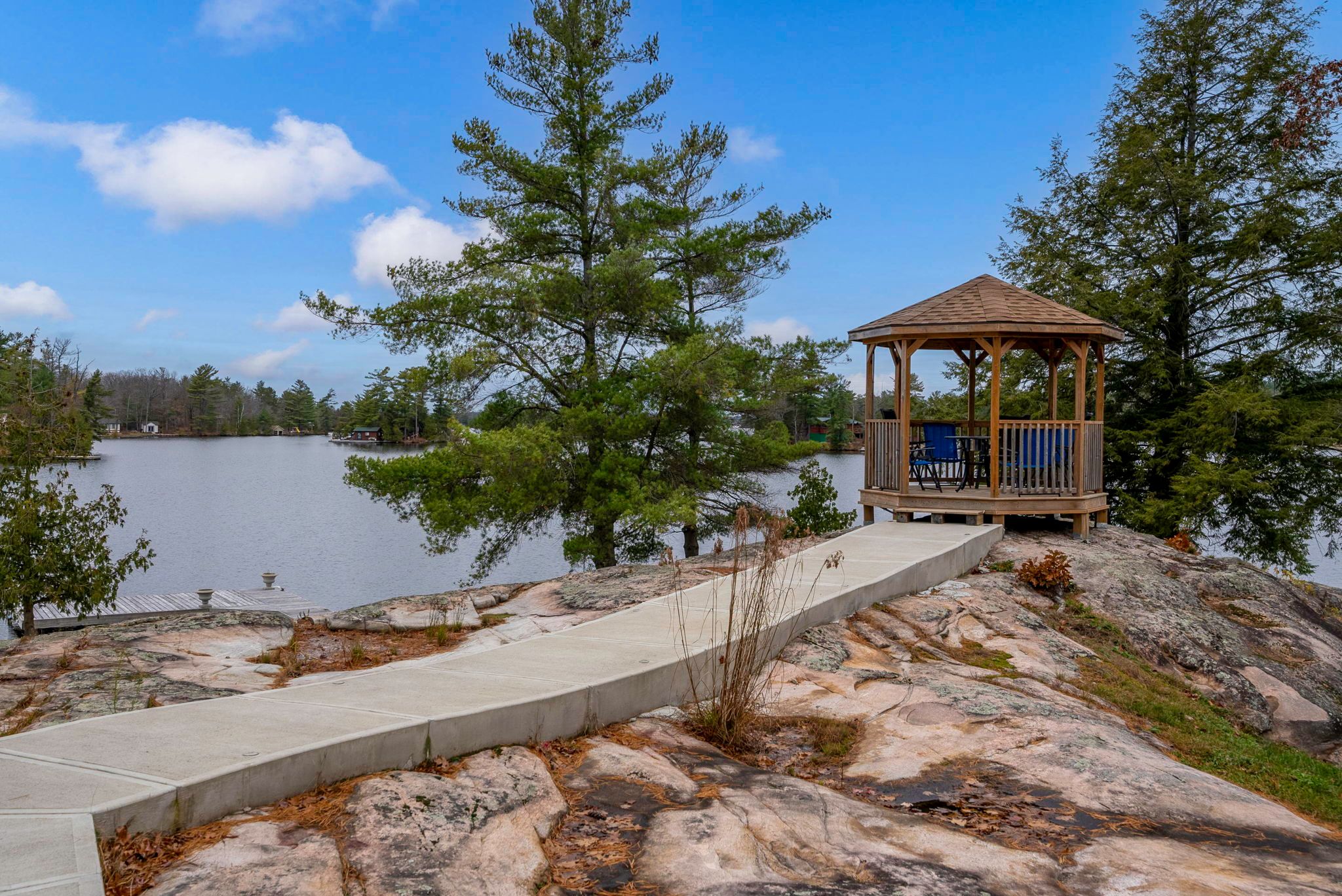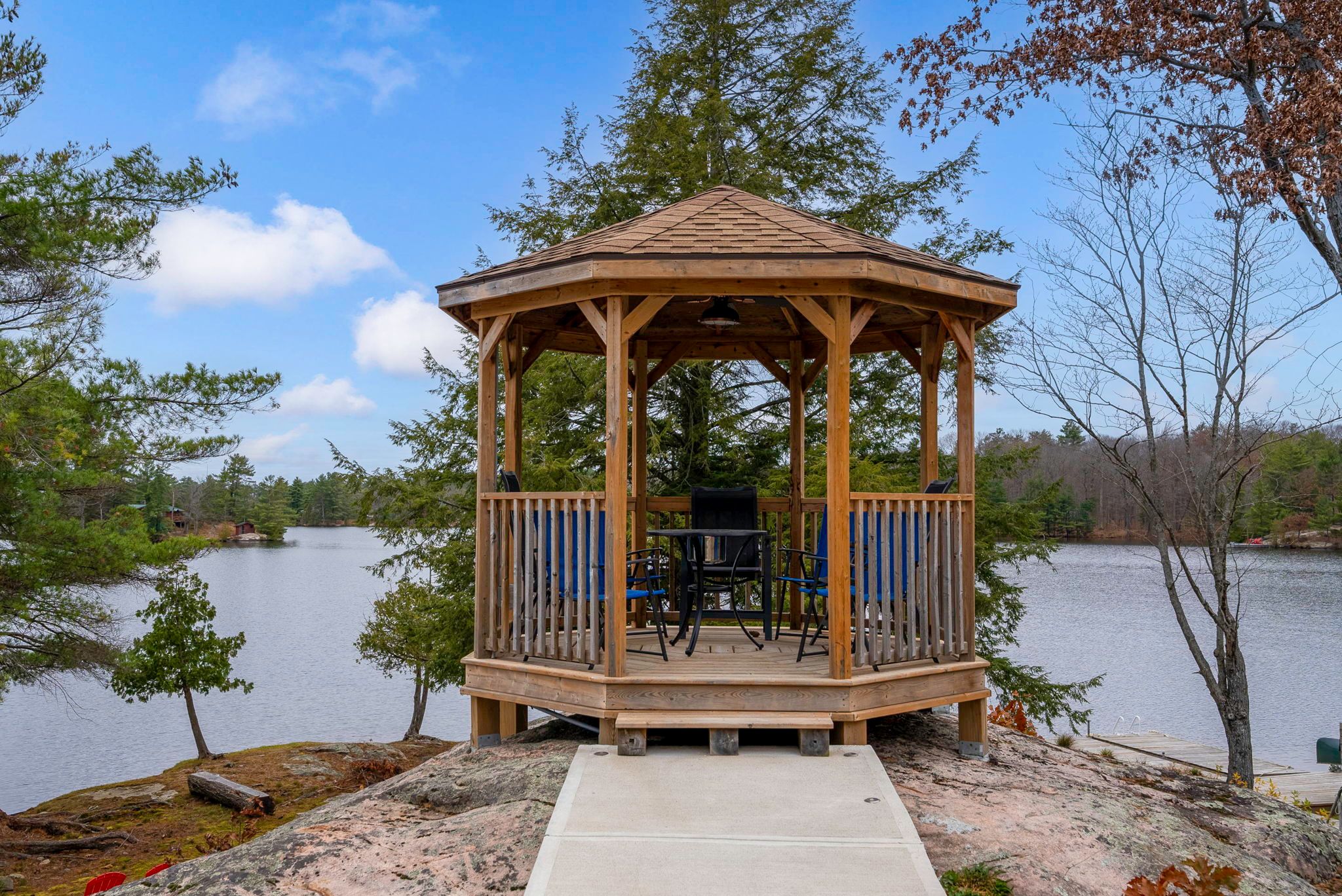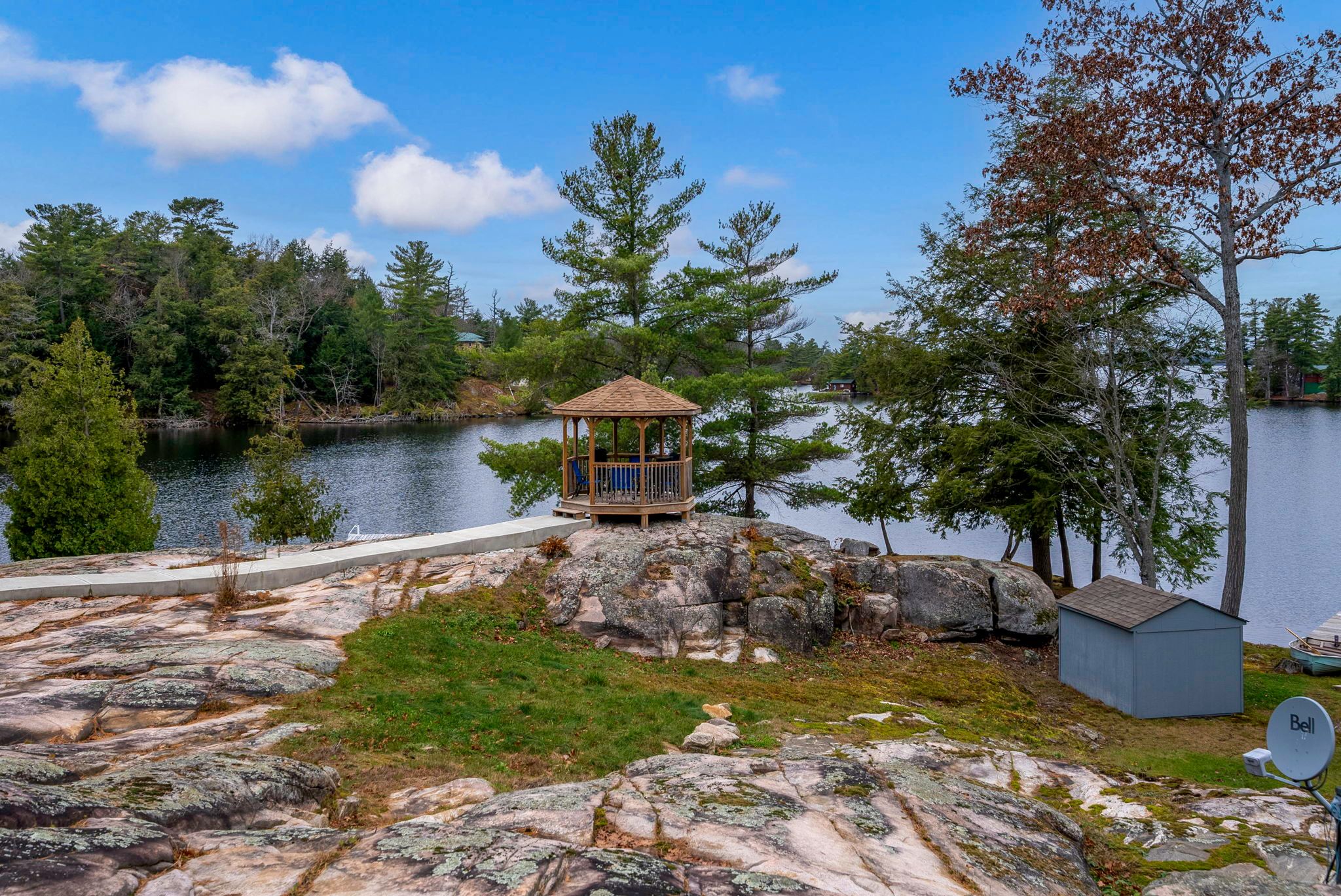 Executive waterfront retreat on gloucester pool. Located on the trent severn waterway, one lock to georgian bay. Escape to luxury with this stunning 5-bedroom, 4-bathroom waterfront estate offering the perfect blend of comfort, elegance, and breathtaking natural beauty. Over 300 feet of pristine waterfront with spectacular summer sunset views. 5 spacious bedrooms , 4 full bathrooms, vaulted ceilings and granite outcroppings create a dramatic, elegant setting. Cozy up by the wood-burning fireplace or the propane fireplace. Heated garage with private living accommodations above ideal for guests or in-laws. Expansive oversized deck perfect for entertaining. Relax in the hot tub or under the charming gazebo. A true four-season executive retreat. This is a rare opportunity to own a piece of paradise whether you're looking for a luxurious family cottage, a year-round residence, or a high-end getaway.
