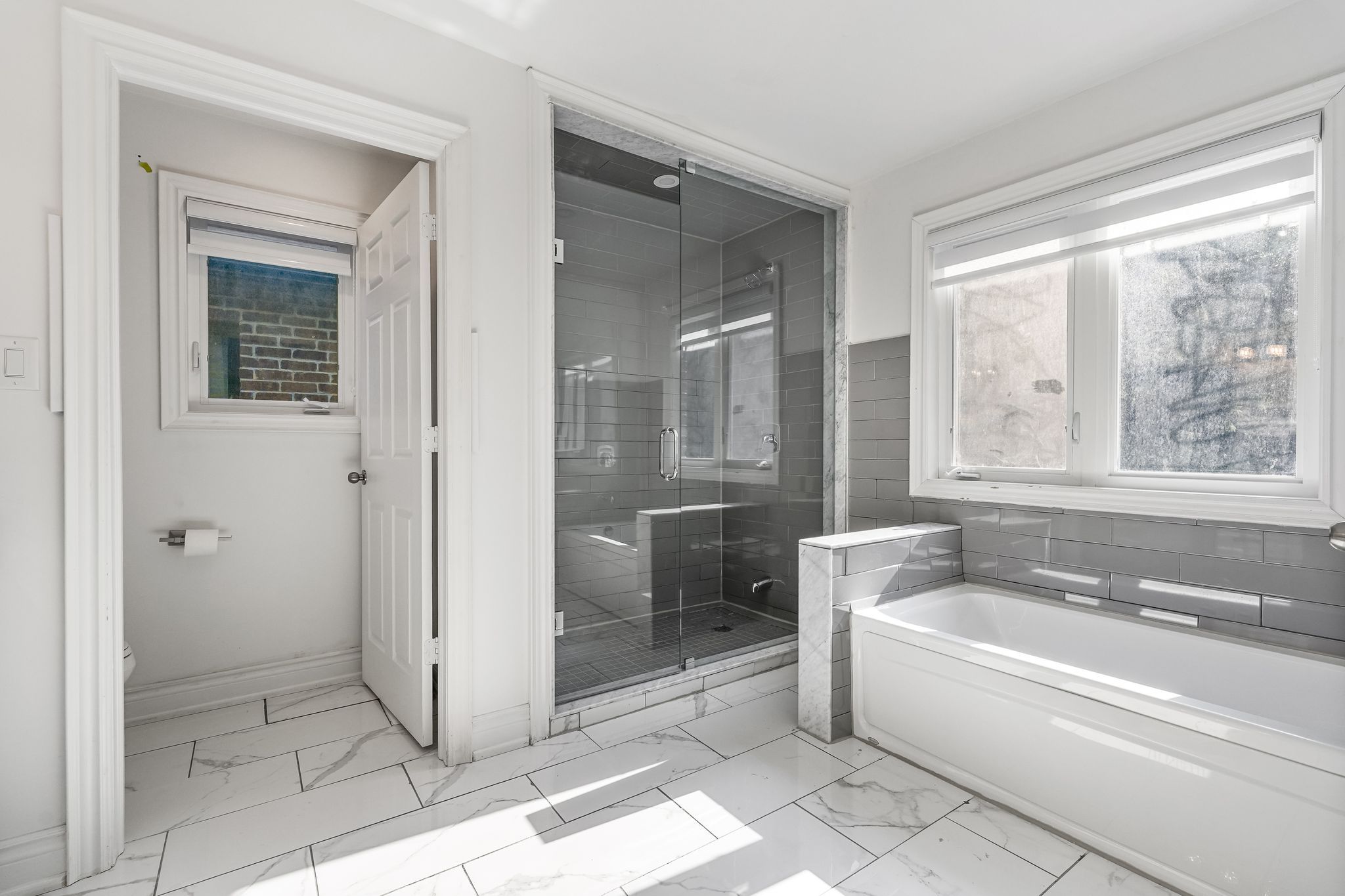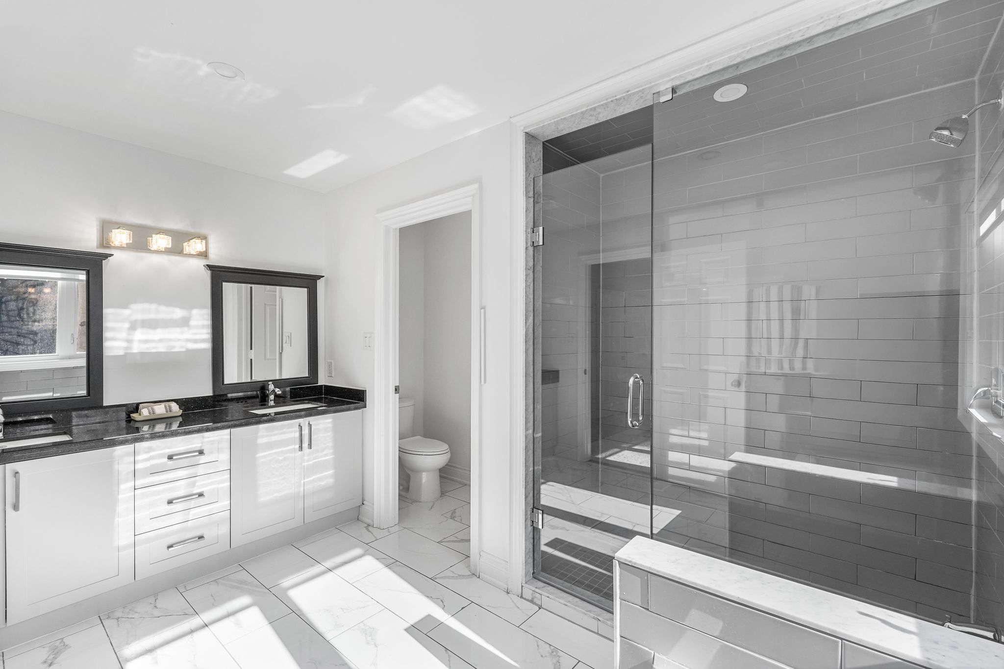 • Open-concept layout with large windows and skylights for natural light.