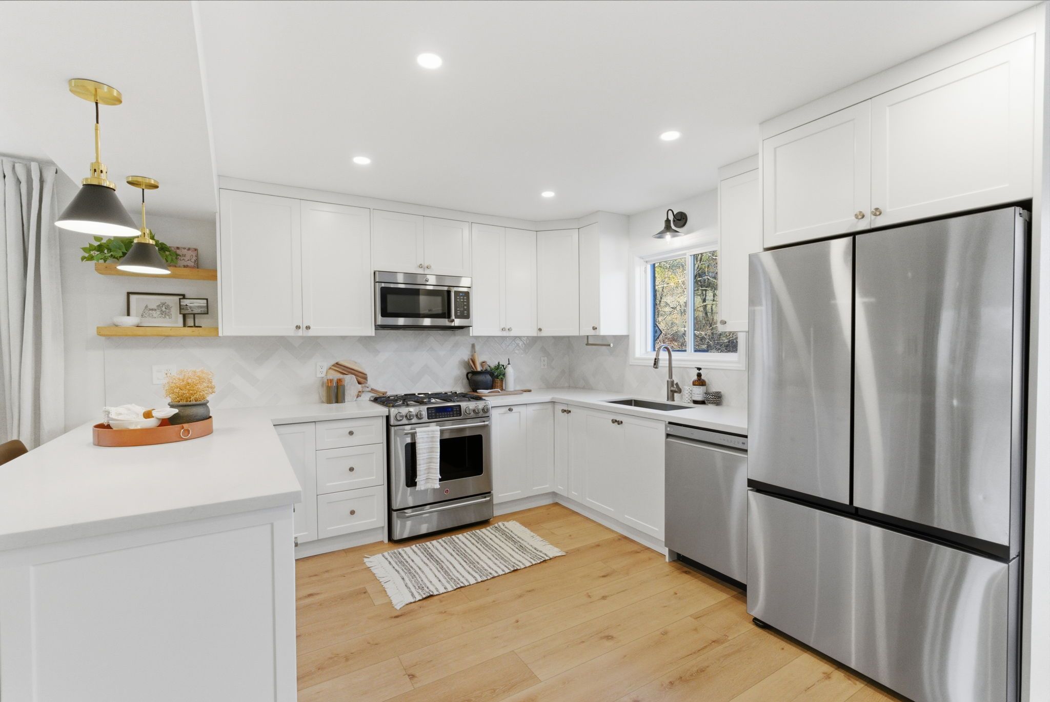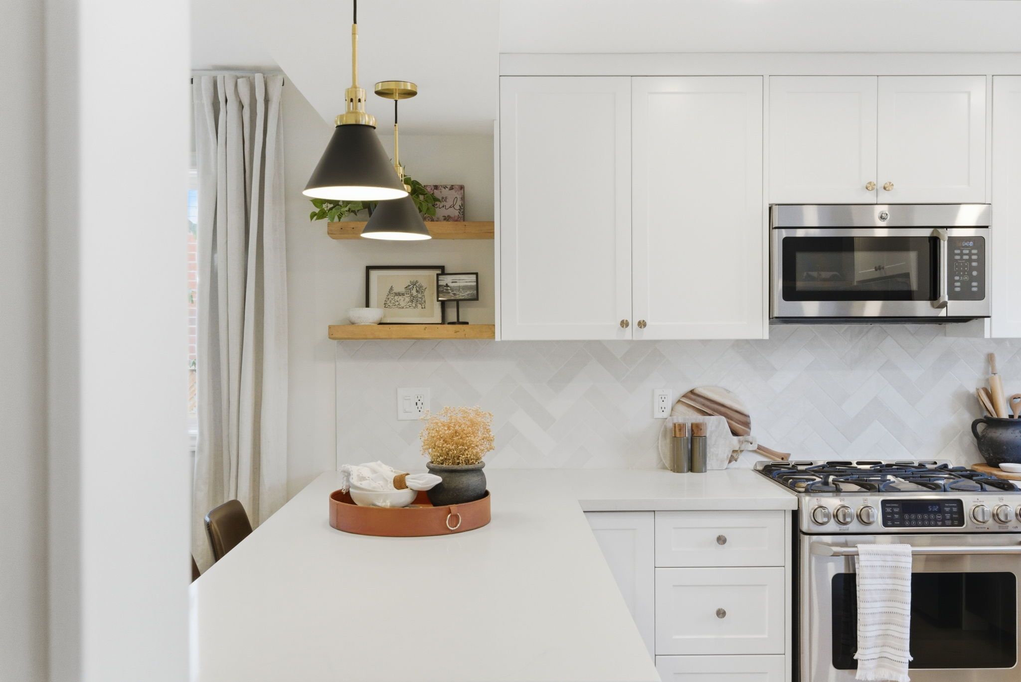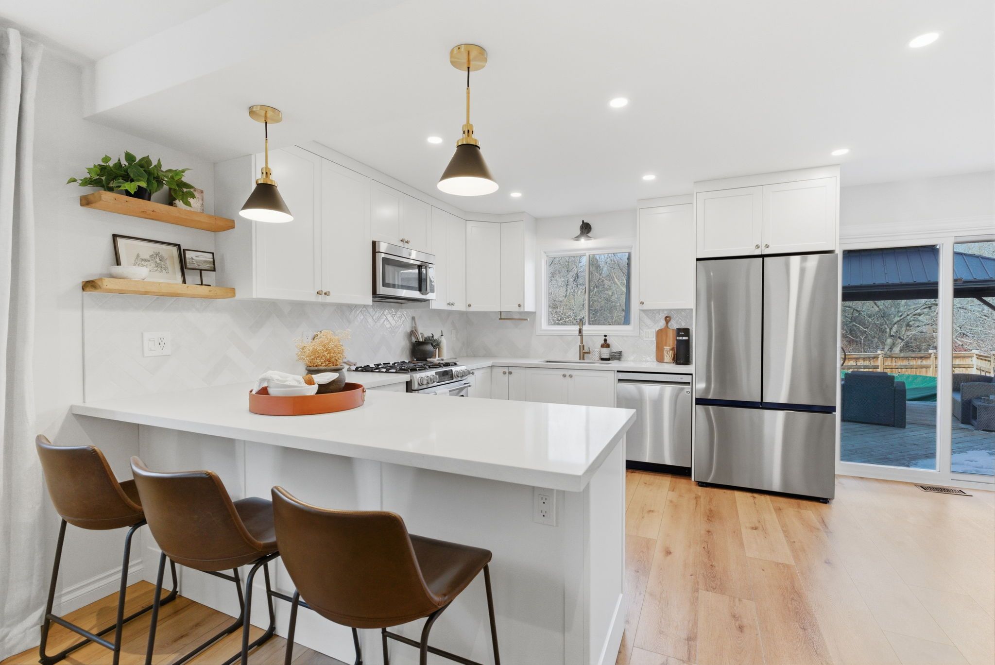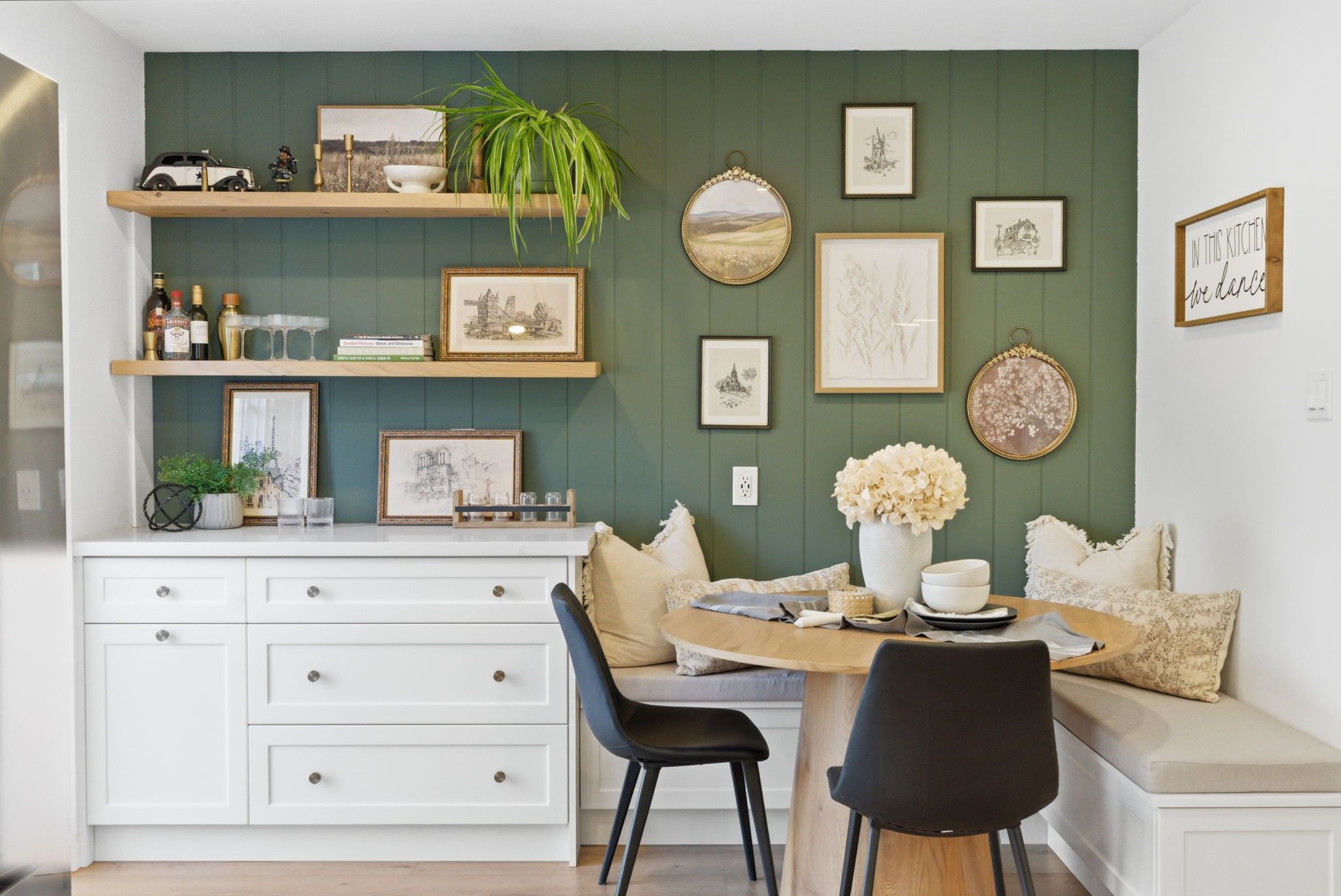 • Stylish open-concept kitchen with custom cabinetry and vintage accents.