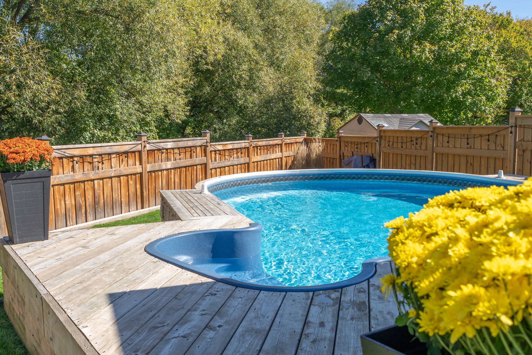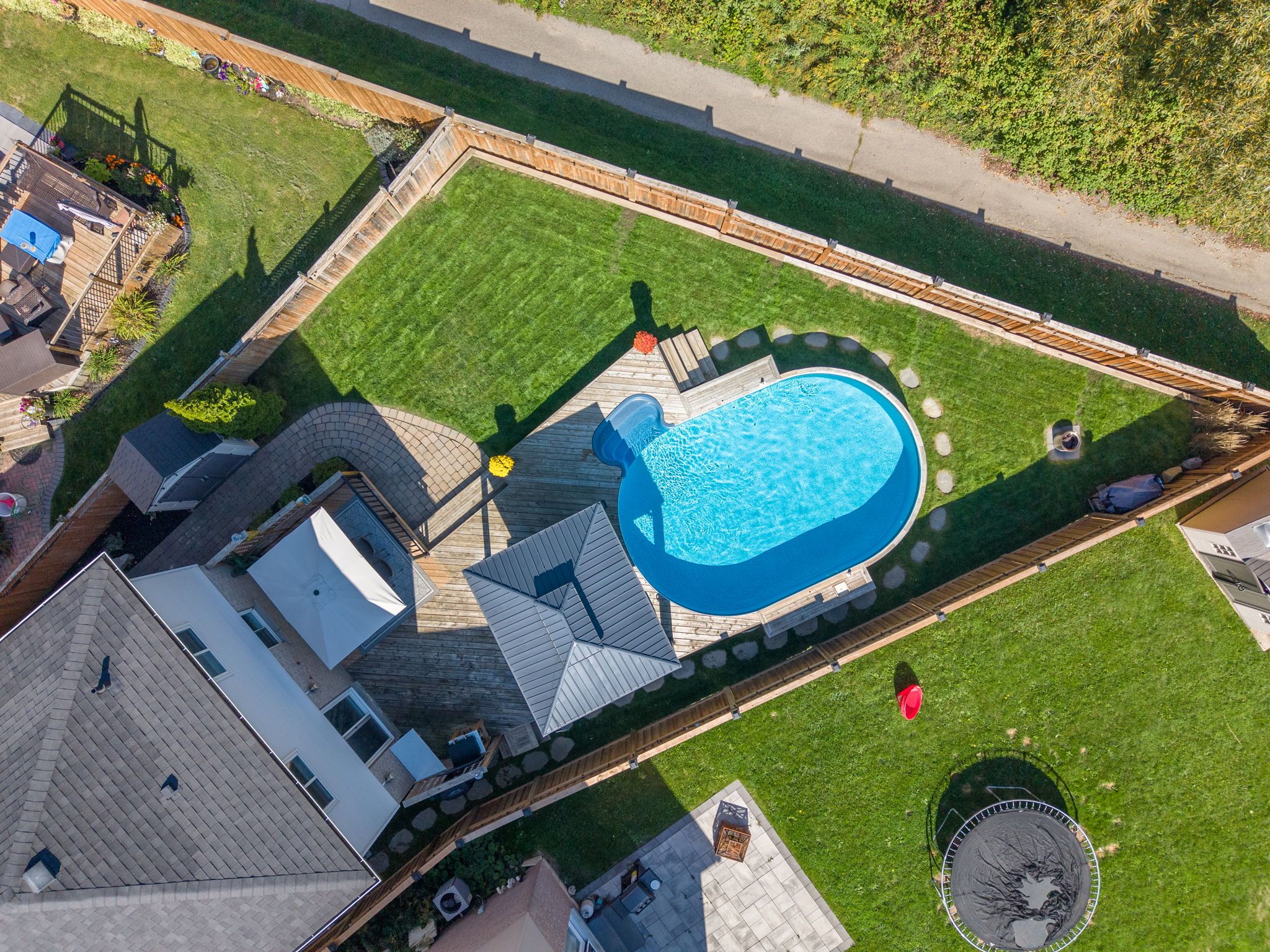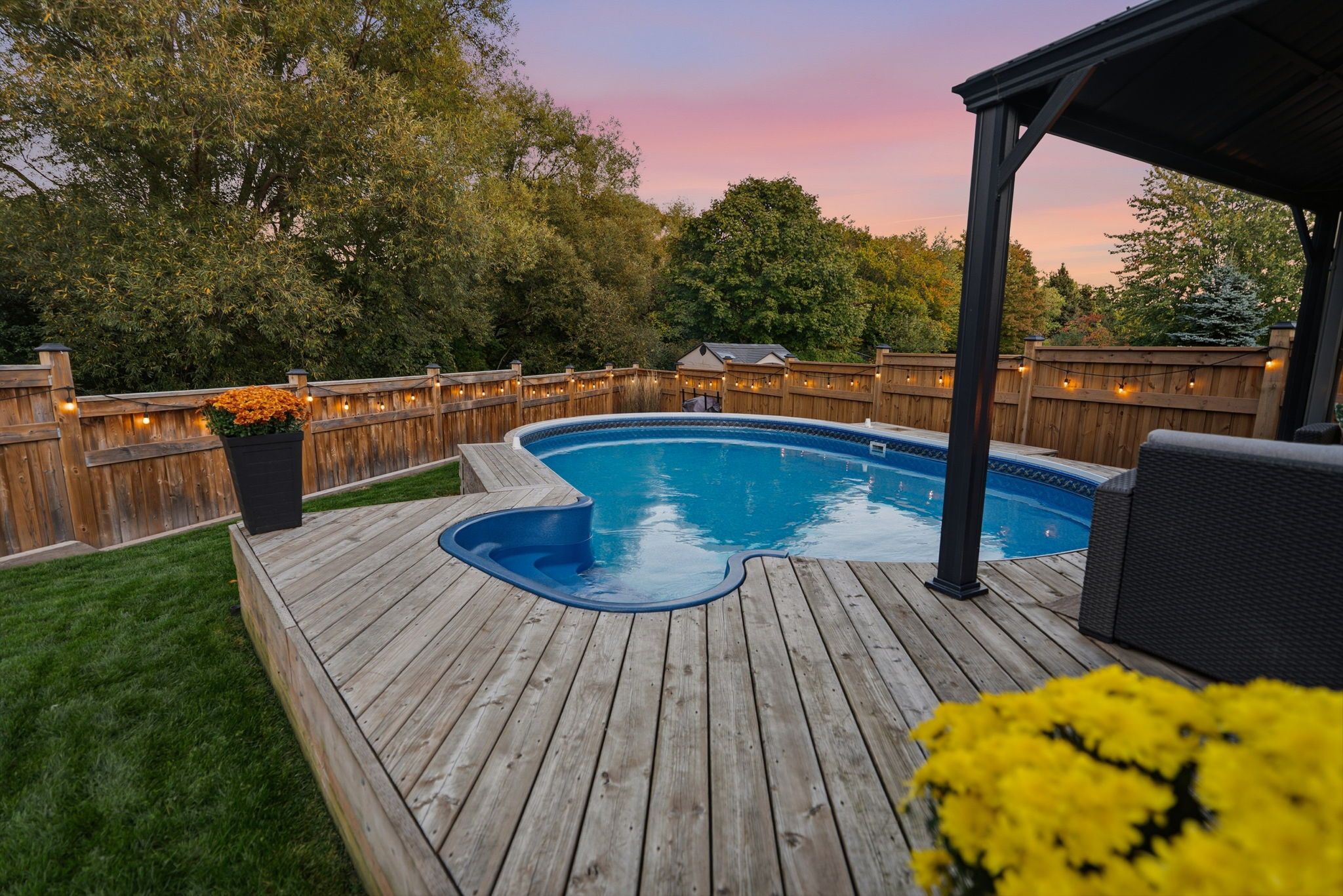 • Backyard features an on-ground pool and spacious deck for relaxation.