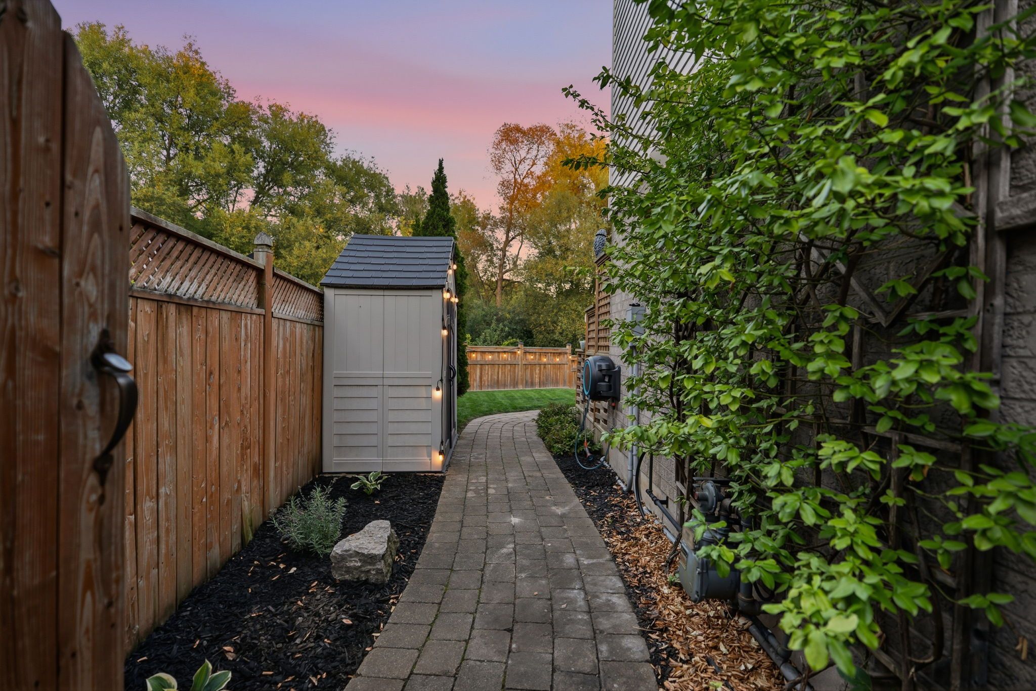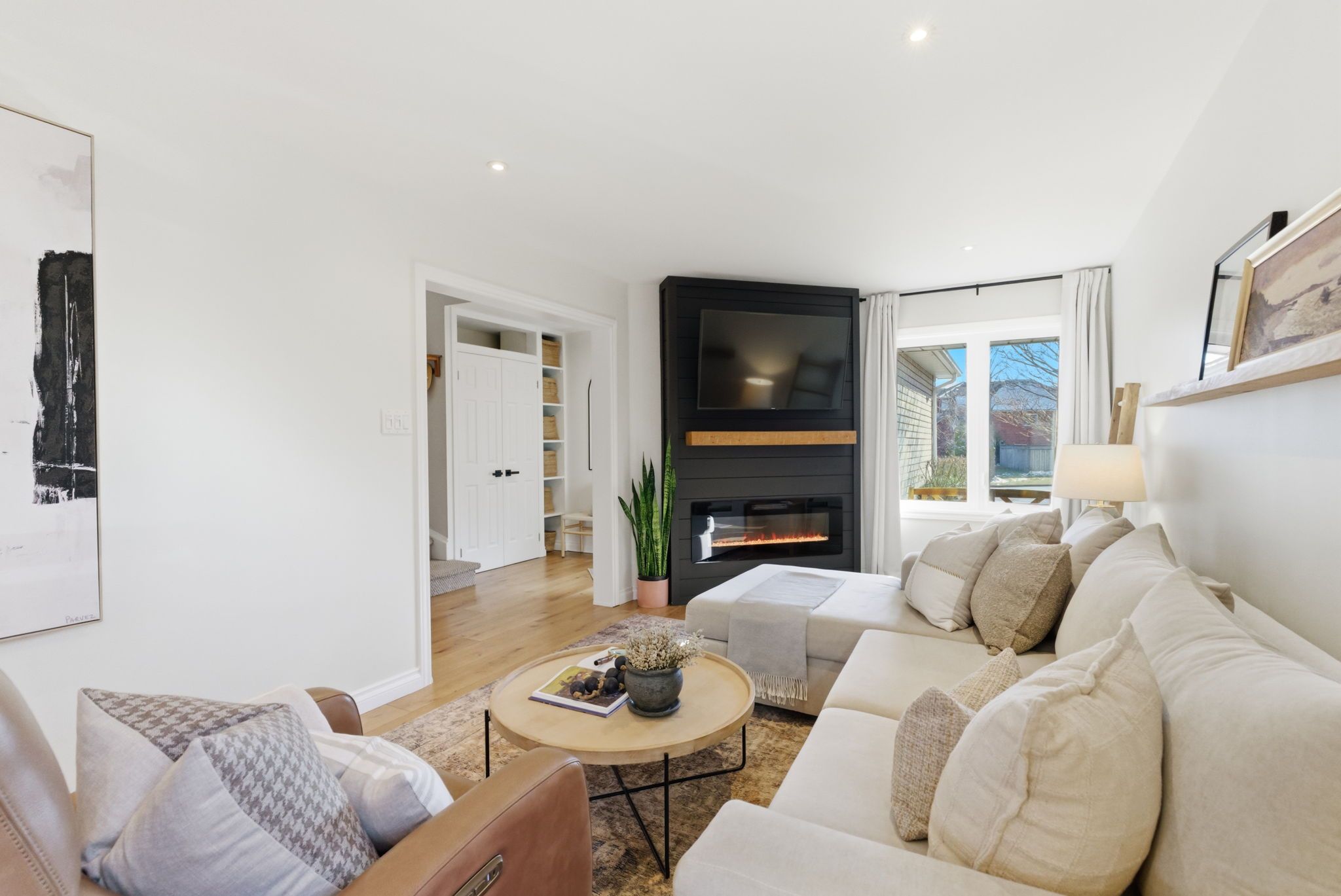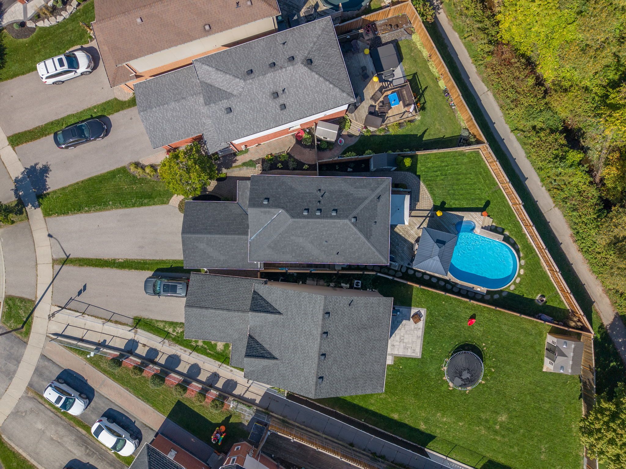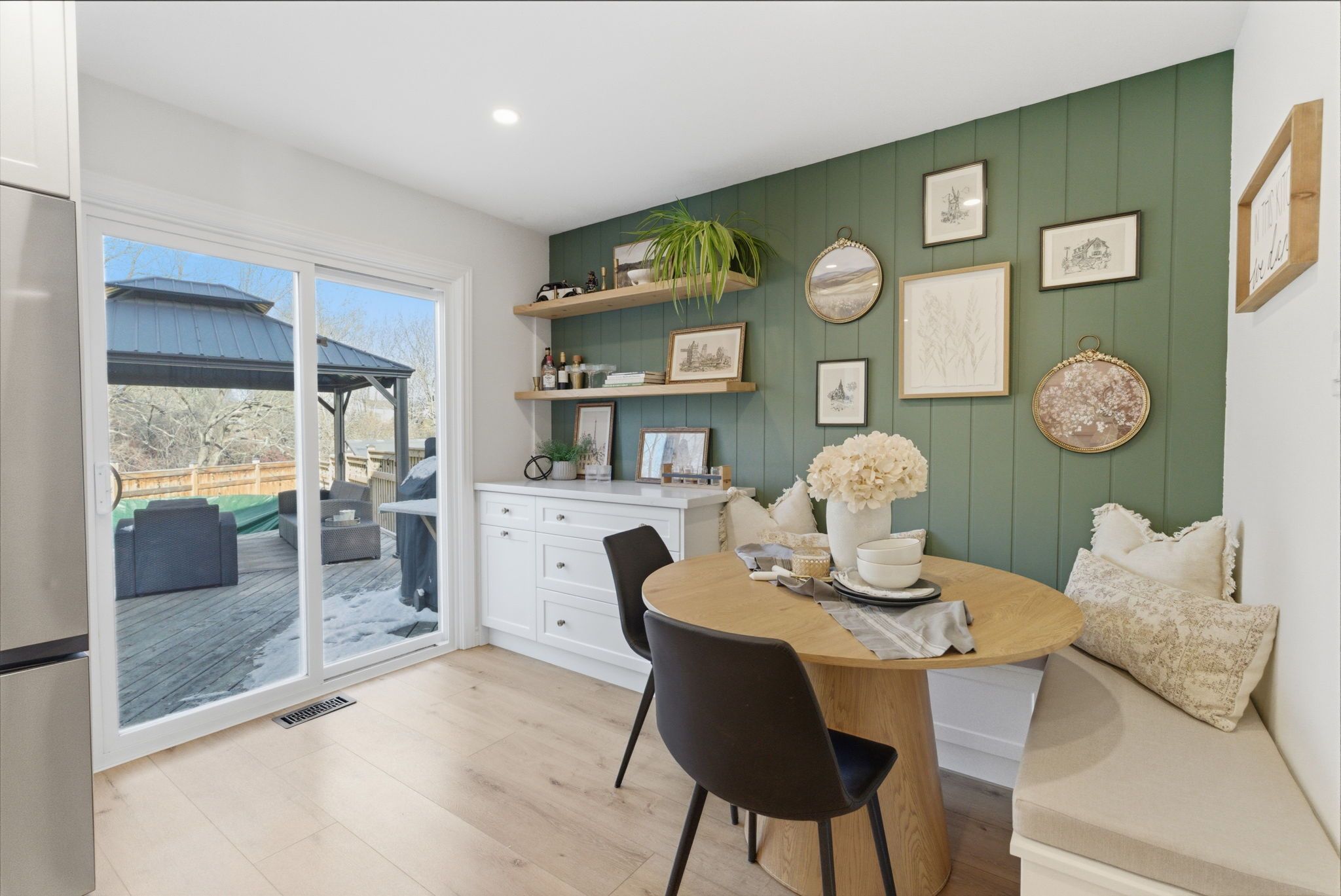 Set on a rare pie-shaped lot backing onto permanent green space, this fully reimagined home delivers a level of design & setting rarely seen at this price point. The backyard is layered & intentional, anchored by an on-ground pool (half inground) & expansive deck with uninterrupted views & trail access. It feels like an escape, without ever leaving home! Curb appeal hits instantly with grey brick, new black windows (2023) & garage door, plus an oversized driveway for 6. Inside, every finish feels considered. Light oak lvp flooring (2023) runs throughout, paired with a scandinavian-meets-vintage aesthetic that feels both fresh & grounded. The open-concept kitchen & living space is anchored by a striking black shiplap electric fireplace. The kitchen, redesigned in 2023, blends function & character with custom cabinetry, quartz counters & a herringbone backsplash that leans vintage in the best way. A built-in banquette dining nook & coffee bar create a space that feels curated, not cookie-cutter, framed by full-height vertical shiplap in a deep, moody green. Walkout to the backyard extends the entire experience. Main floor includes a renovated 2-pc bath. Upstairs, the primary suite is bright & calm with a walk-in closet & fully updated ensuite with glass shower. Two additional bedrooms feature custom built-ins, plus an updated 4-pc bath. The finished lower level continues the same vibe with lvp flooring, offering a family room, play zone & separate flex space for gym, office or guest suite, plus laundry with built-ins. Major updates incl heat pump & furnace (2023), roof (2017), windows & garage door (2023) & garage door opener (2025). Pool sand filter (2025), new liner scheduled may 2026 & partial fence (2024). Set in one of bowmanville's most sought-after pockets, walkable to future go, schools, shops & transit, with easy hwy access!