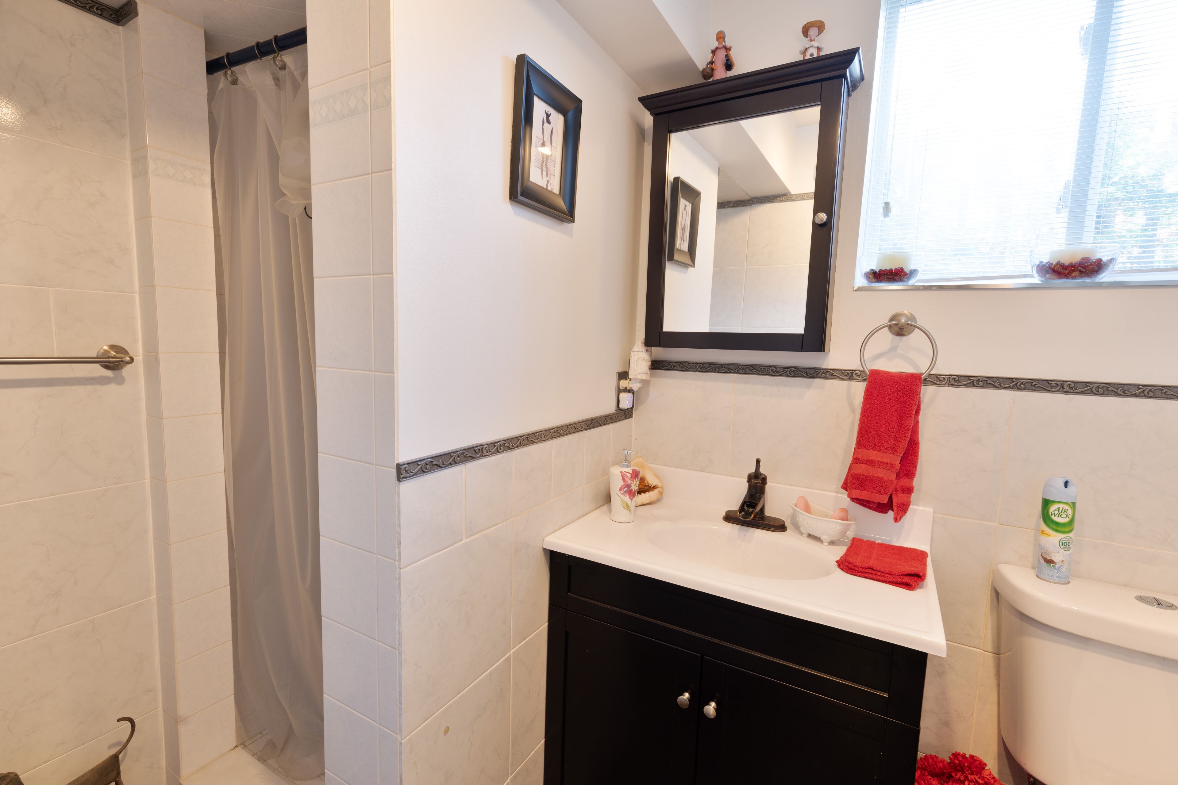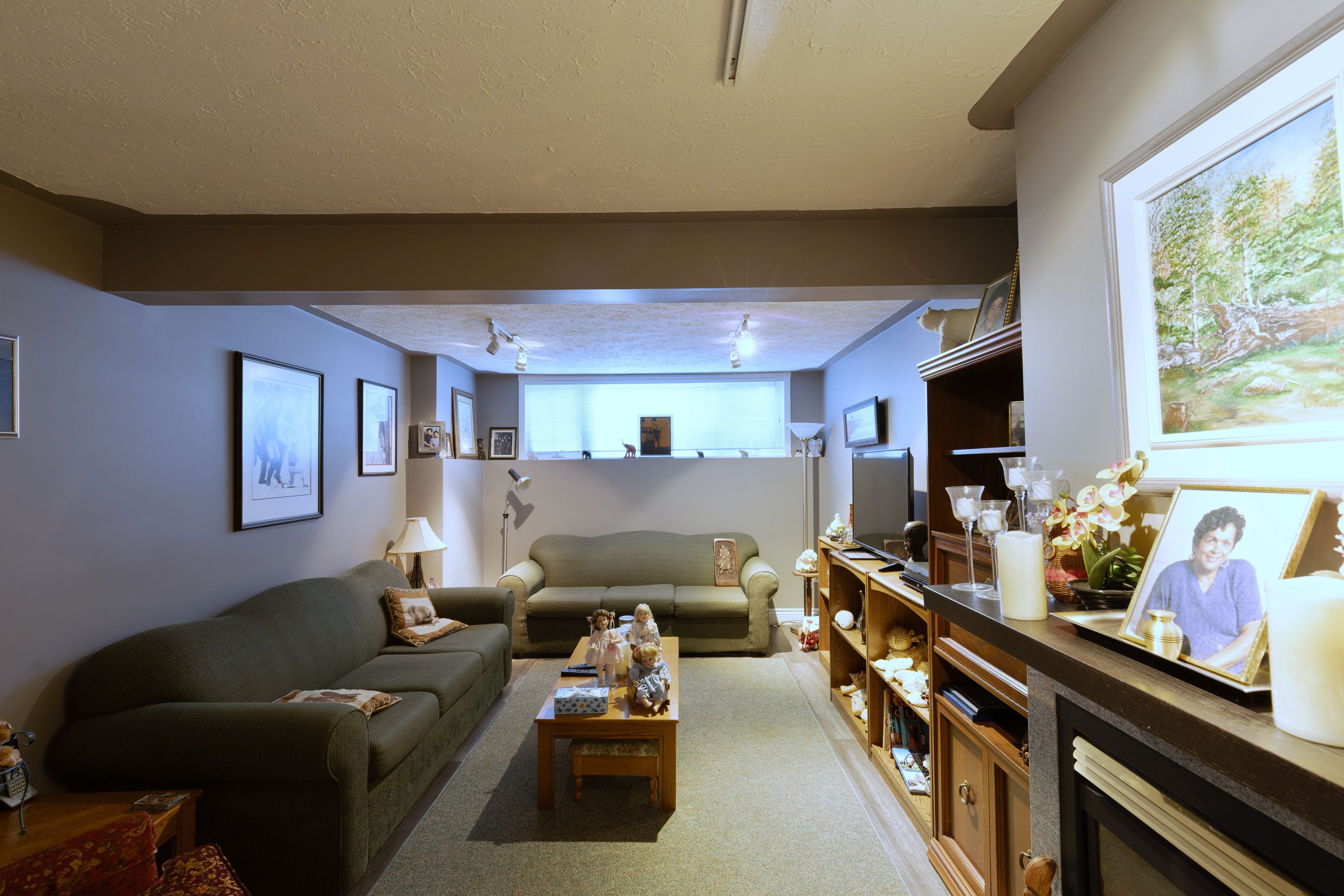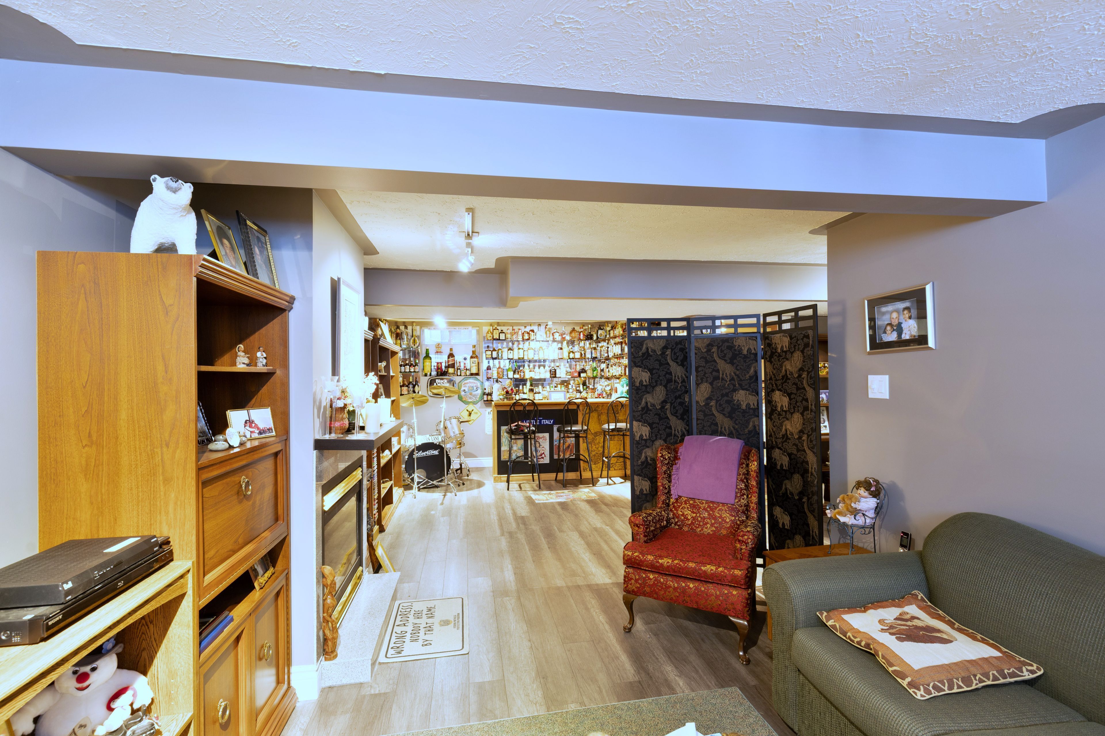 • Finished basement with a rec room and cozy gas fireplace.