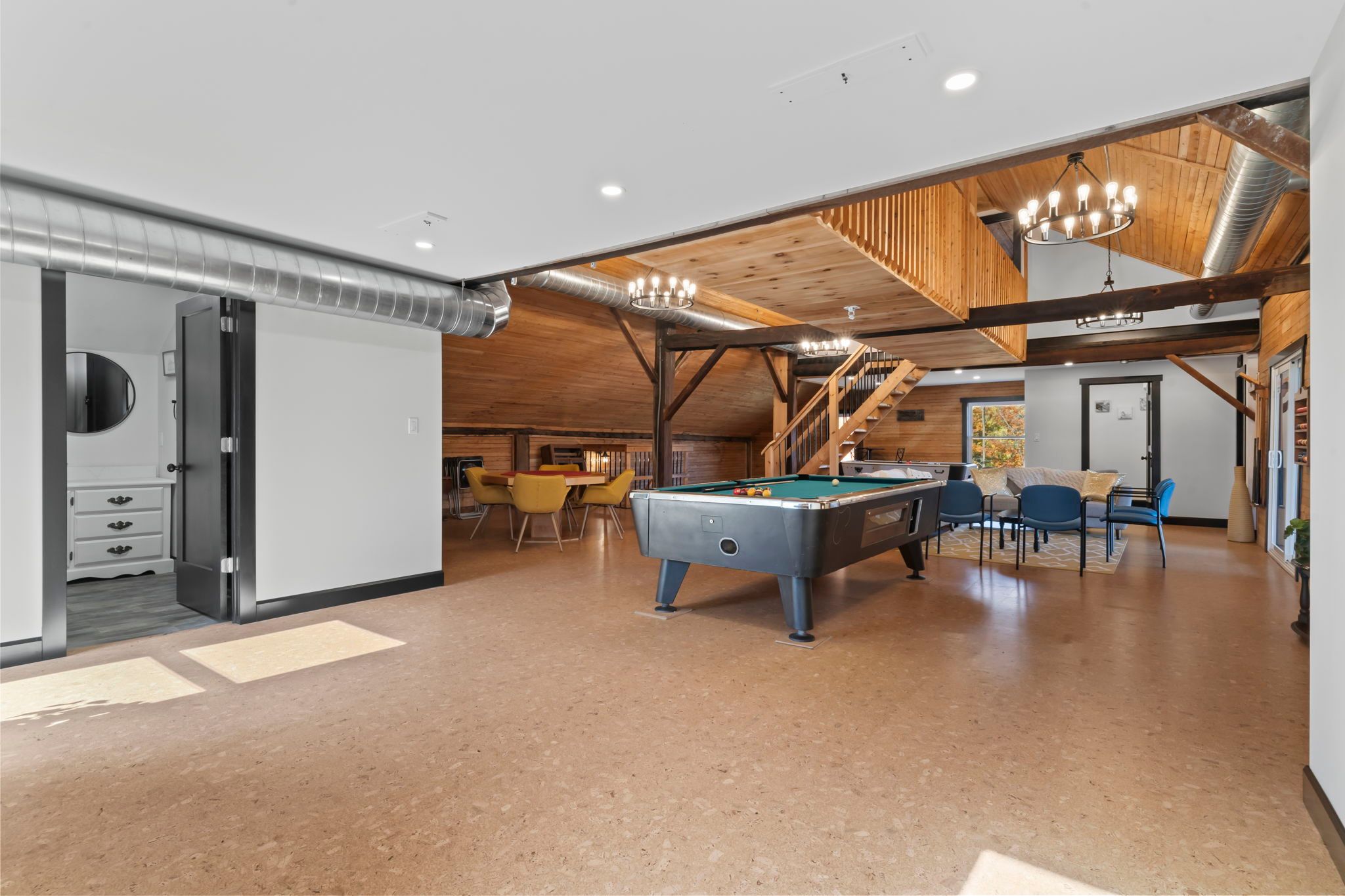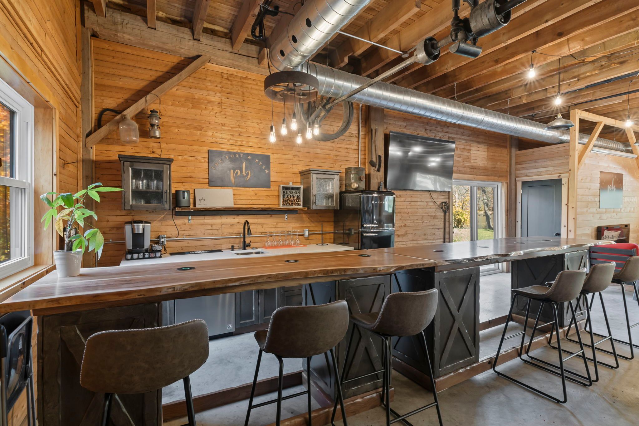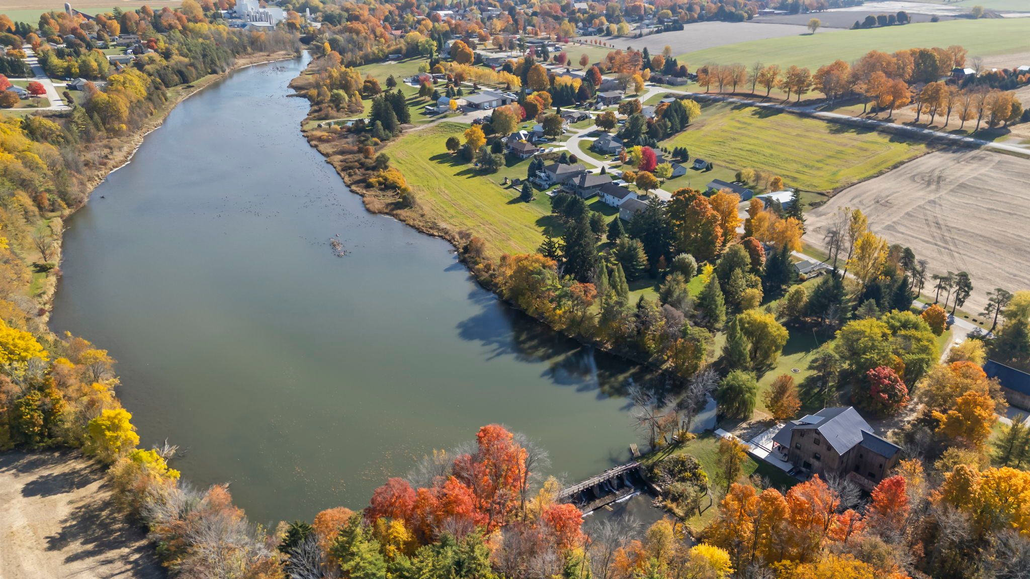 Impeccably restored 19th-century mill, secluded at the end of a quiet street. Set on a 7-acre estate and bordered by a 14-acre private pond, this property promises privacy and tranquillity. Originally built in 1888, the mill blends historic character with modern luxury, boasting over 8,000 sq ft of living space, including outdoor entertaining areas, 10 spacious bedrooms, and 8 beautifully updated ensuites. This home underwent a top-to-bottom renovation in 2021, preserving its historic charm while incorporating high-end finishes and state-of-the-art upgrades. The remodel includes all-new doors, windows, roofing, plumbing, electrical, and heating and cooling systems. Each level of the home is independently climate-controlled with its own furnace and a/c system, ensuring comfort year-round. An artesian well and water treatment facility provide premium water quality. The kitchen is designed for culinary enthusiasts, featuring a 10-foot island with quartz countertops and new stainless-steel appliances. The main floor is an entertainers paradise, offering a social area with an 18-foot wet bar. The second floor is equally impressive, housing four king-sized bedrooms, a cozy lounge area, a second wet bar, and soft cork flooring throughout. This floor also includes a family suite with two additional bedrooms and laundry facilities for added convenience. The third floor is where youll find more breathtaking viewsa private balcony offers a scenic overlook of the pond, complete with water rights to feed your own hydro-generating dam. This floor includes four additional bedrooms, two full bathrooms, and a recreational area perfect for billiards, air hockey, or simply unwinding in the lounge. A lengthy driveway and spacious parking area can easily accommodate up to 30 vehicles, while the sizeable barn and workshop provide extra storage for recreational equipment. Furnished and move-in ready, this estate offers an unmatched blend of history, elegance, and modern comfort.