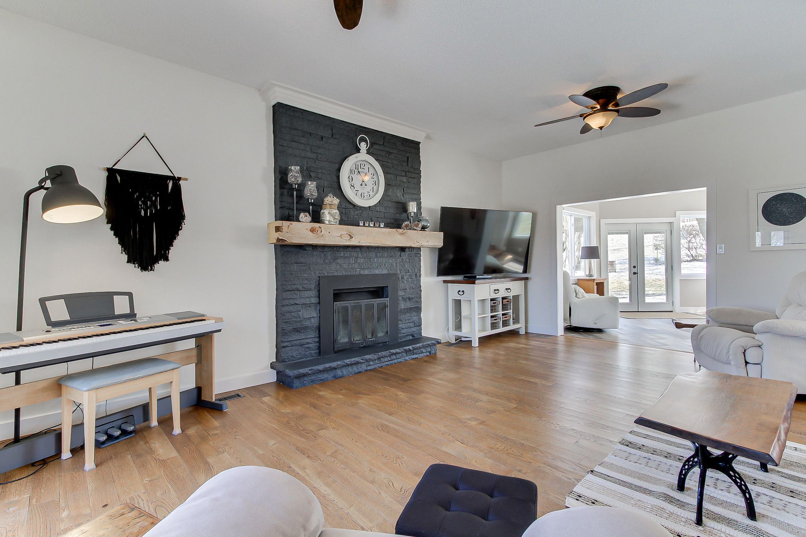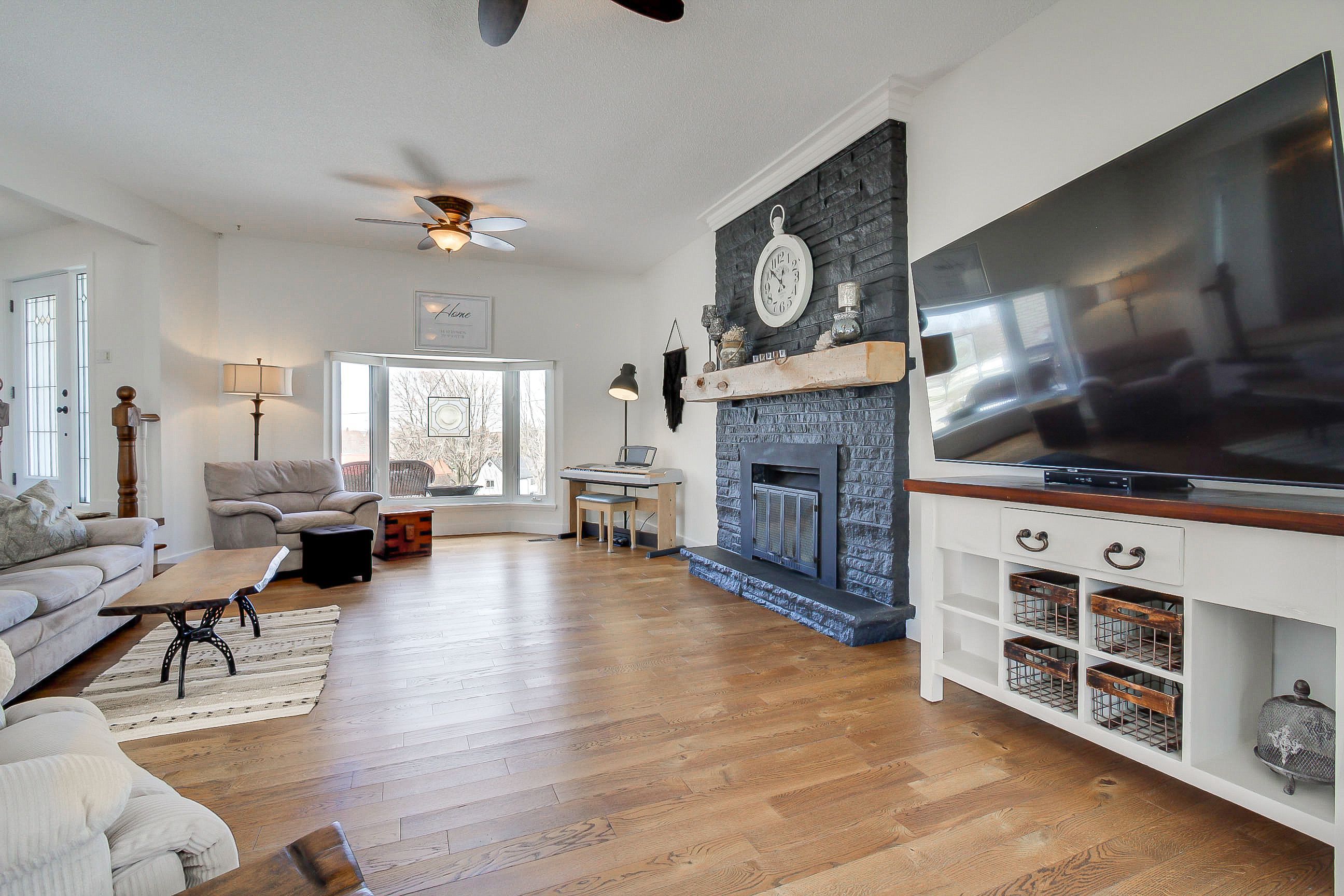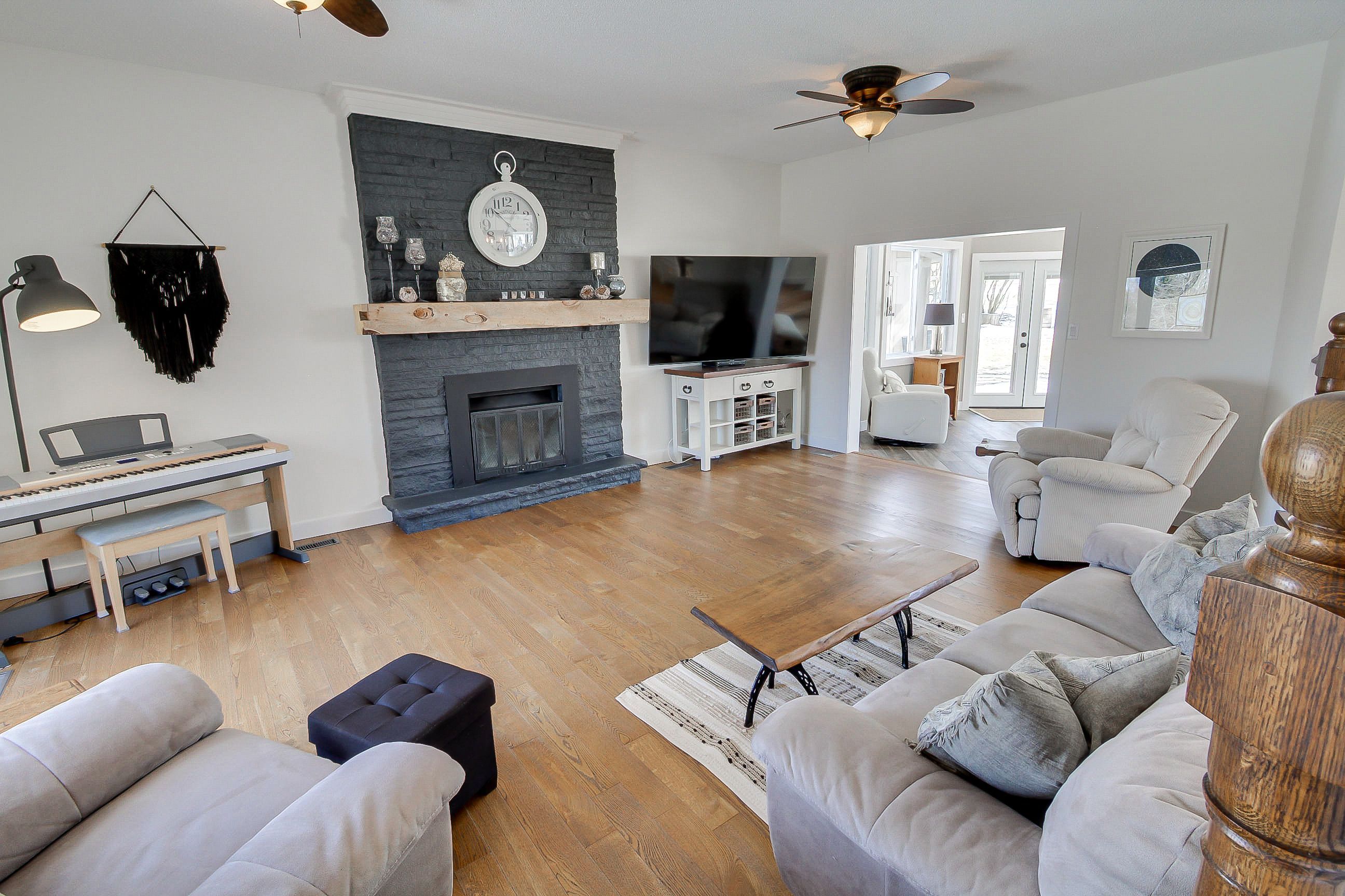Welcome home to this immaculate two-family home! Beautiful bungalow situated on over 1/2 acre backing onto farm fields & adjacent to vacant twnshp lot provides tons of room to live/play/enjoy! Circular paved driveway with parking for 9 vehicles (+ double car garage); 14 ft x 15 ft front deck; professionally landscaped with armour stone; come inside to hardwood & tile throughout; 3 bdrms on main floor; master with w/i closet & 4 pc ensuite; large updated kitchen with quartz counters & centre island, large sunken living room with fireplace opens up to a bright 4-season sunroom/family room; main floor laundry; 2 walk outs to yard & 14' x 19' composite deck with calming & private views; downstairs is a 4-yr-old/2 bedroom apartment with full eat-in kitchen with quartz counters, family room, separate laundry & 4 pc w/room; separate entrance allows for $$$$ rental income; or bring your extended family to join you; electrical panel 2021, furnace & heat pump 2021; survey attached; this home shows true pride of ownership exuding warmth & beauty; a must see to appreciate!