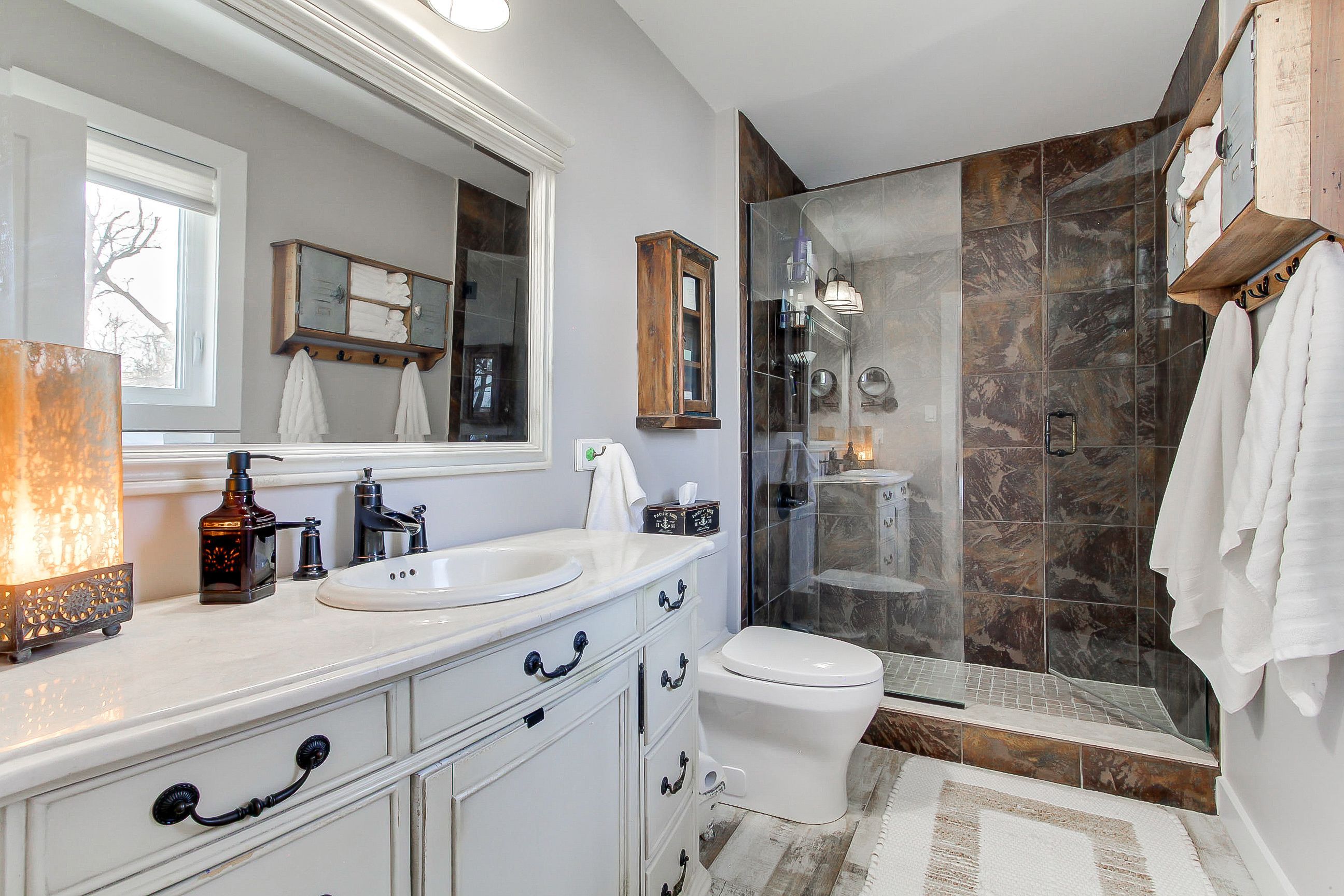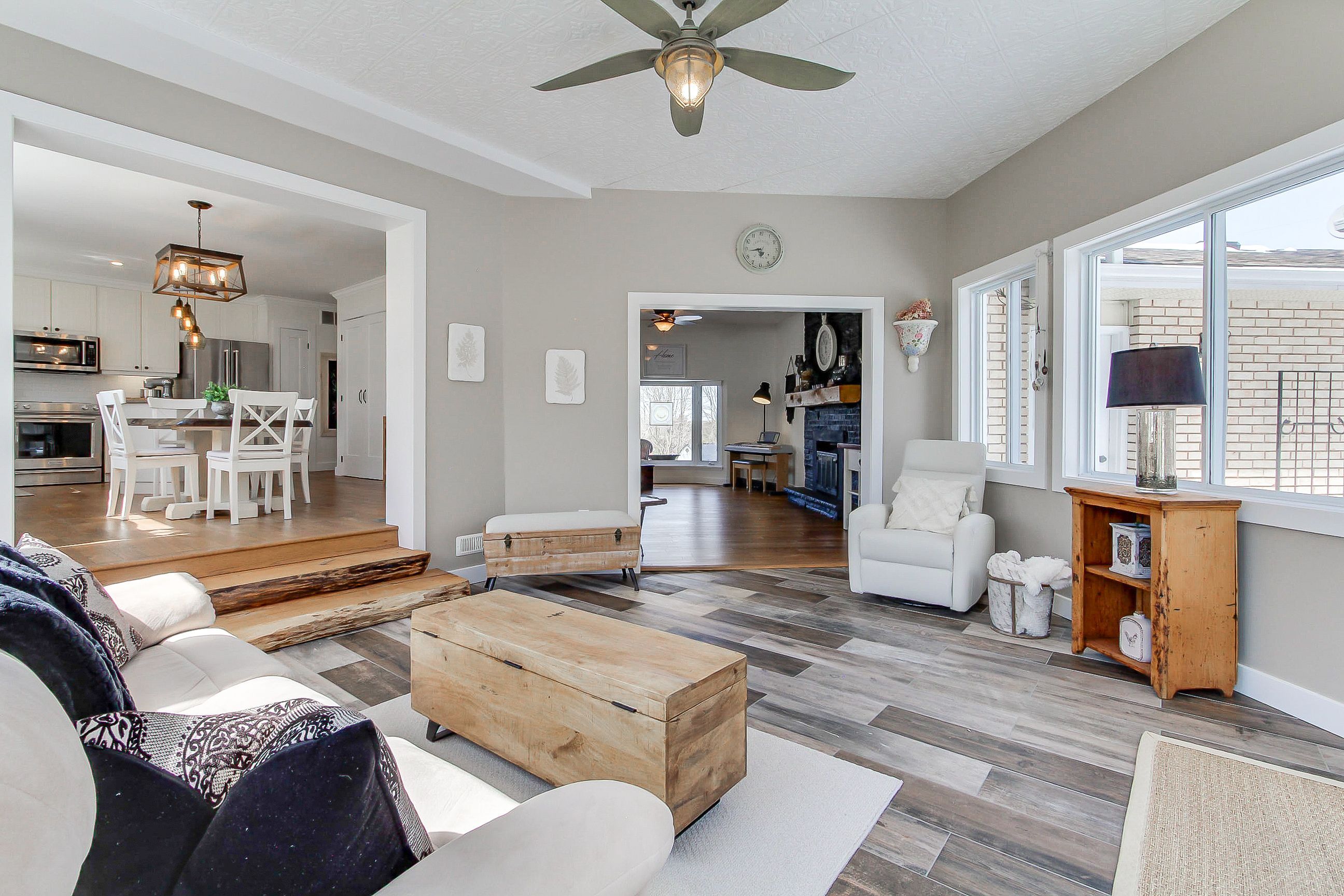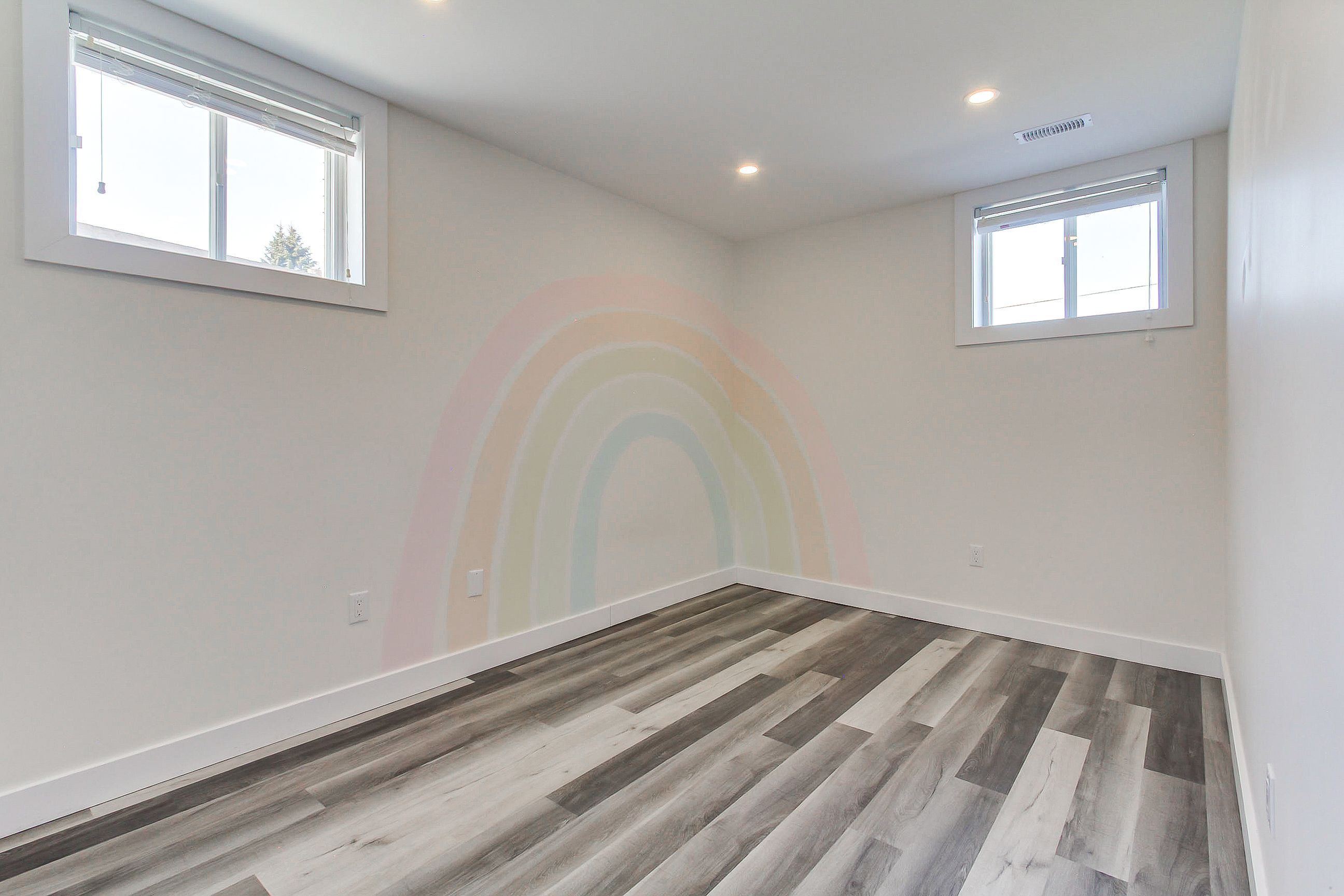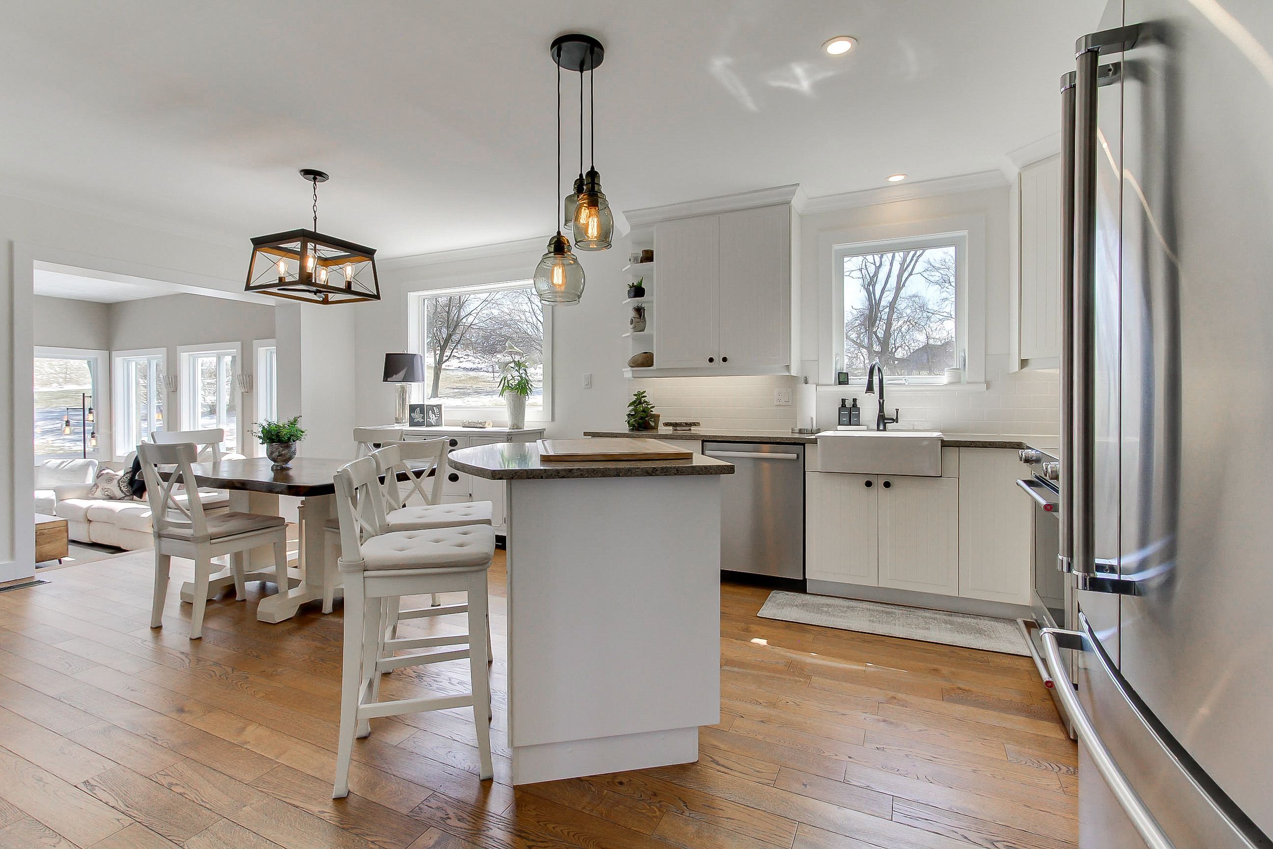 Welcome home to this immaculate two-family home! Beautiful bungalow situated on over 1/2 acre backing onto farm fields & adjacent to vacant twnshp lot provides tons of room to live/play/enjoy! Circular paved driveway with parking for 9 vehicles (+ double car garage); 14 ft x 15 ft front deck; professionally landscaped with armour stone; come inside to hardwood & tile throughout; 3 bdrms on main floor; master with w/i closet & 4 pc ensuite; large updated kitchen with quartz counters & centre island, large sunken living room with fireplace opens up to a bright 4-season sunroom/family room; main floor laundry; 2 walk outs to yard & 14' x 19' composite deck with calming & private views; downstairs is a 4-yr-old/2 bedroom apartment with full eat-in kitchen with quartz counters, family room, separate laundry & 4 pc w/room; separate entrance allows for $$$$ rental income; or bring your extended family to join you; electrical panel 2021, furnace & heat pump 2021; survey attached; this home shows true pride of ownership exuding warmth & beauty; a must see to appreciate!