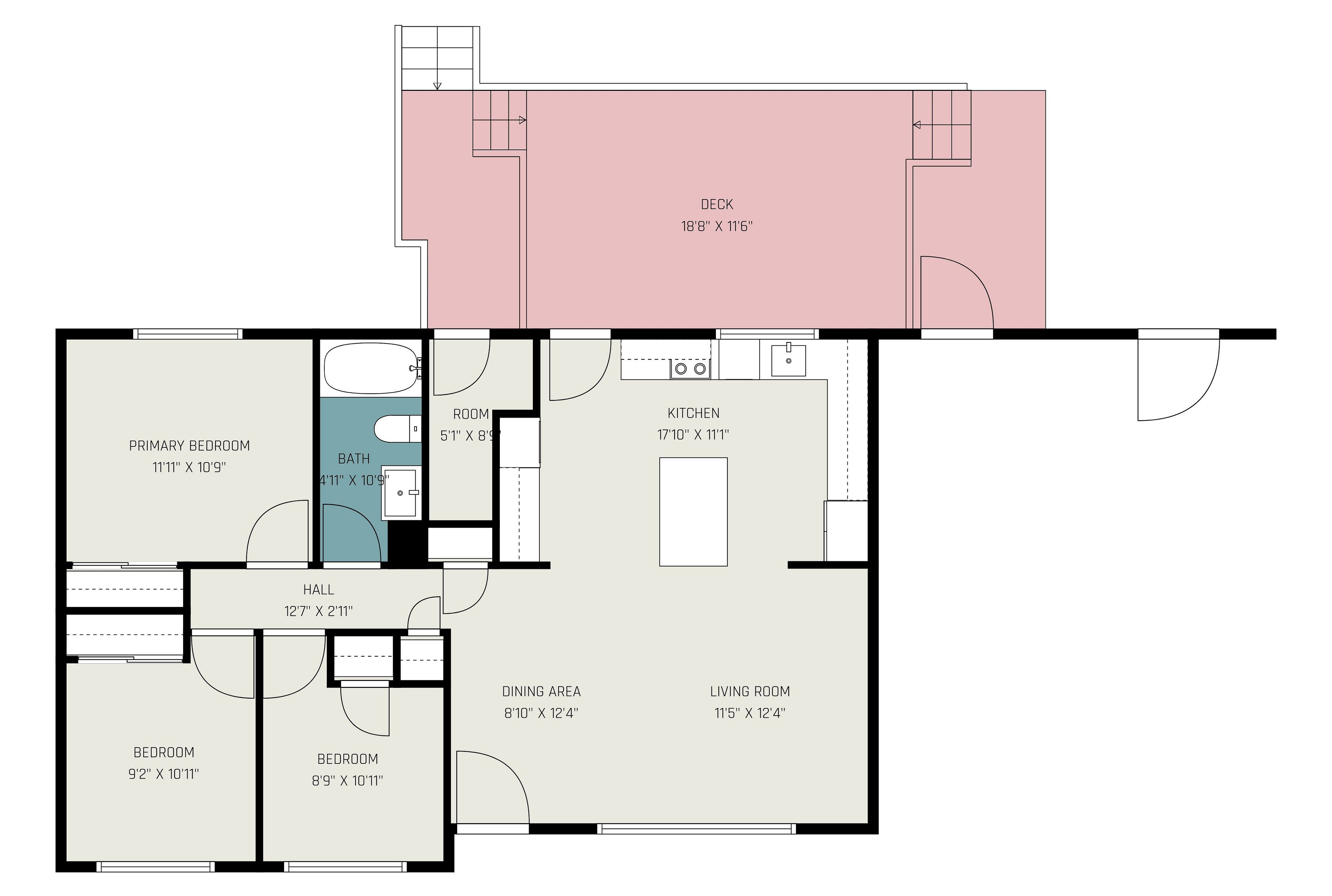 • Three generous bedrooms and one full bathroom for comfortable living.