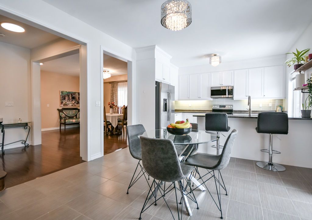 • Eat-in kitchen with stainless steel appliances and ample space.