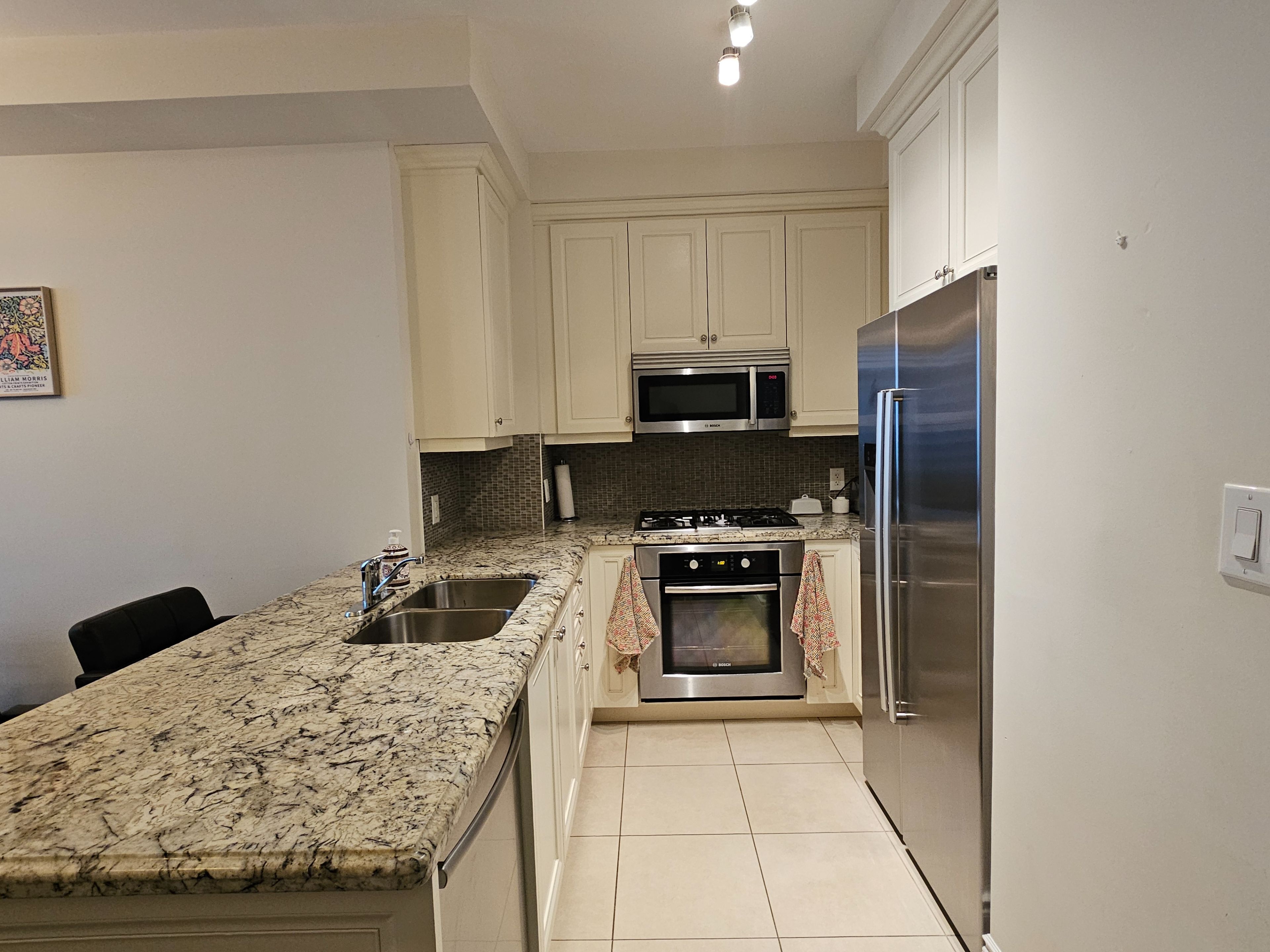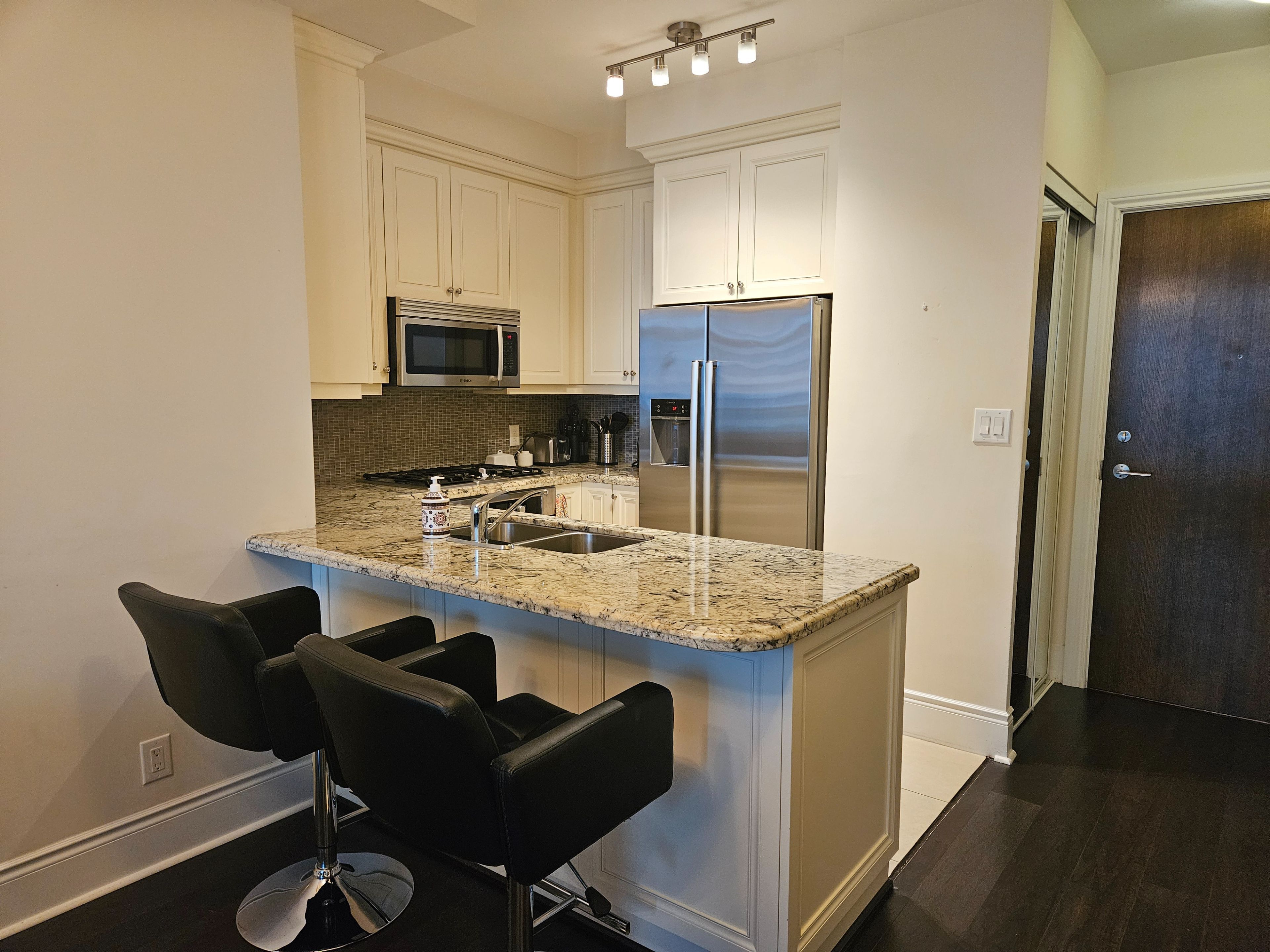 • Upgraded kitchen with stainless steel appliances and breakfast bar.