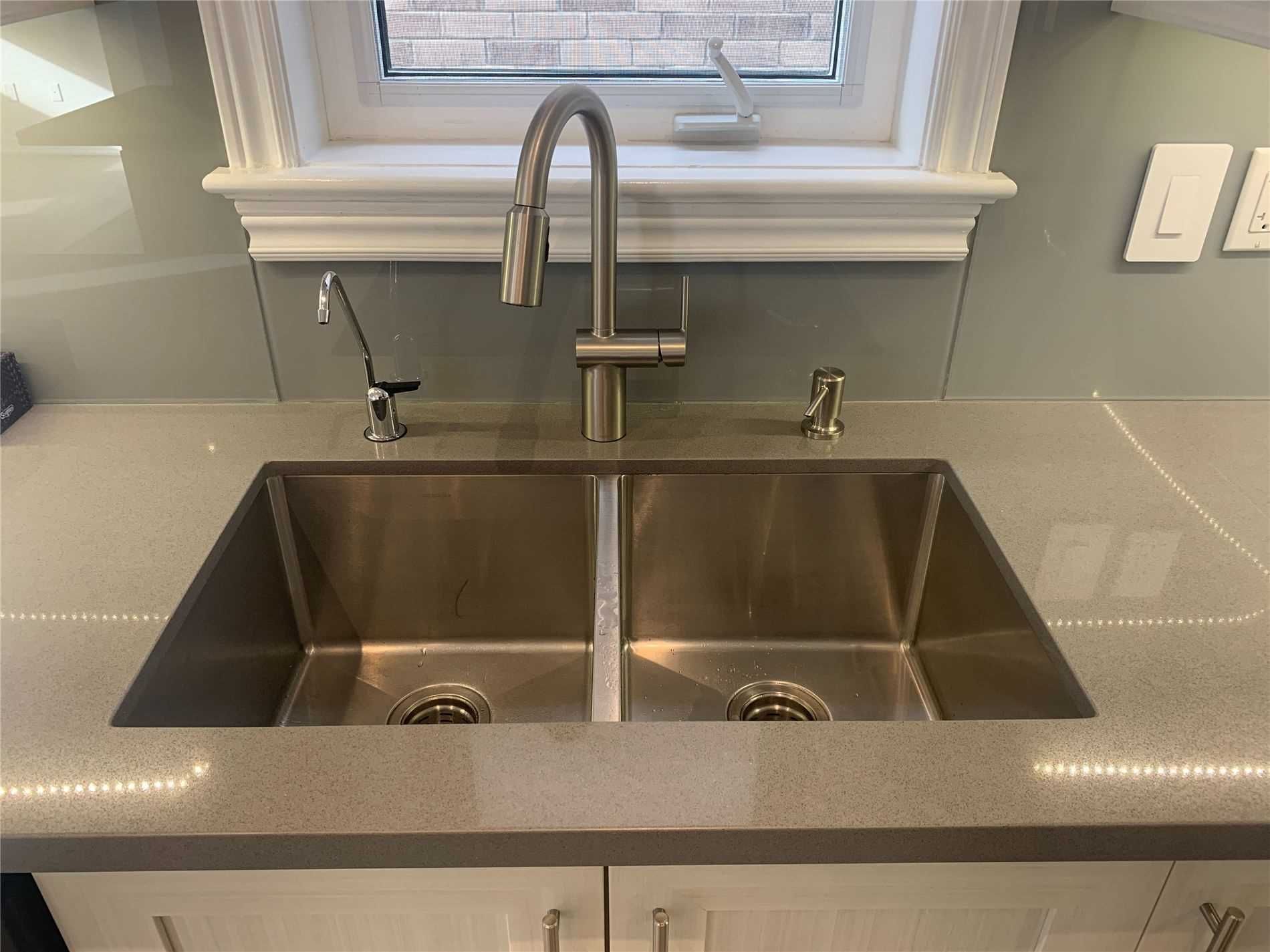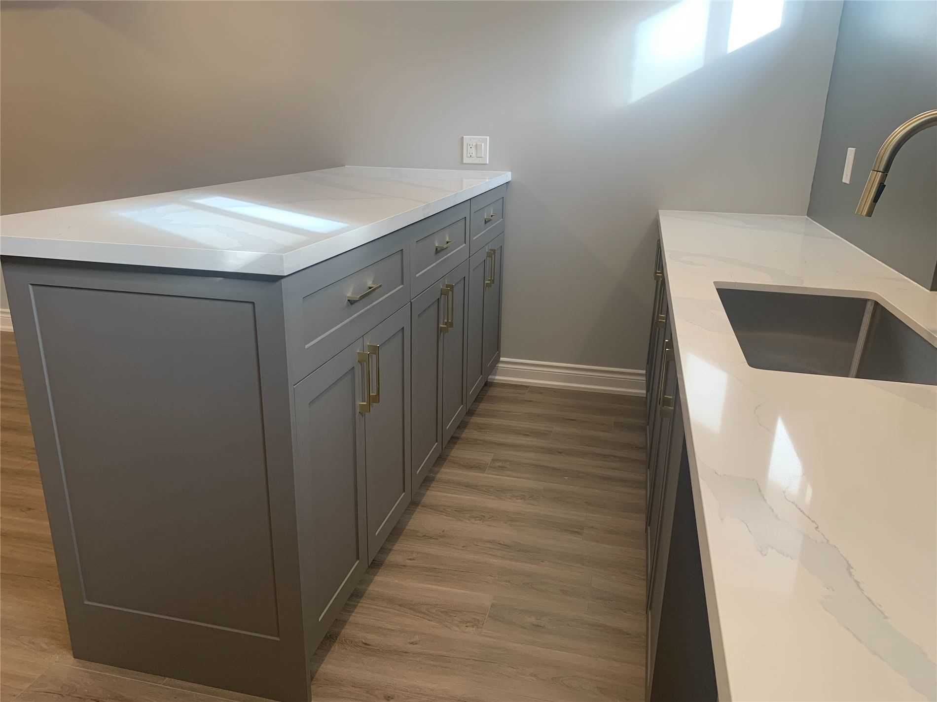 • Renovated kitchen with quartz surfaces and a central island.