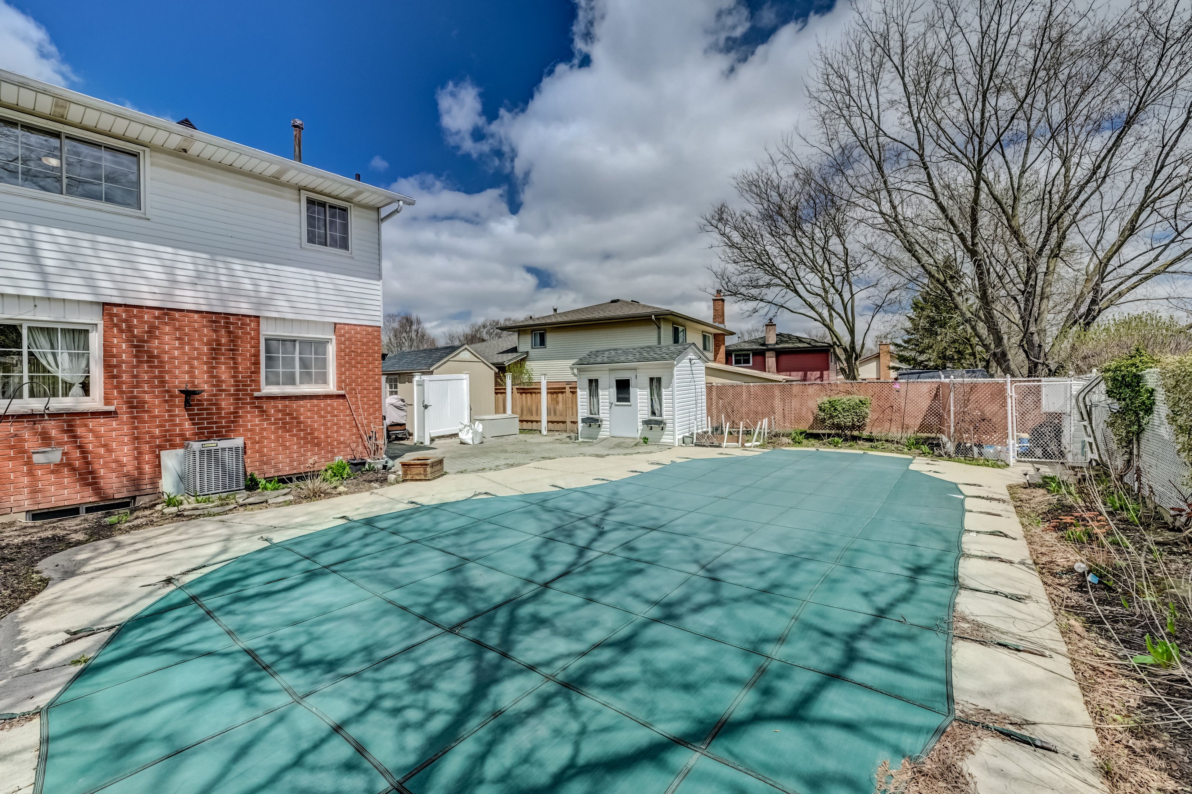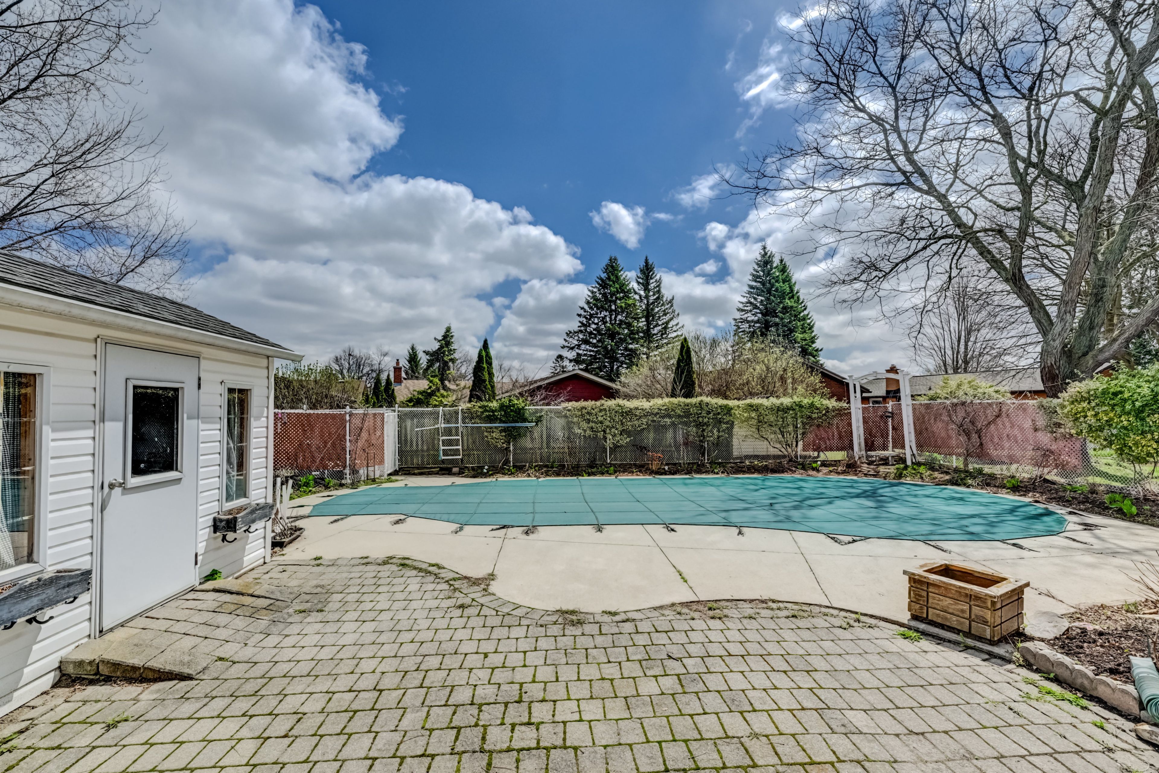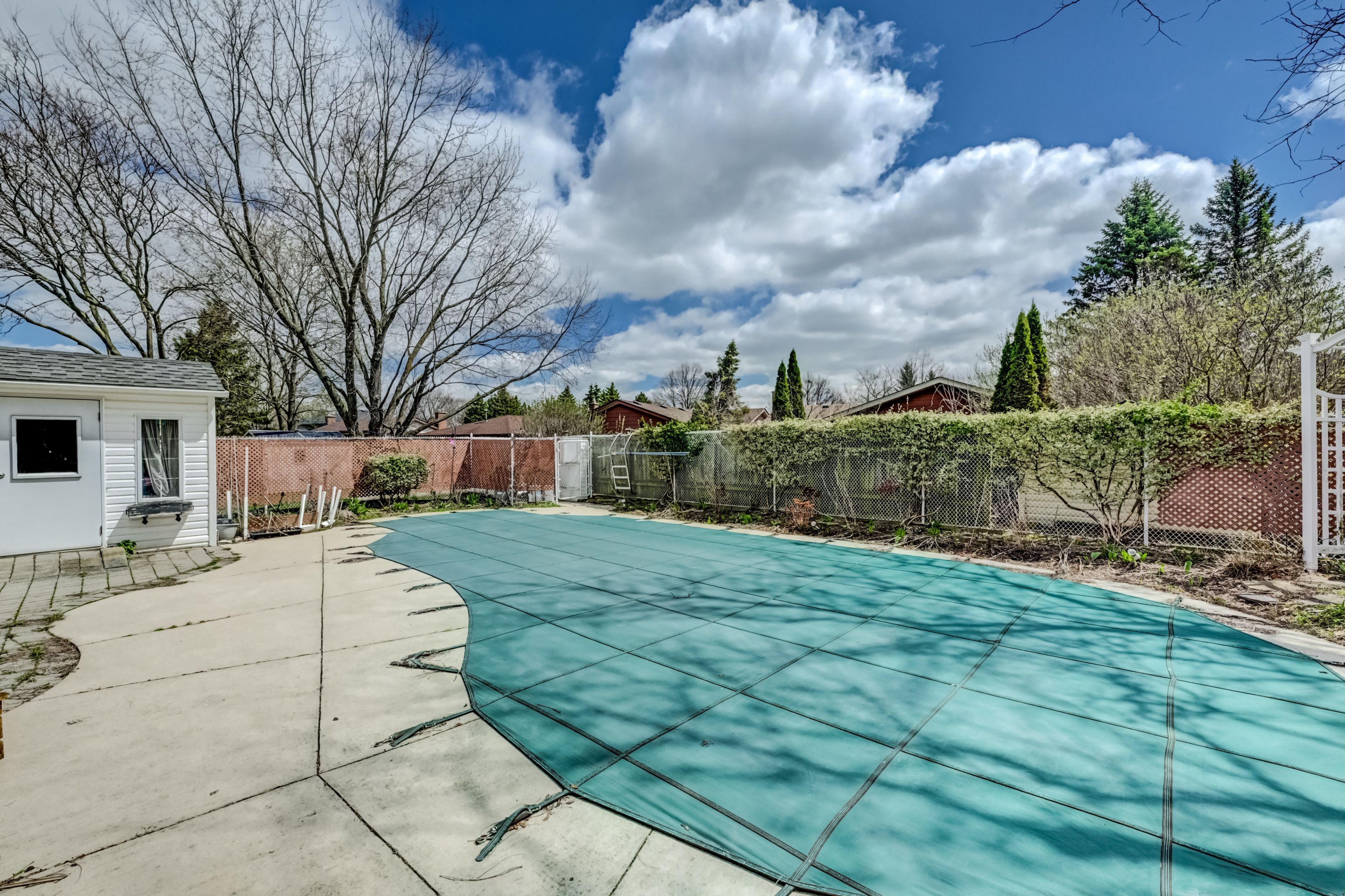 • Backyard with inground pool and low maintenance concrete decking.