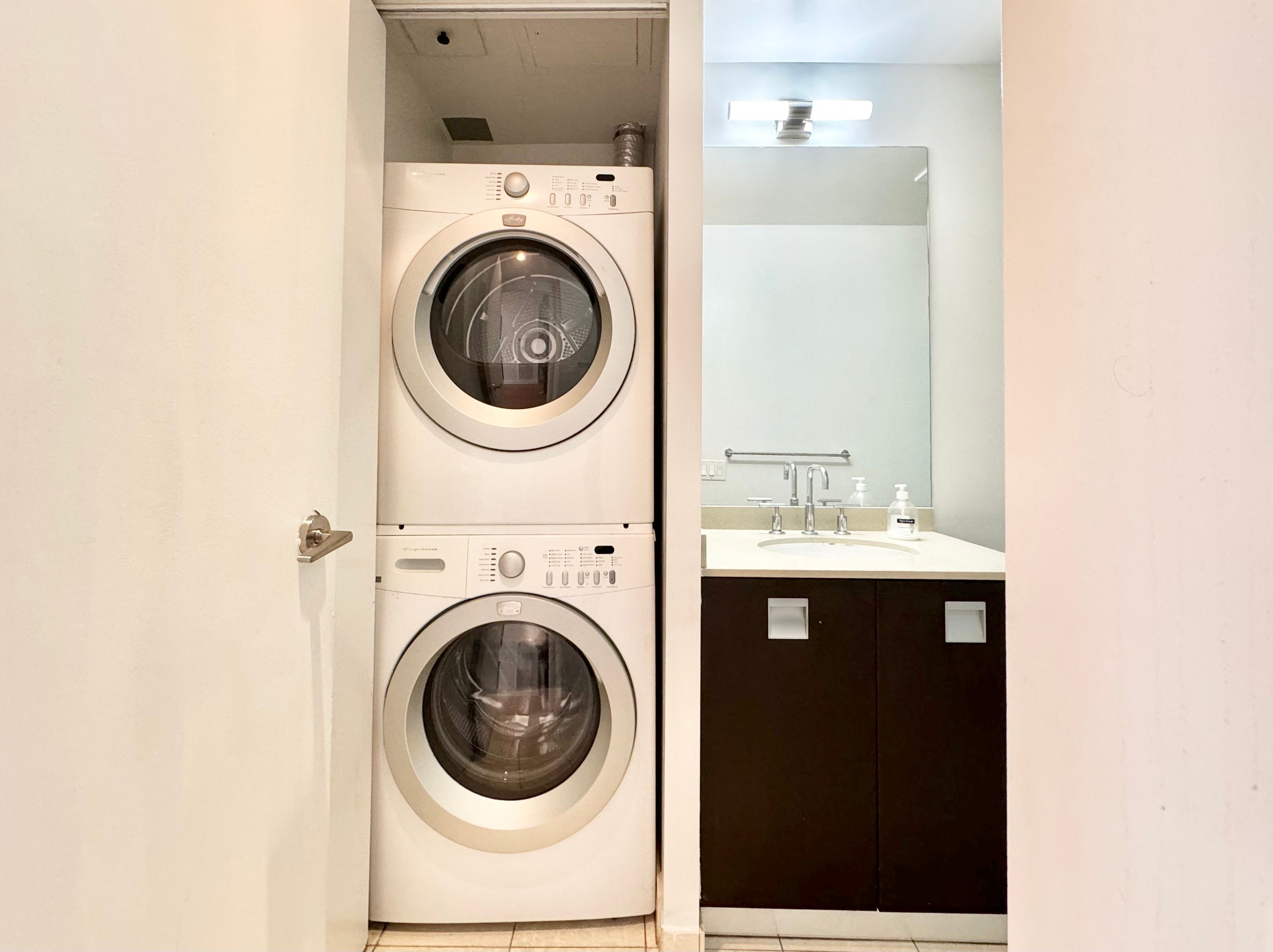 Gorgeous studio suite in the heart of downtown toronto at yonge & bloor. This bright & south-facing suite features open concept layout with 9-ft ceilings & hardwood floor throughout, gourmet kitchen with full-size stainless-steel appliances including new stove & dishwasher, in-suite laundry with new washer and dryer, floor to ceiling windows, large balcony with south view. Amenities include 24-hr concierge, fitness room, party room, outdoor pool & visitor parking. Steps to yorkville, u of t, mtu, ttc, restaurants, shopping & much more!