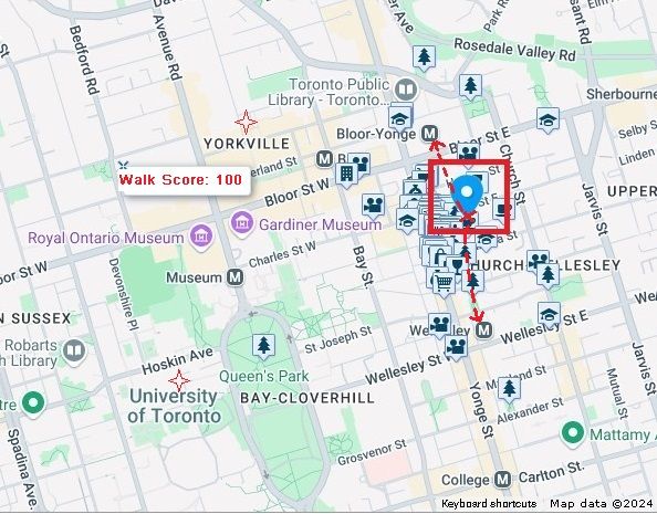 Prime downtown yonge/bloor location with a walk score of 100!! A smart size split two bedrooms, quiet corner suite offers lots of living and work space. It's north/east/south exposures bring in abundant natural light into the suite through floor-to-ceiling window walls that wrap along the entire unit. This unit features 3 patio doors walk-out to a huge 200 sq. Ft. Terrace from the living room, master bedroom and from the 2nd bedroom! This is a highly secured building managed by attentive concierge & 24 hrs security. Building amenities include gym, yoga room, billiard room, cozy party room, kitchen, outdoor pool, outdoor terrace, bbq guest suites, ev charging stations & visitor parkings! Only 5 minuite walk to ttc! Amazing convenience to downtown amenities: univerities, hospitals, shops, restaurant, groceries and many more...