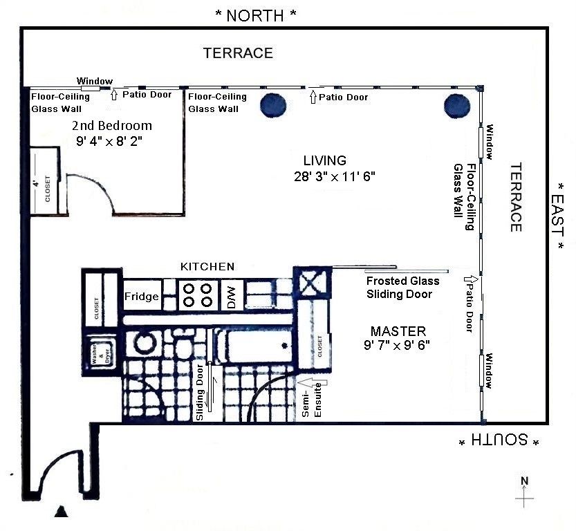 • Bright corner suite with abundant natural light from floor-to-ceiling windows.