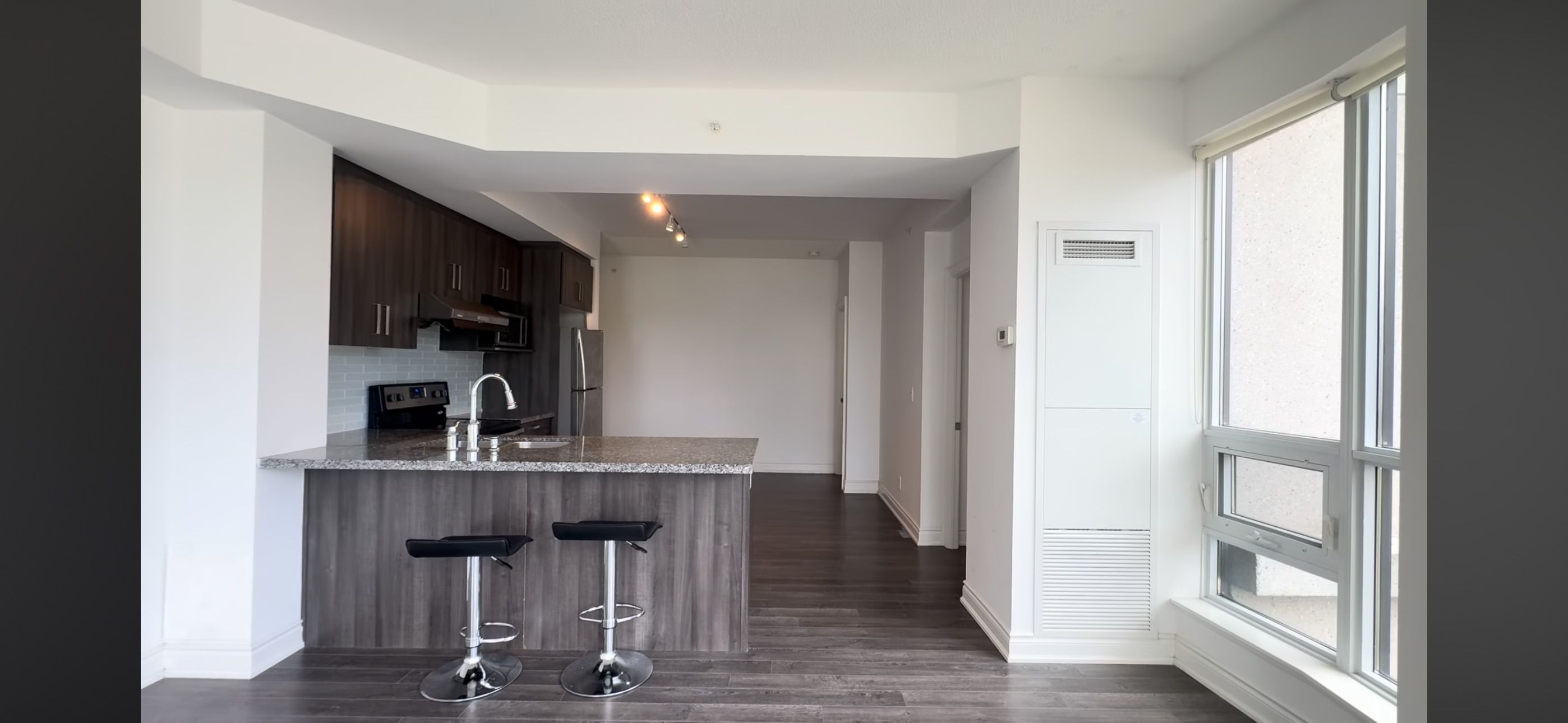 Hwy 7 & warden, *two bed condo , split bedrooms, for lease w/parking**location! Location! Location! This beautiful corner unit is located in prestigious unionville w/walking distance to viva bus, shopping plaza, civic center, restaurant & unionville high school. Open balcony, 9'ceiling, engineering floor t/o. Great amenities: indoor pool, basketball court, car wash, gym etc..