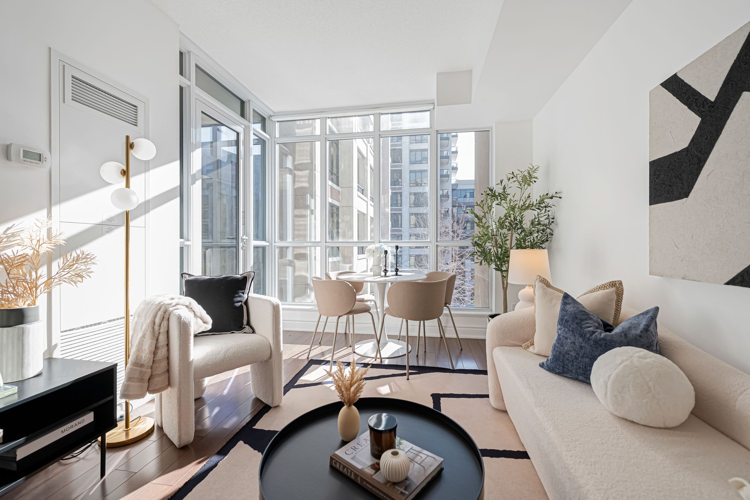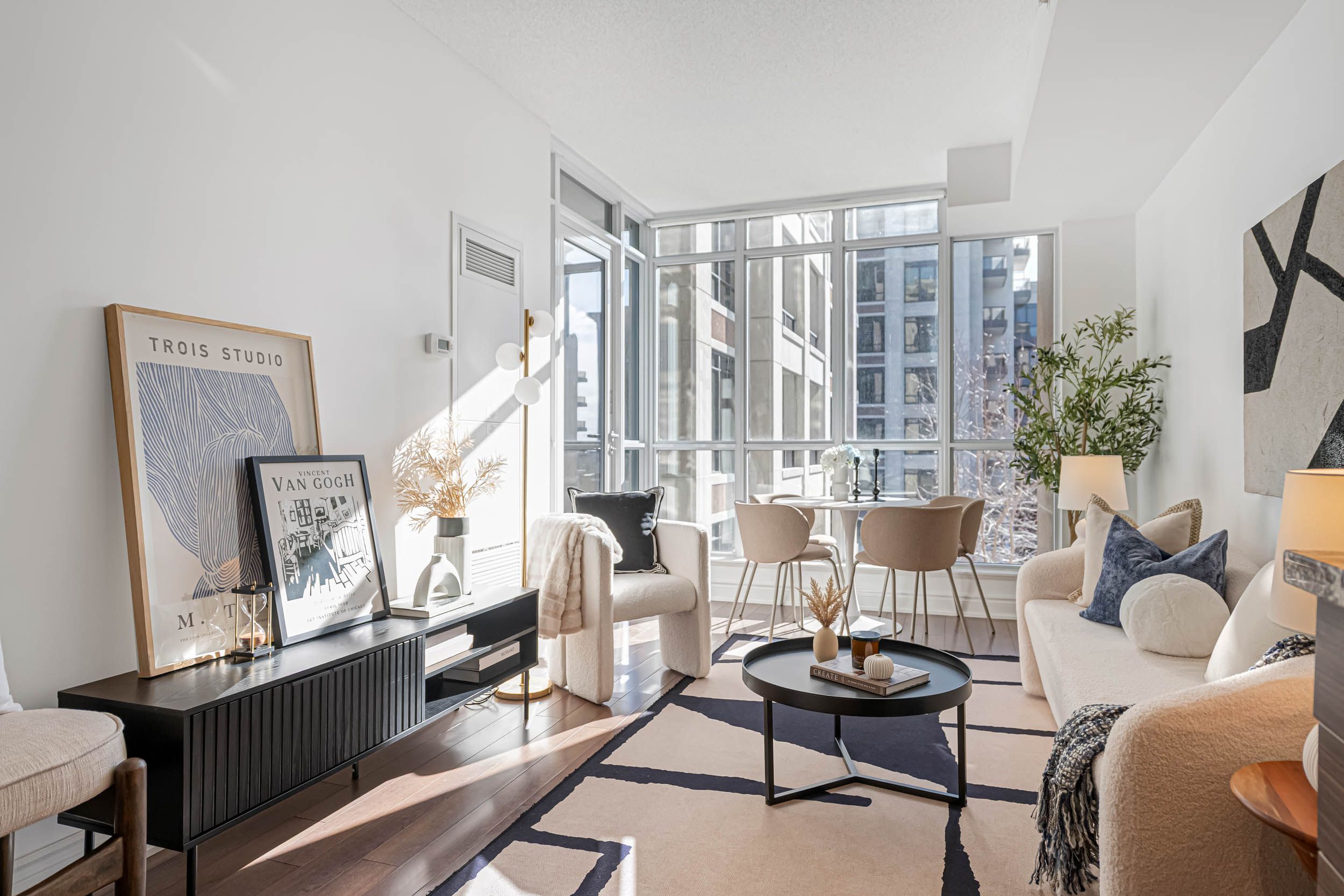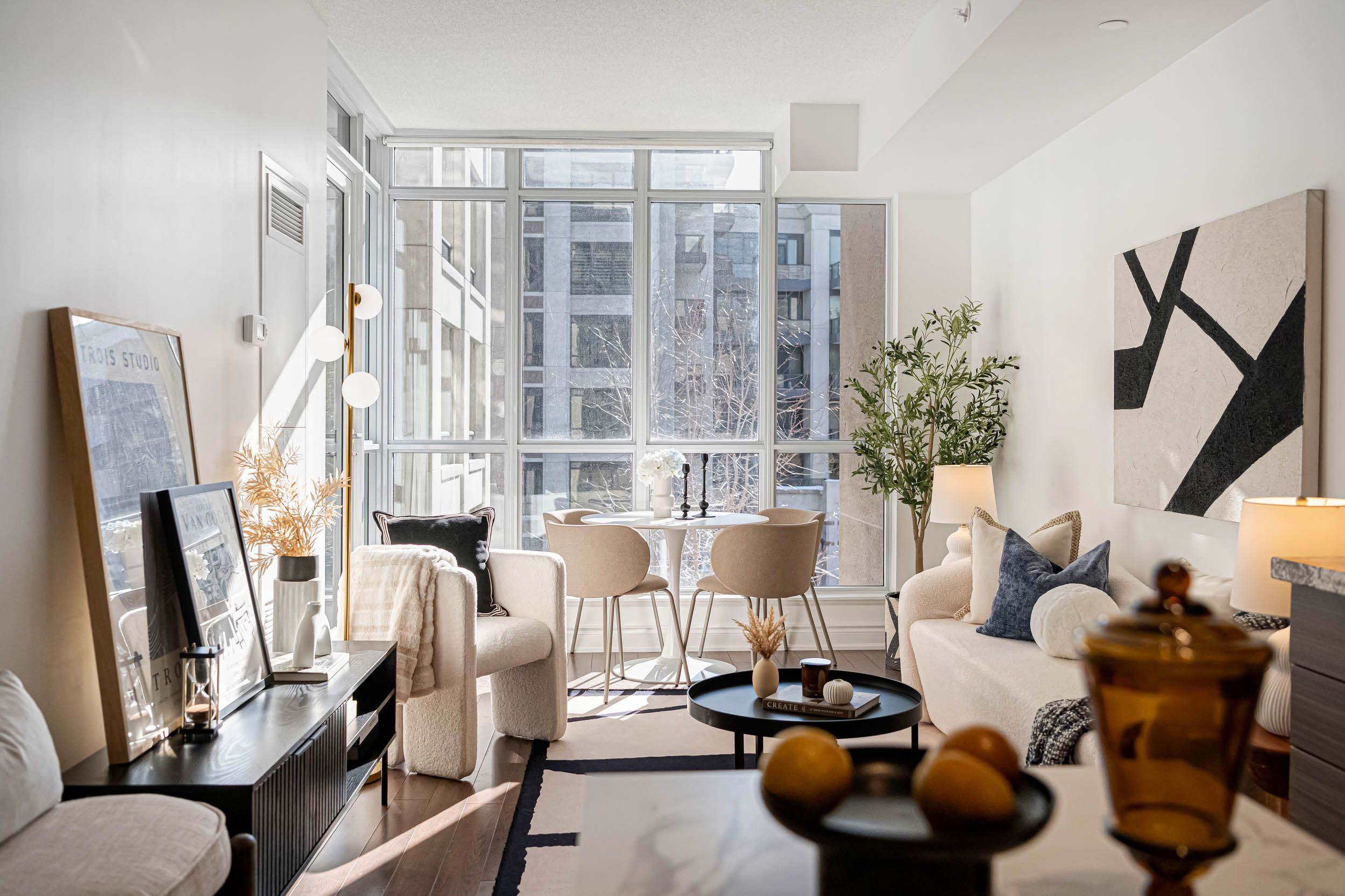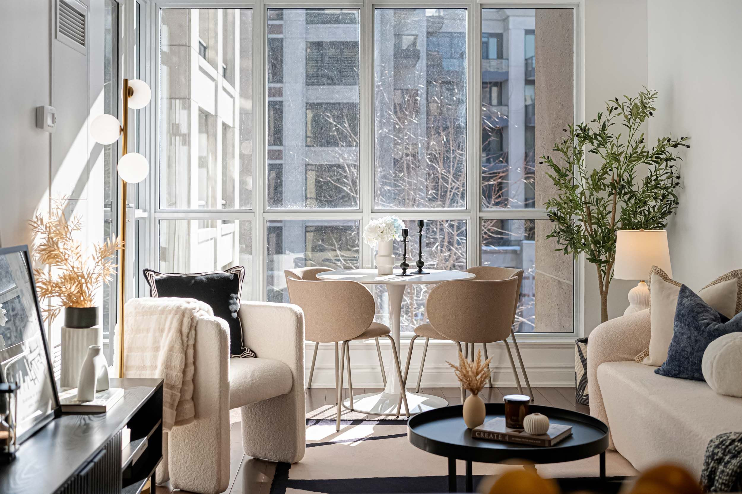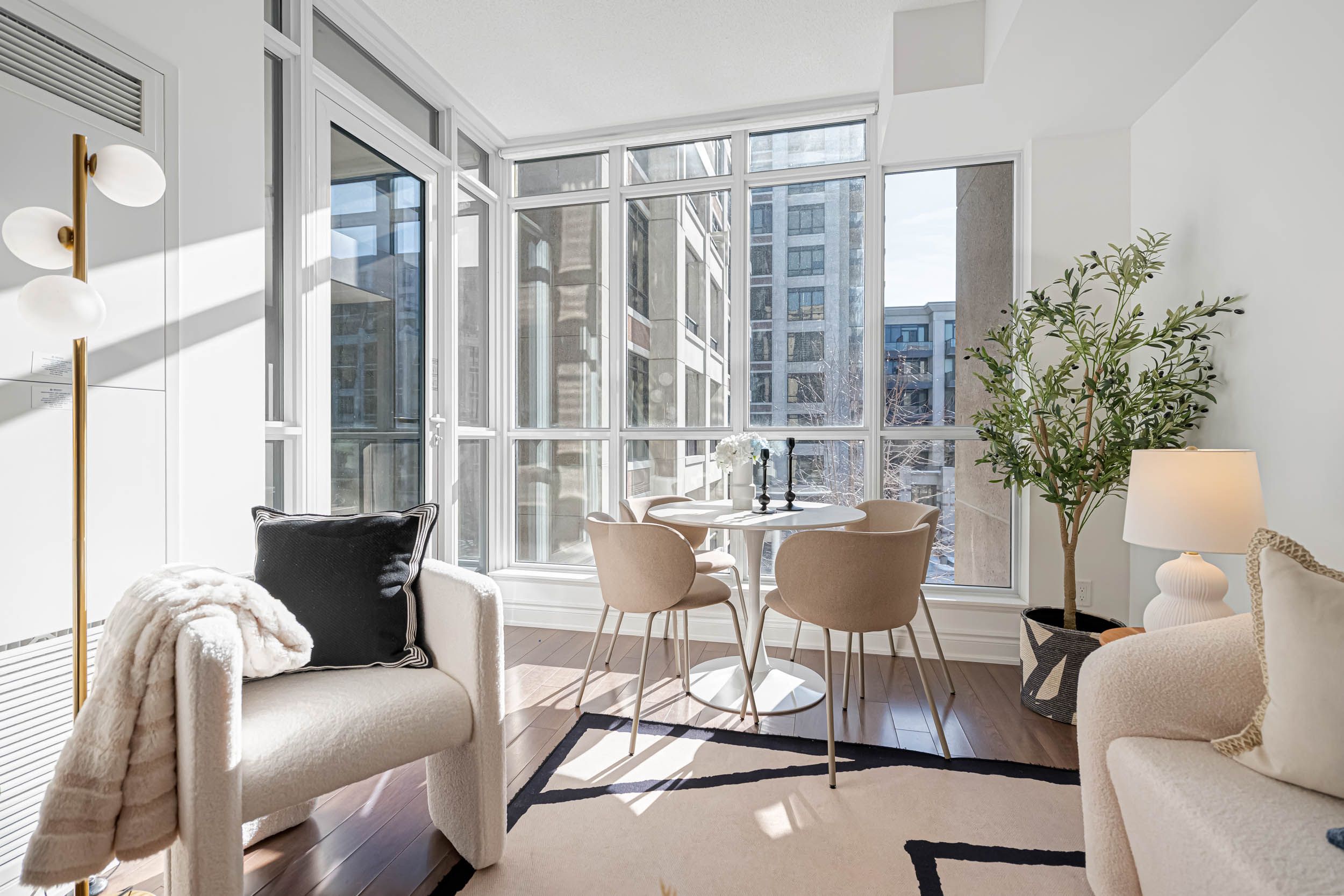 • Spacious 1-bedroom layout with 9-foot ceilings for a luxurious feel.