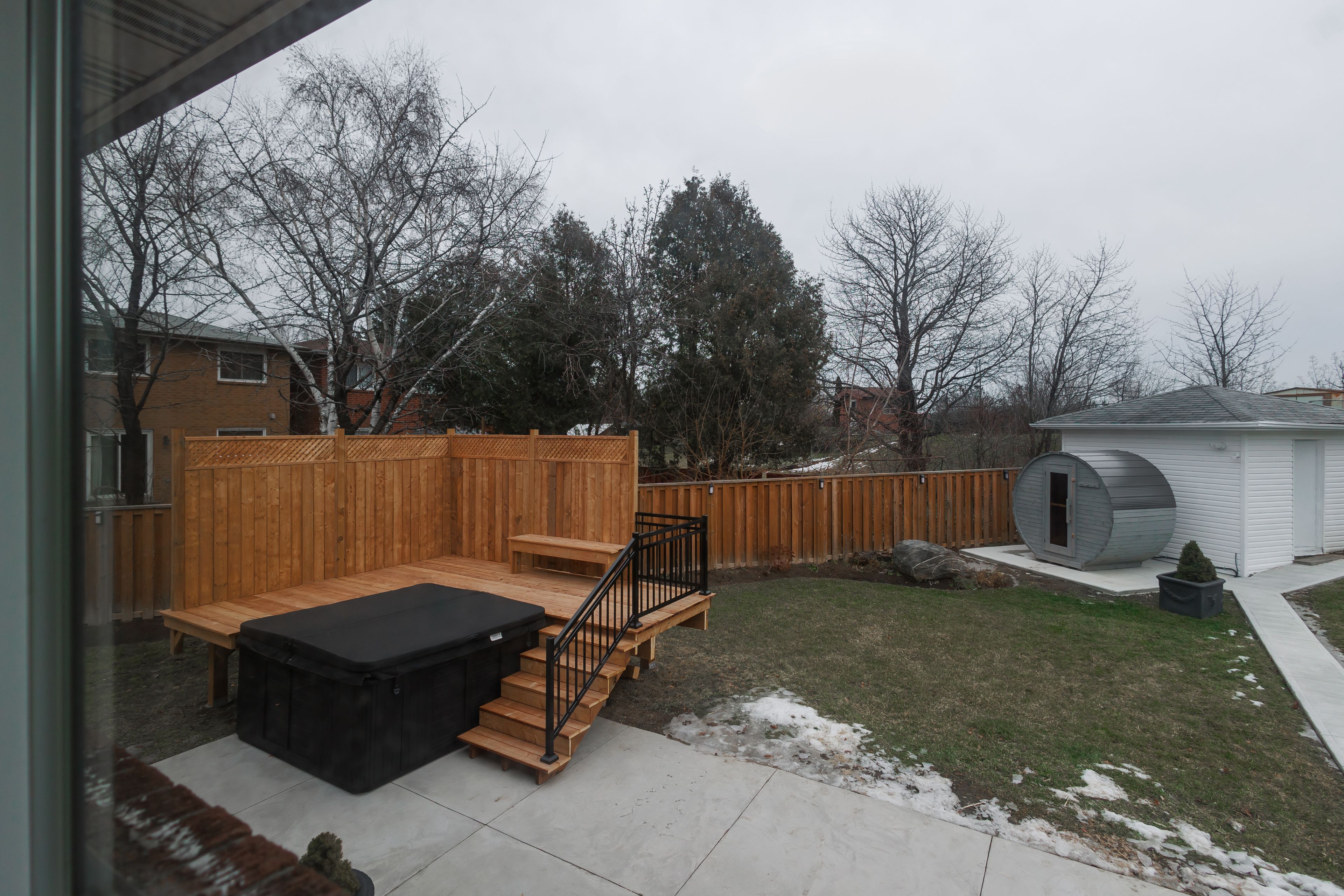 • Amenities include heated indoor gym, outdoor sauna, and hot tub.