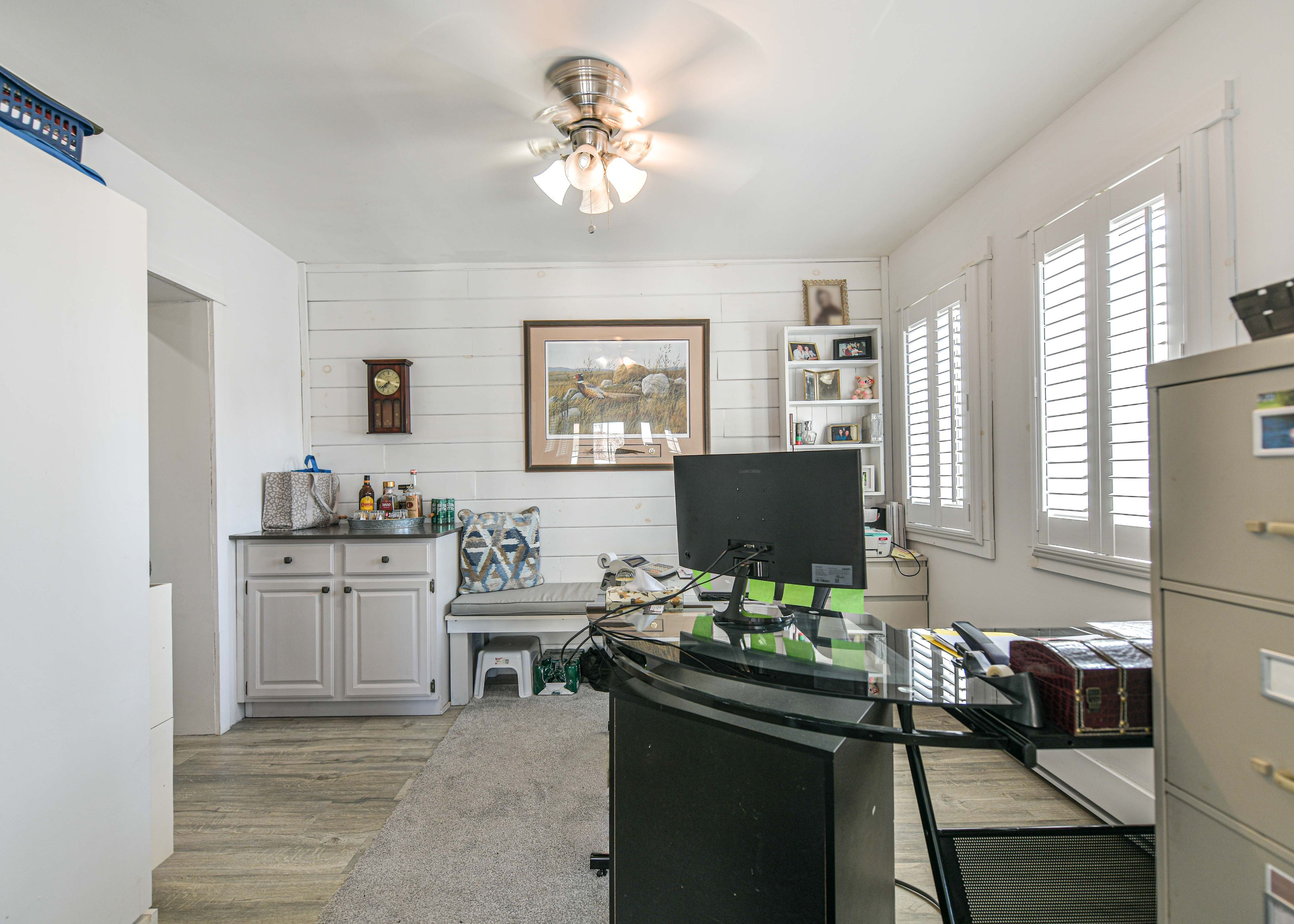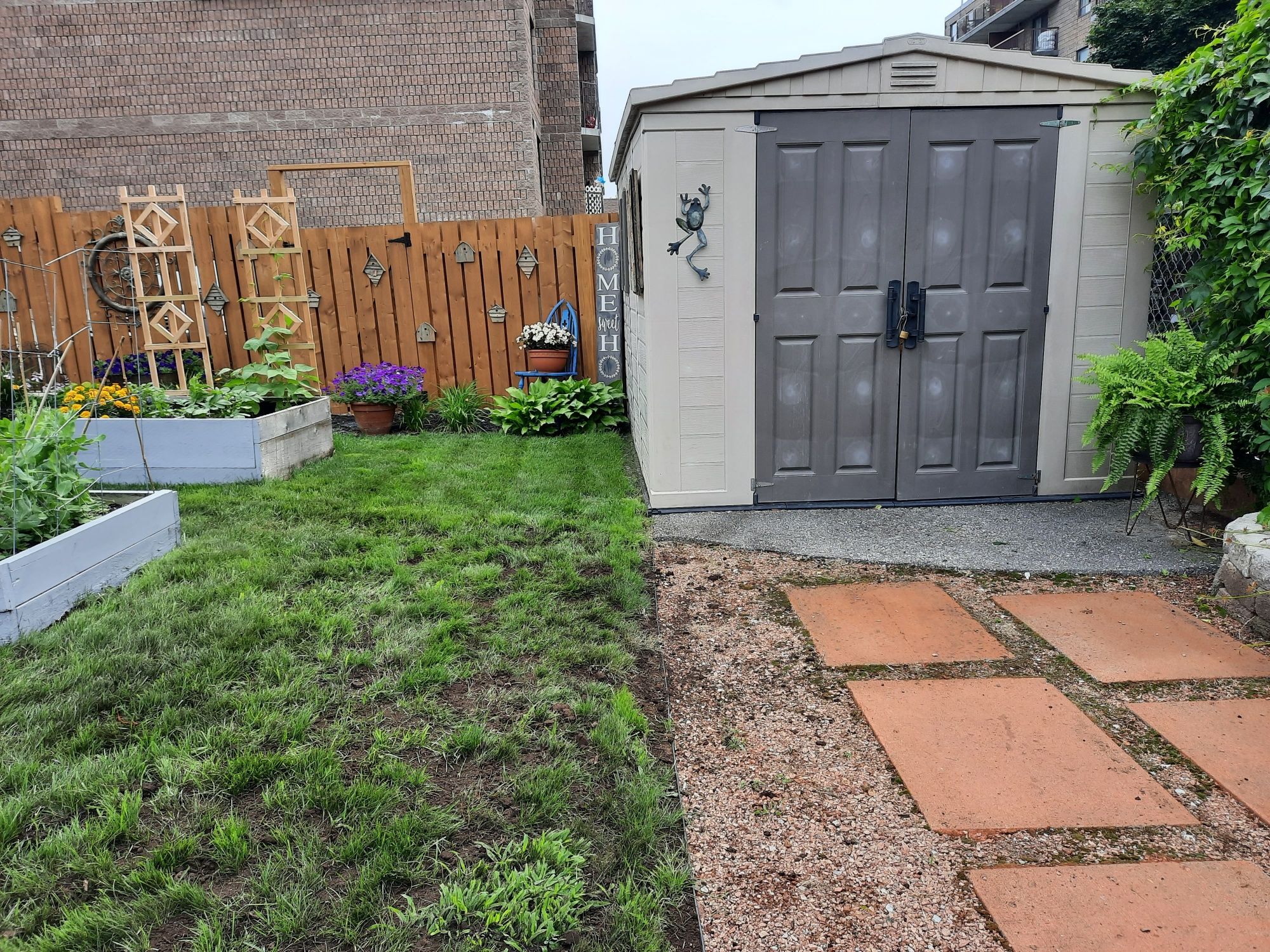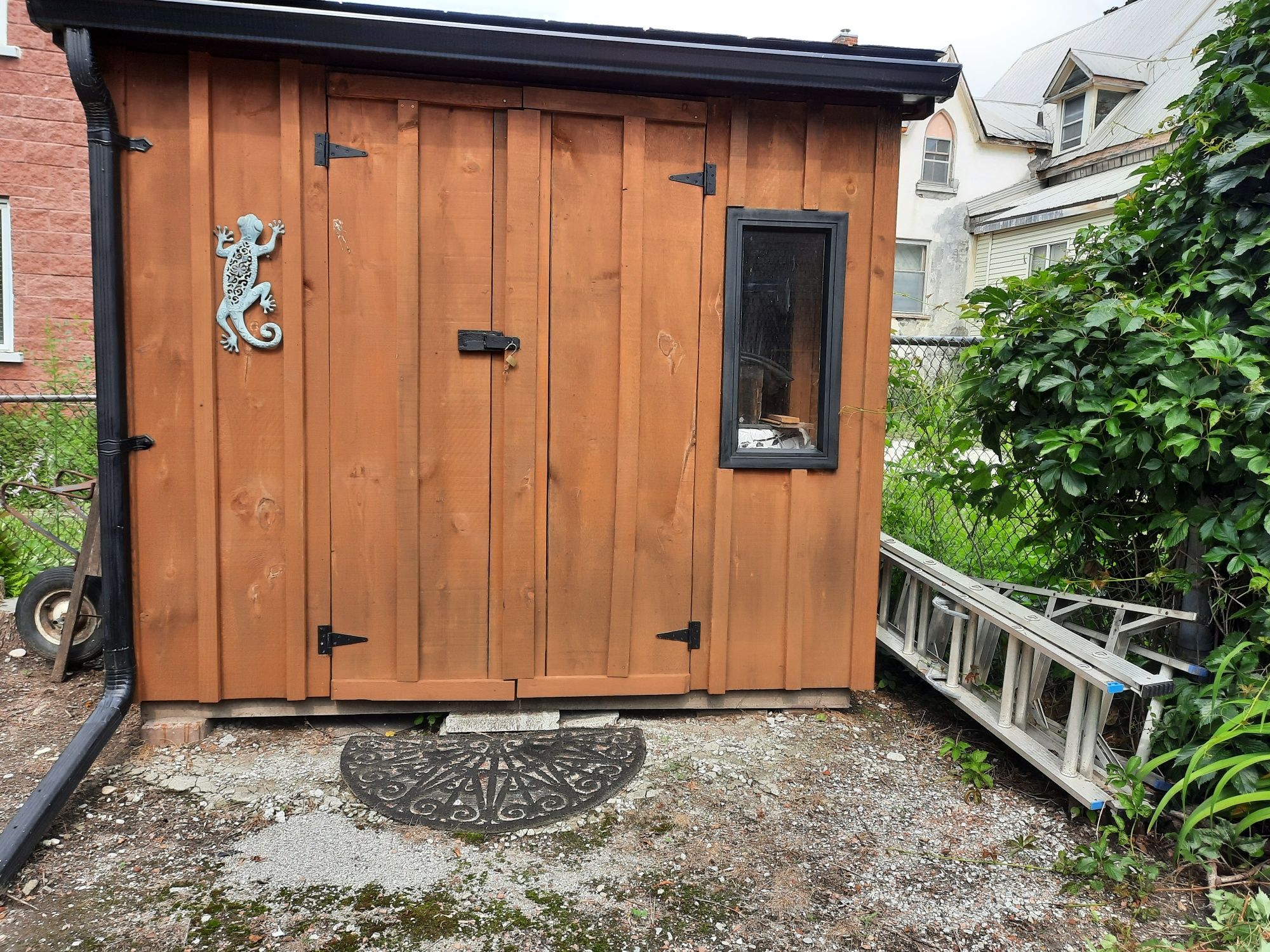 • Fenced backyard with storage sheds adds practicality for tenants.