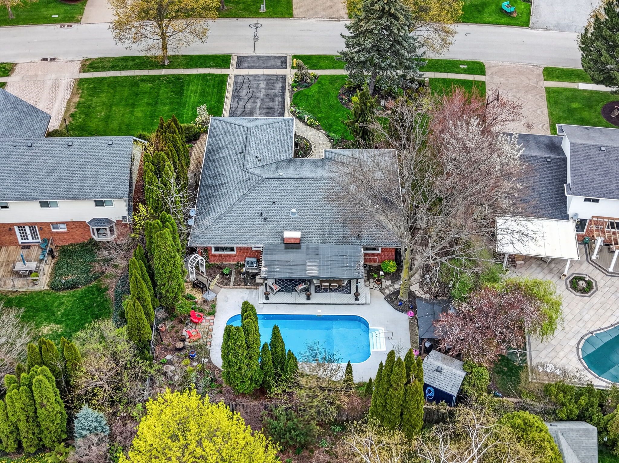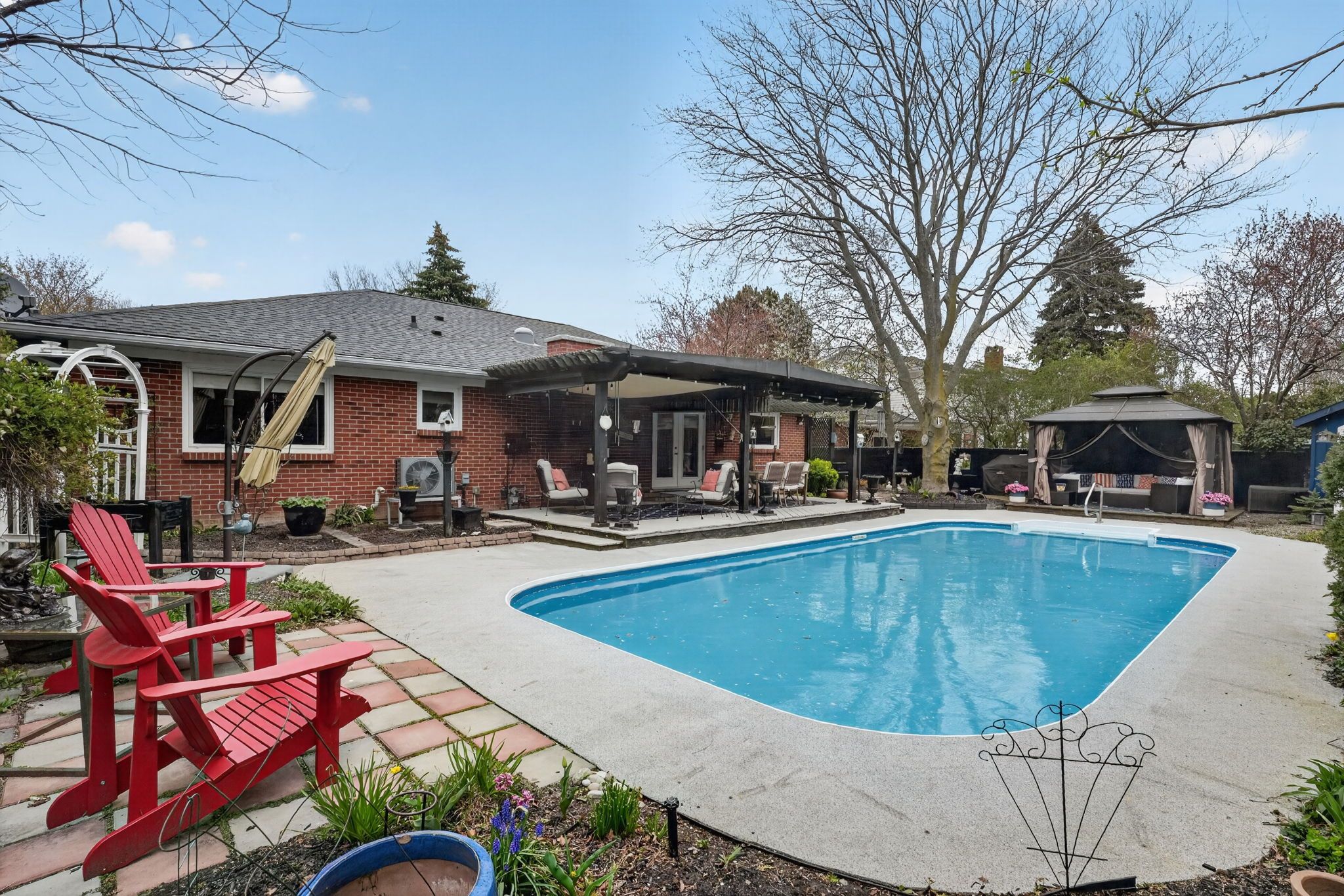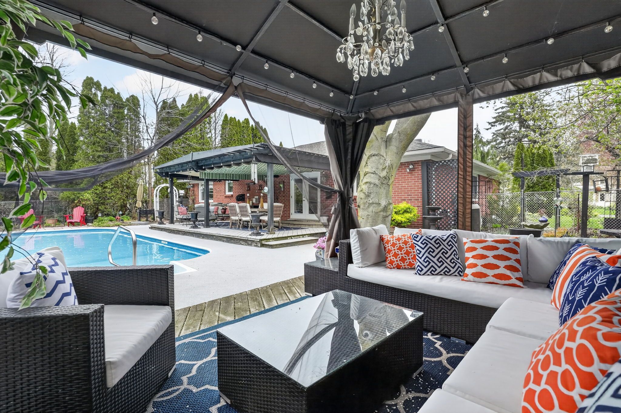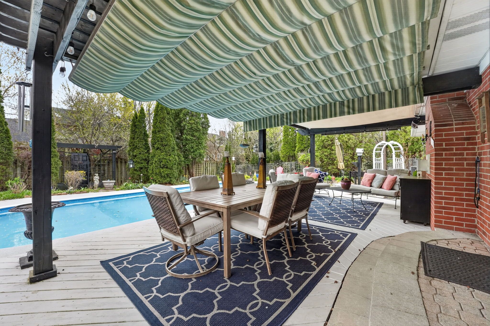 • Backyard oasis features a covered deck and inground pool.