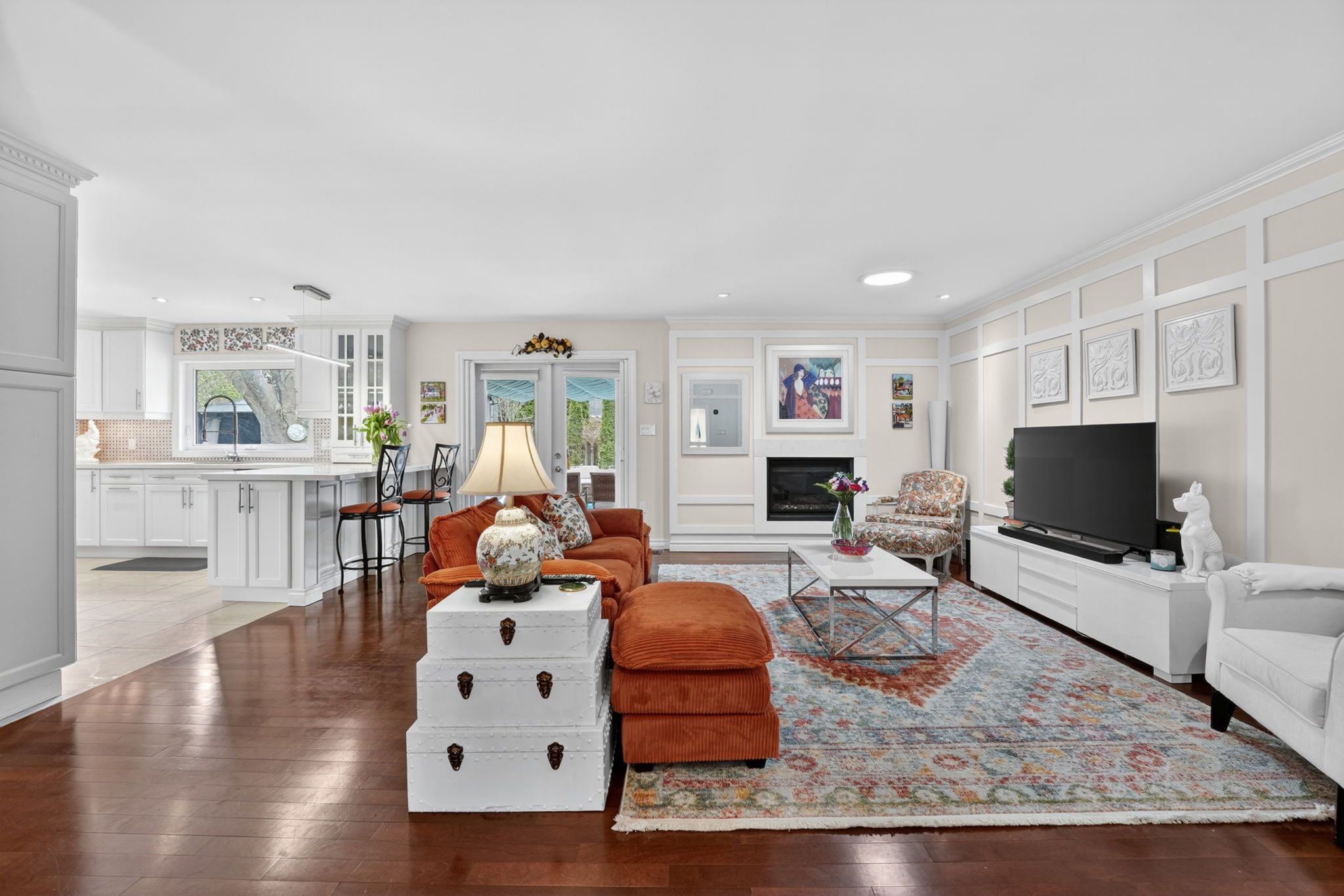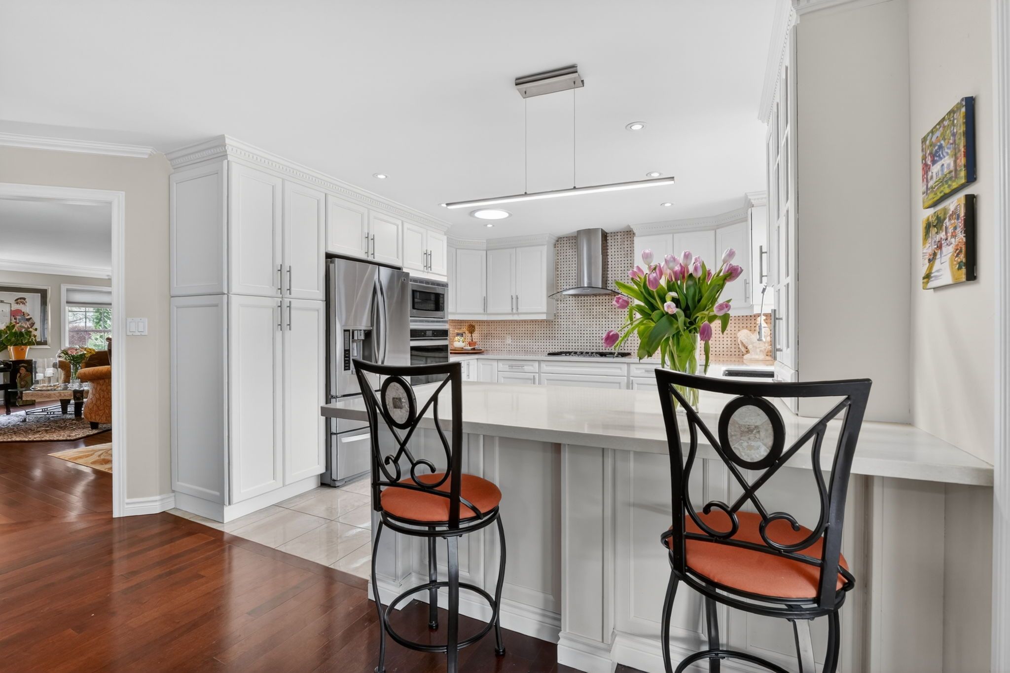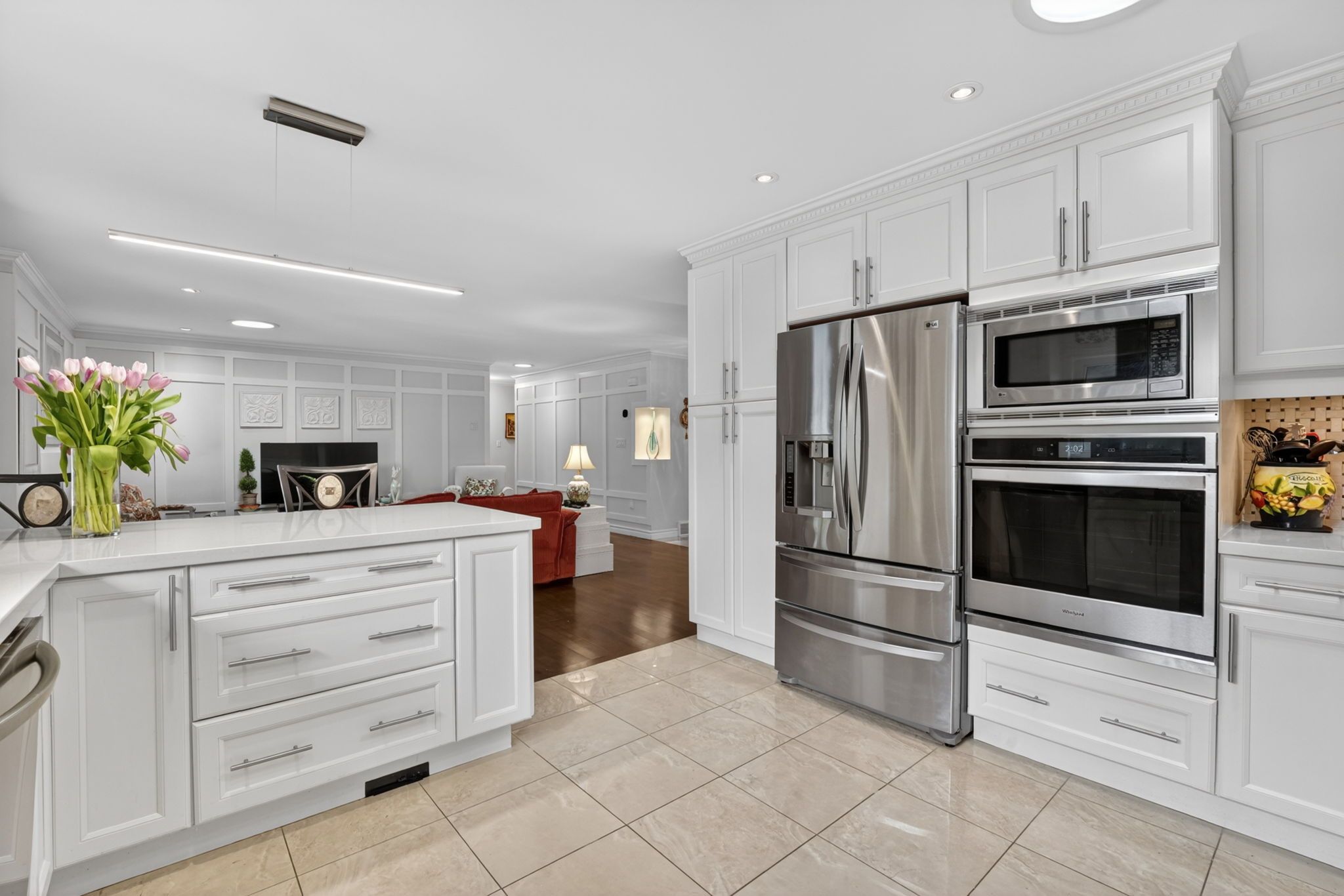 • Updated kitchen with high-end appliances and modern finishes.
