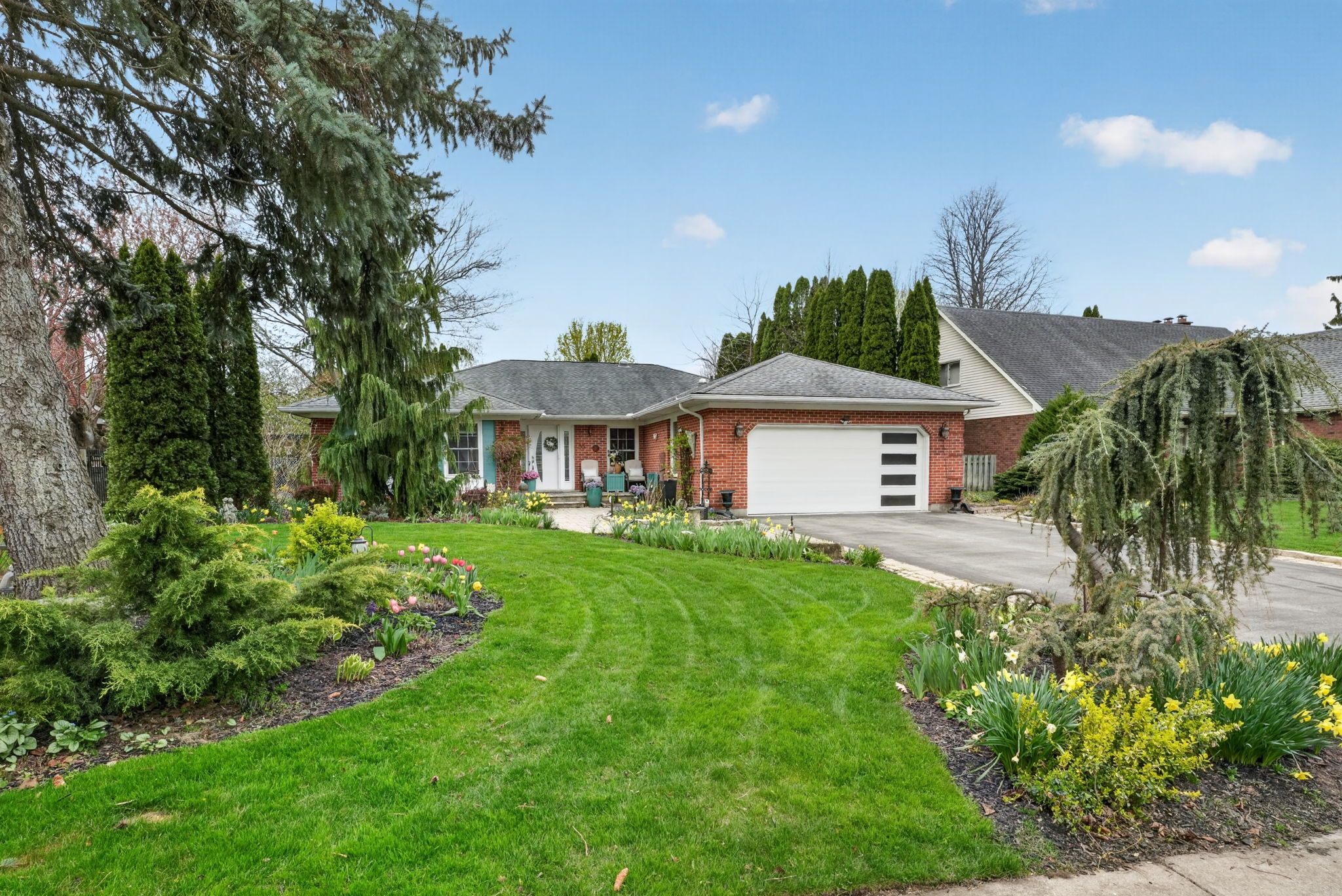 Beautifully appointed bungalow in desirable garrison village! Stunning front yard with low-maintenance perennial plantings that provide beauty and colour in spring, summer and fall! Spacious double driveway and double car garage. Located on colonel butler crescent, arguably one of the most beautiful streets in niagara-on-the-lake, this home showcases pride of ownership! Welcoming front entry leads into oversized foyer with gleaming tiled floors. Tastefully decorated, the living room has several windows overlooking the stunning front gardens and side of the home and showcases a refined interior- from hardwood floors to wall coverings and blends seamlessly with the formal dining room, ideal for entertaining guests around the table. The updated kitchen offers floor to ceiling cabinetry and high-end stainless appliances, a modern farmhouse sink, all surrounded by tasteful backsplash. Fantastic family room off the kitchen with focal fireplace, strategically place pot lights and custom millwork on walls. Attractive french doors lead out into the backyard oasis, with several covered decks and pergolas. Fully updated 16x32' inground pool with newer liner, pump and stairs. Back inside, the primary bedroom suite offers privacy and serenity. Beautiful wall detailing and hardwood floors. Large double closets and 4-piece ensuite retreat offering vanity with double sinks and make-up counter, oversized step-in shower with raindrop showerhead. Second bedroom is light and airy. Large family bath with soaker tub and vanity with modern raised sink. Basement is completely updated from the widened staircase to the generous guest suite with full bath with oversized vanity and tasteful décor. Huge family room offers multiple entertaining spaces, ideal for holiday gatherings where everyone can hang out together! Wine cellar, utility room and office complete this level. Walking distance to shopping, dining and medical needs. Close to theatre, boutiques, fine dining, wineries and breweries!