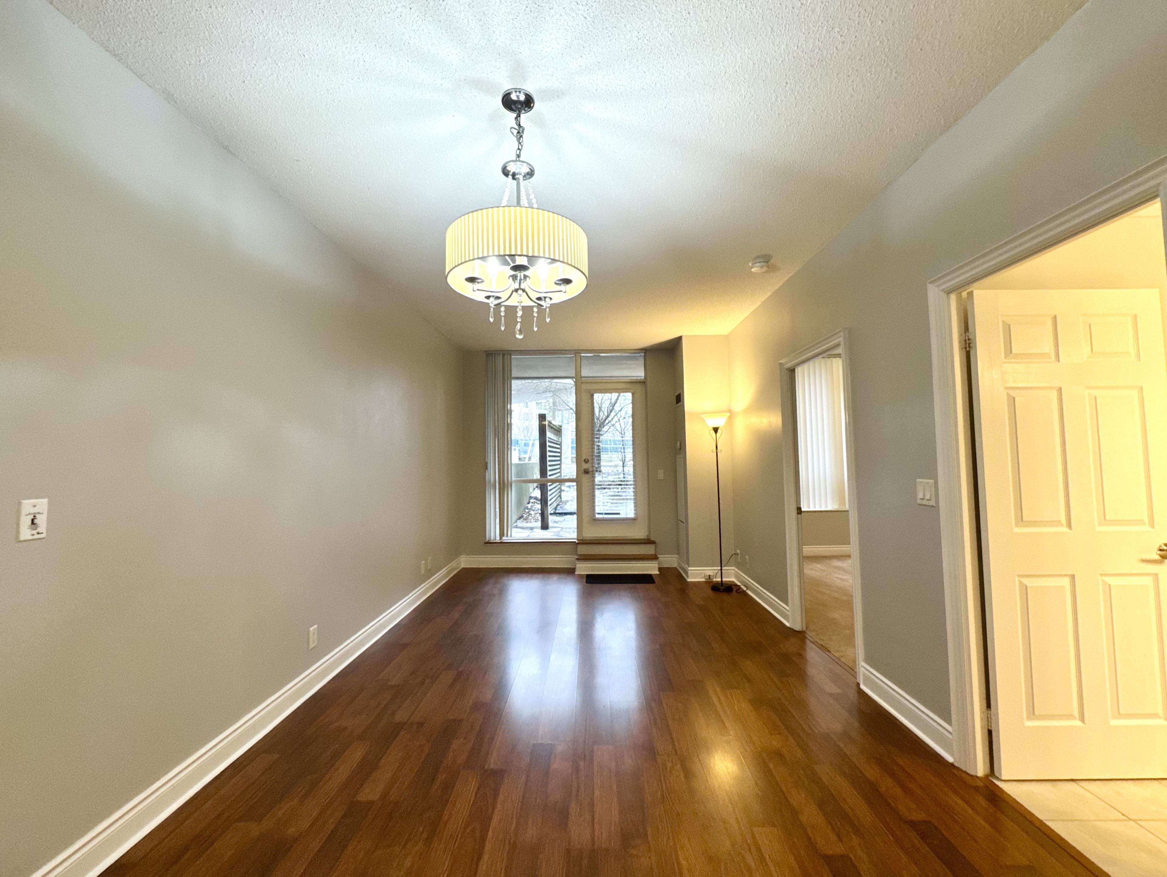 Welcome to circa i by renowned builder tridel. Rarely offered, this unique ground-floor 1-bedroom suite features two separate entrances for exceptional convenience. Enjoy 9-foot ceilings throughout, creating a bright and airy living space filled with natural light. The unit offers both easy interior access and direct outdoor entry. Nestled in a quiet and highly sought-after unionville neighbourhood, the property is surrounded by several top-rated schools. Ideally located with all of life's essentials within a 3-km radius, including viva transit, unionville go station, major highways, grocery stores, restaurants, shopping centres, and medical services. Residents enjoy a full suite of premium amenities, including 24-hour concierge, indoor pool, fitness centre, sauna, and party room. Heat and water are included in the lease, along with one locker and a parking space accommodating two vehicles. This exceptional location truly has it all.