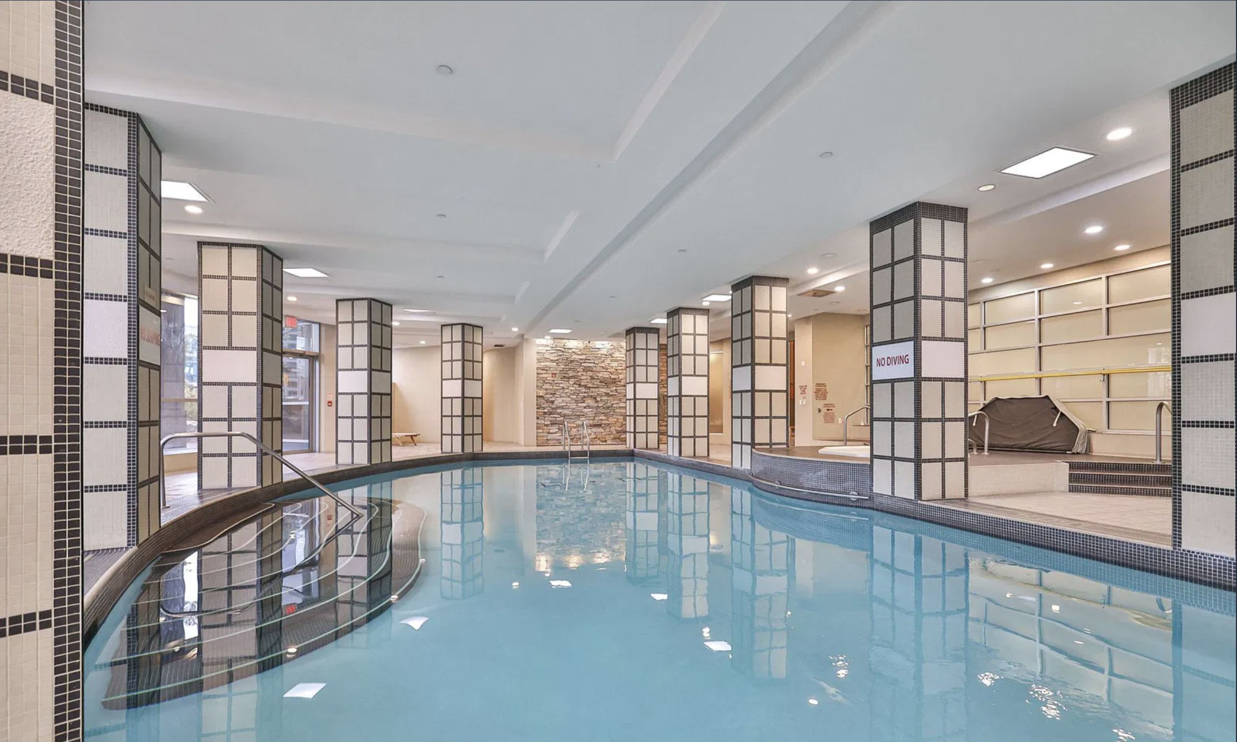 • Building amenities include a pool, concierge, and guest suites for convenience.