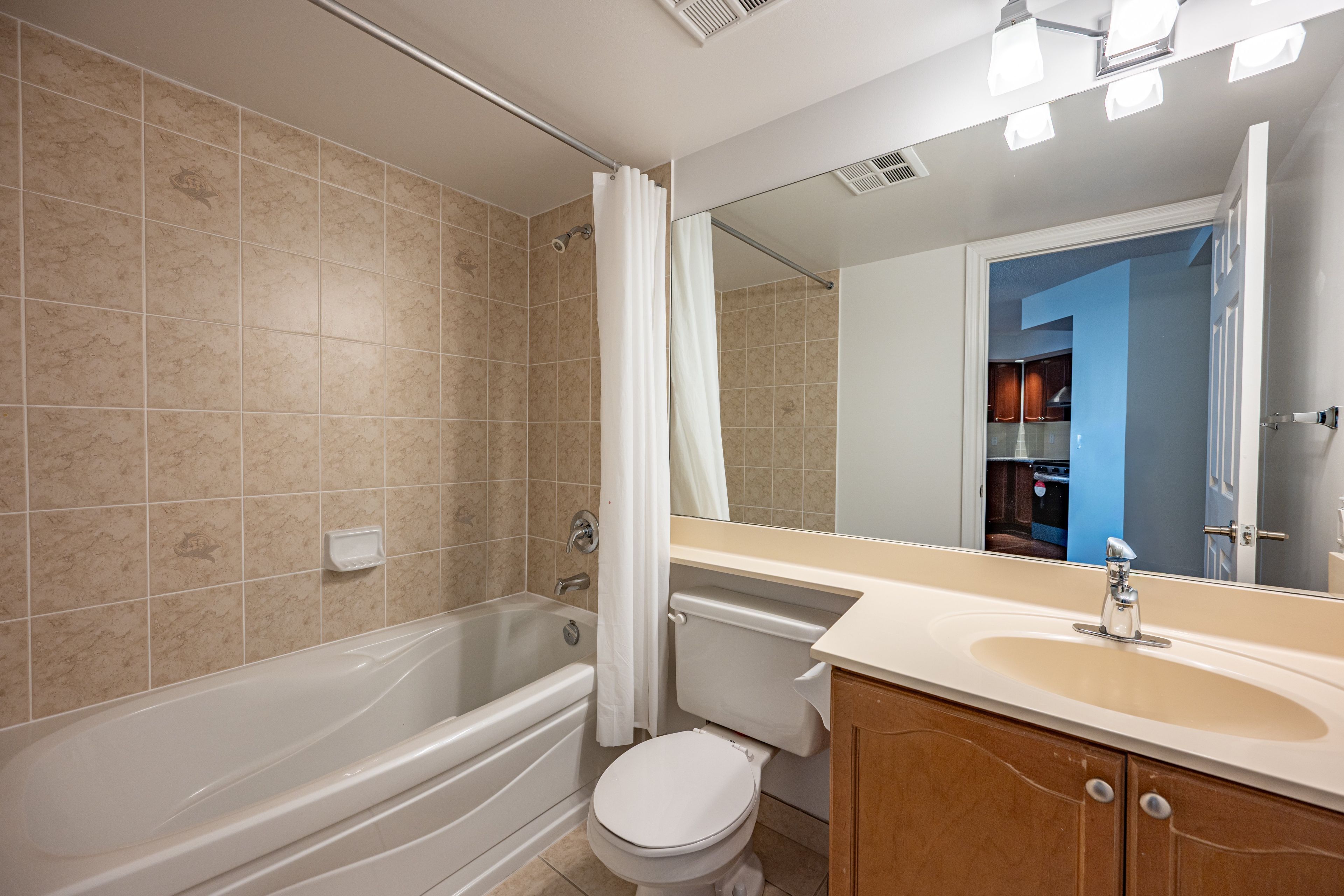• Luxury condo with two split bedrooms and a den, offering space and privacy.