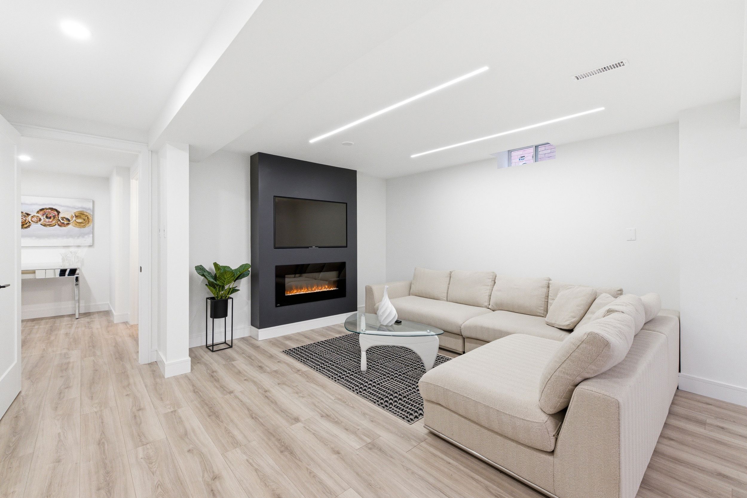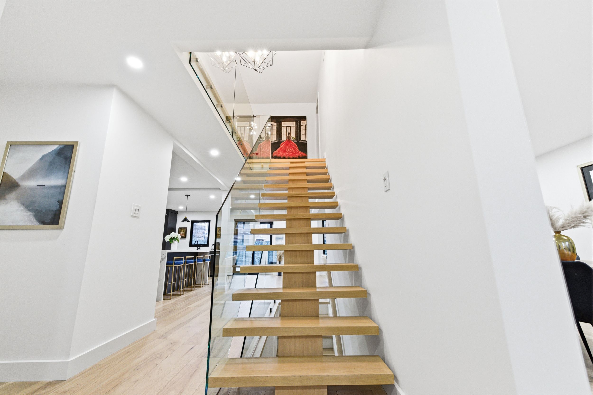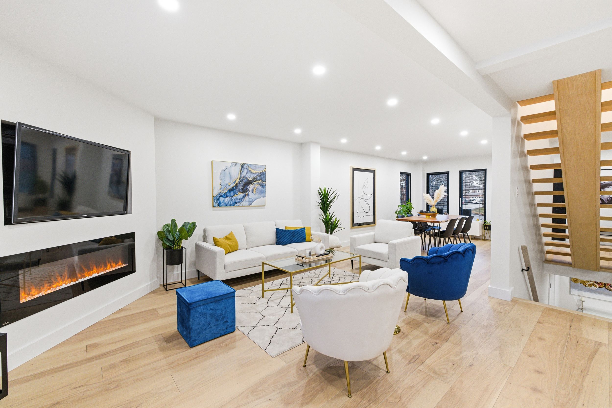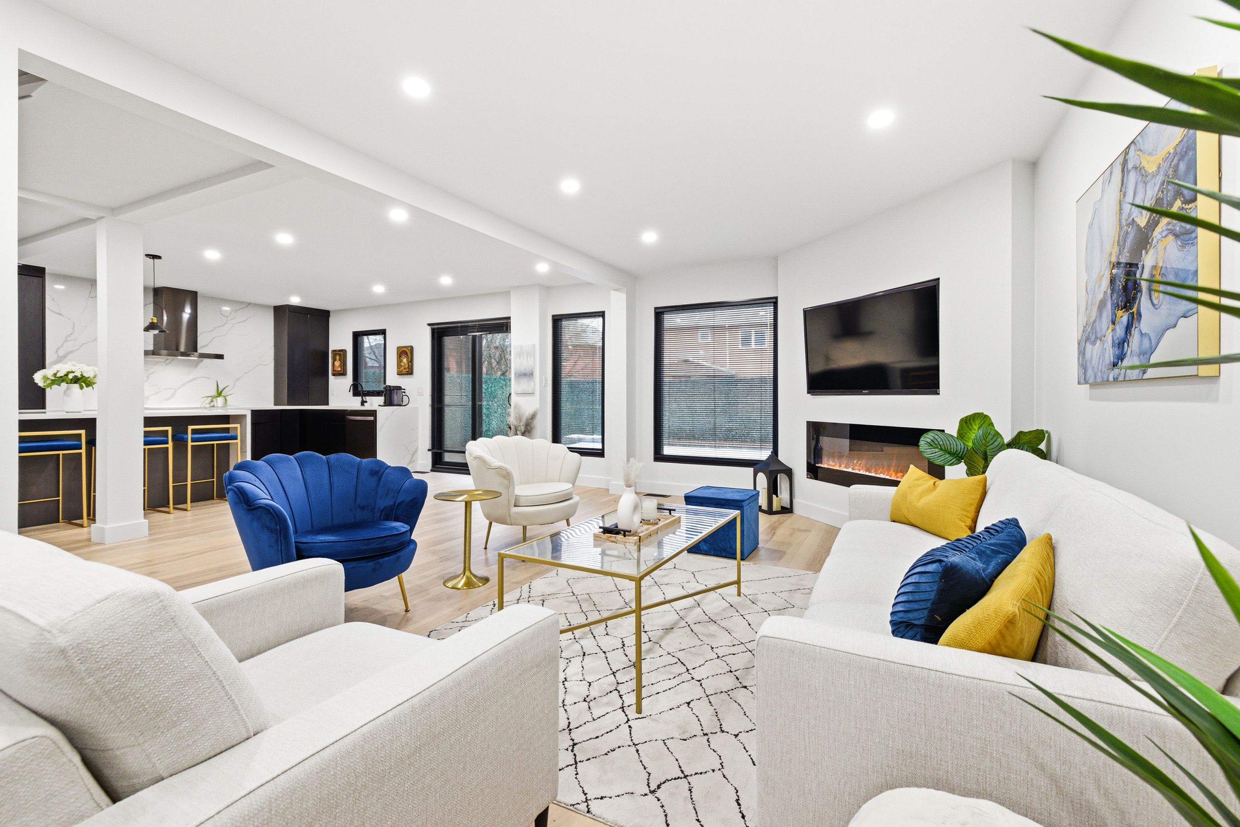 Meticulously renovated from top to bottom in 2022, this exceptional residence is a showcase of modern design and refined living. A striking custom floating staircase with a sleek glass railing sets the tone upon entry-an architectural statement that immediately defines the home's elevated aesthetic. Thoughtfully reimagined with no detail overlooked, the property features all-new windows and doors (2022), wide-plank oak hardwood flooring on the main and upper levels, and elegant electric fireplaces that add warmth and ambiance throughout. At the heart of the home, the designer kitchen impresses with premium appliances, quartz countertops and backsplash, and a dramatic waterfall island-perfectly suited for both everyday living and upscale entertaining. The fully finished basement (completed in 2022), offers additional living space with a second fireplace, ideal for relaxing or hosting in style. Upstairs, the primary suite provides a private retreat, complete with a spa-inspired ensuite featuring luxurious heated floors, while the remaining bathrooms have been tastefully upgraded with contemporary finishes. Outdoors, enjoy a newly paved asphalt driveway (2024) and a beautifully designed backyard oasis featuring a pool installed in 2023 with a new liner-perfect for summer enjoyment. With major systems already updated, including furnace and a/c (2016) and roof (approx. 2016), this turnkey home delivers a rare combination of design, quality, and lifestyle.