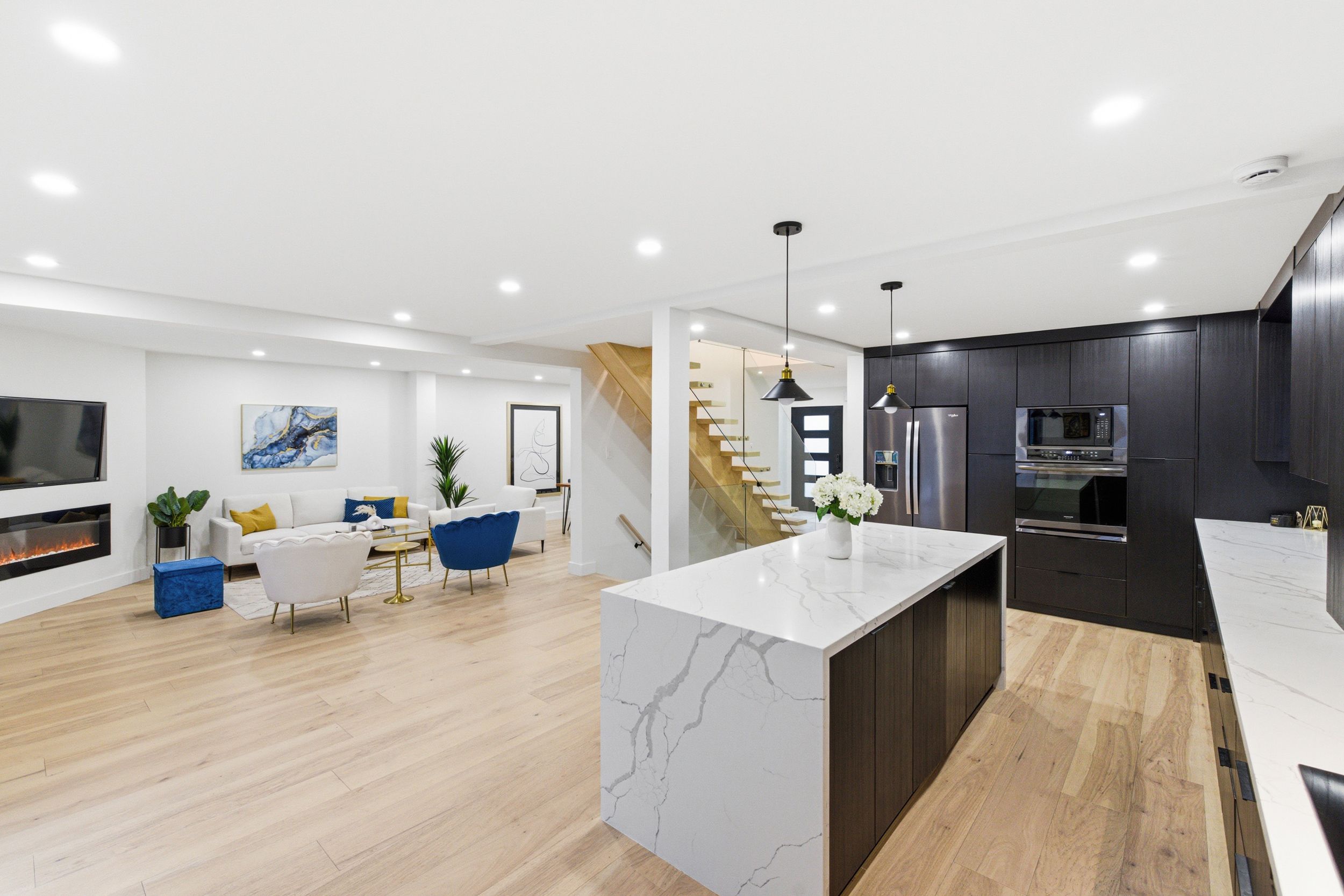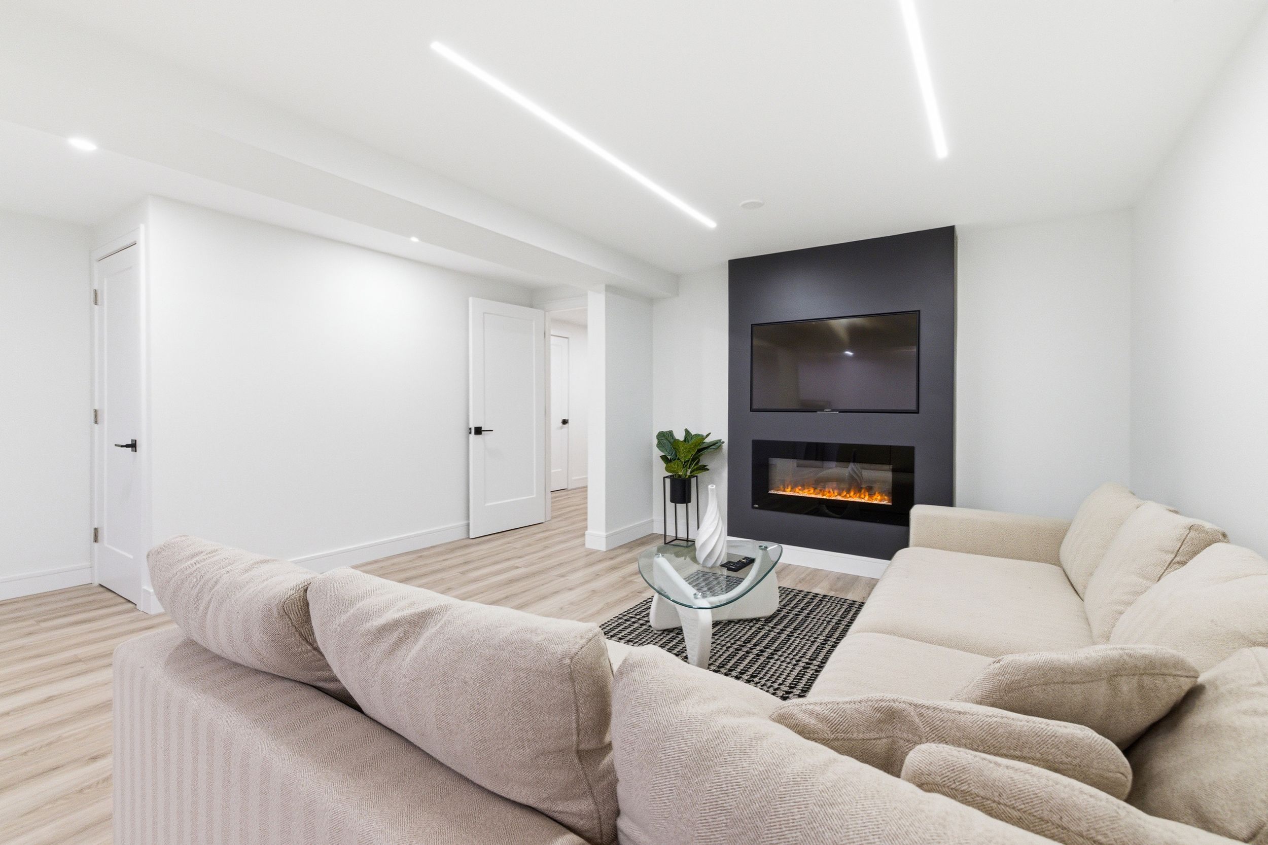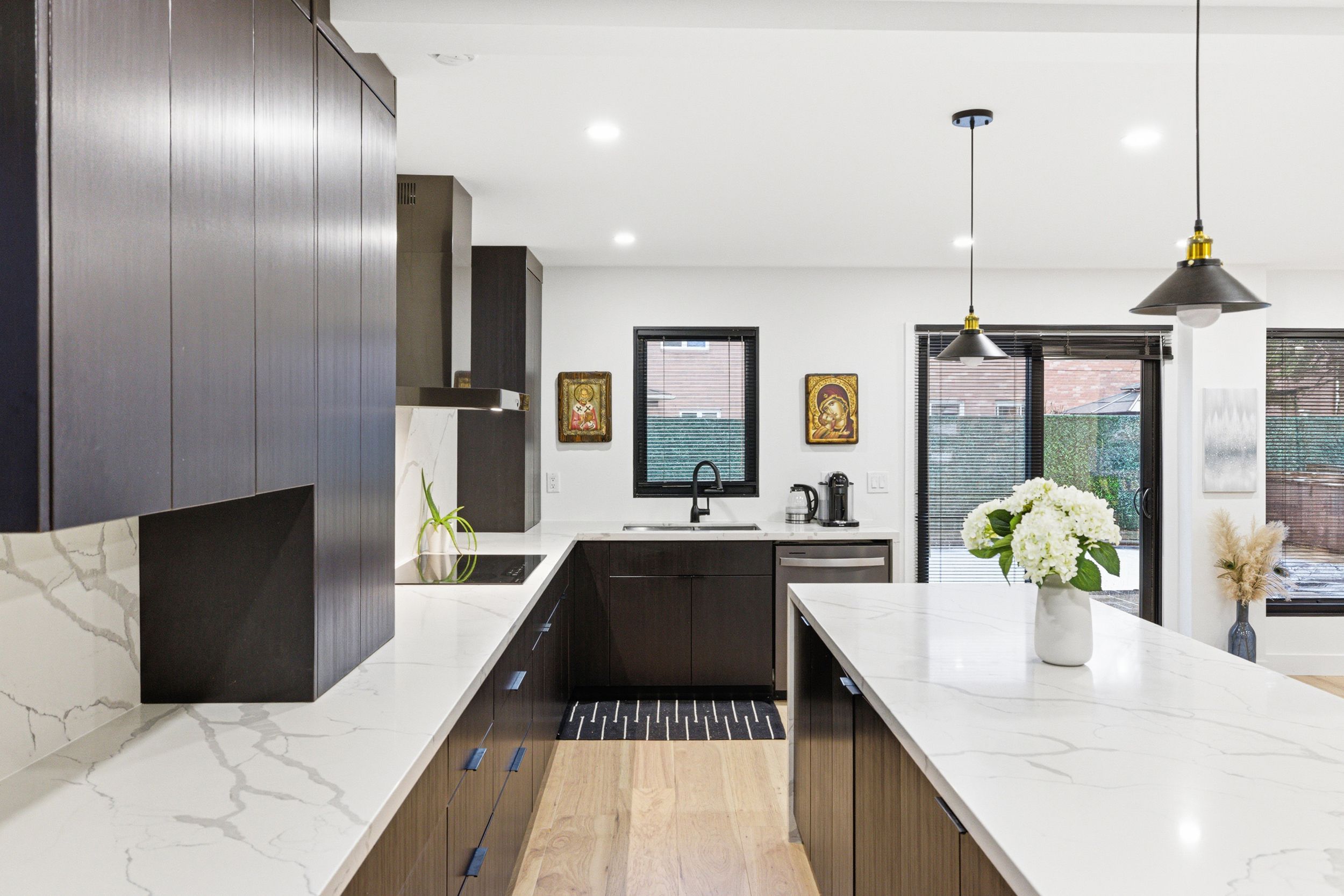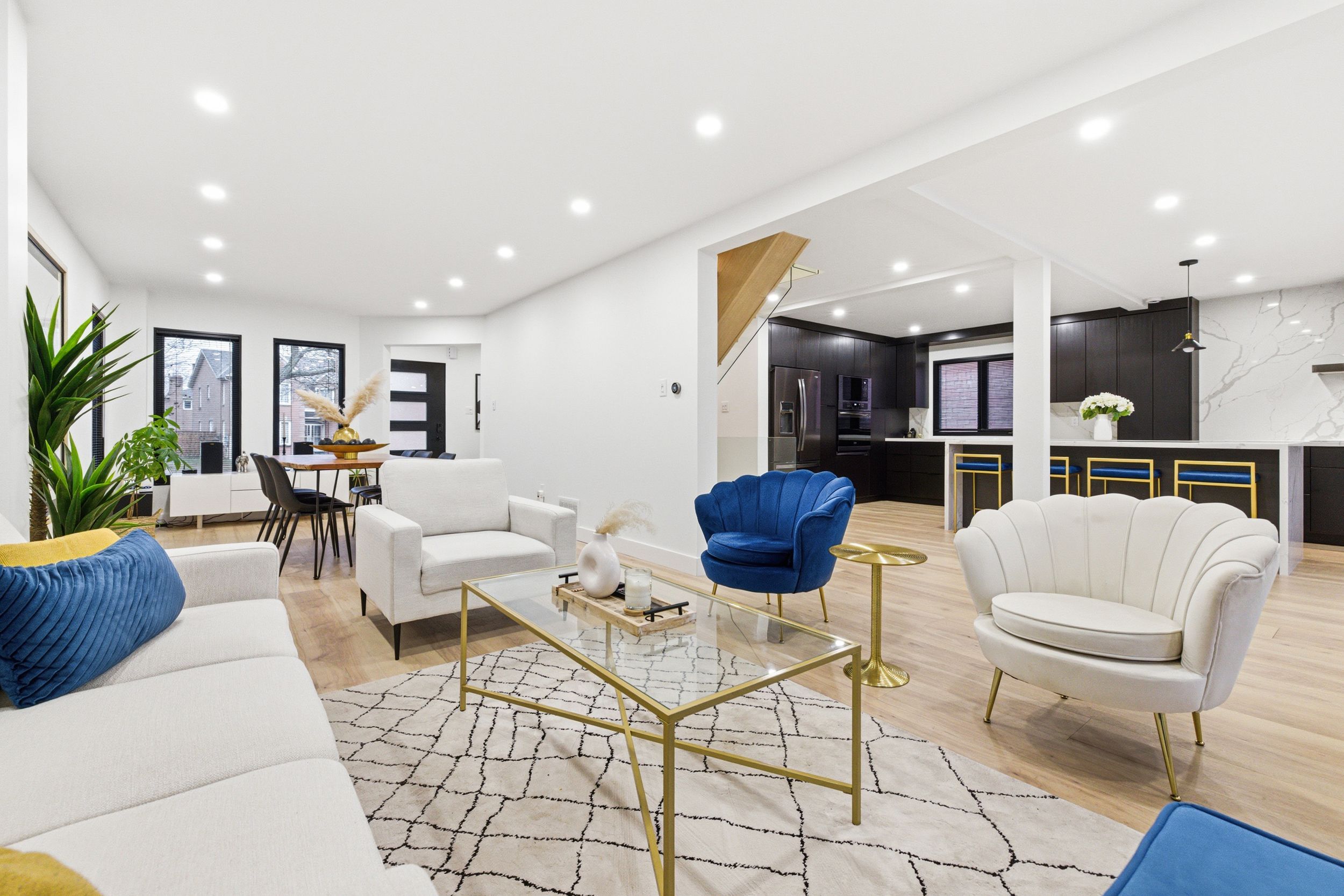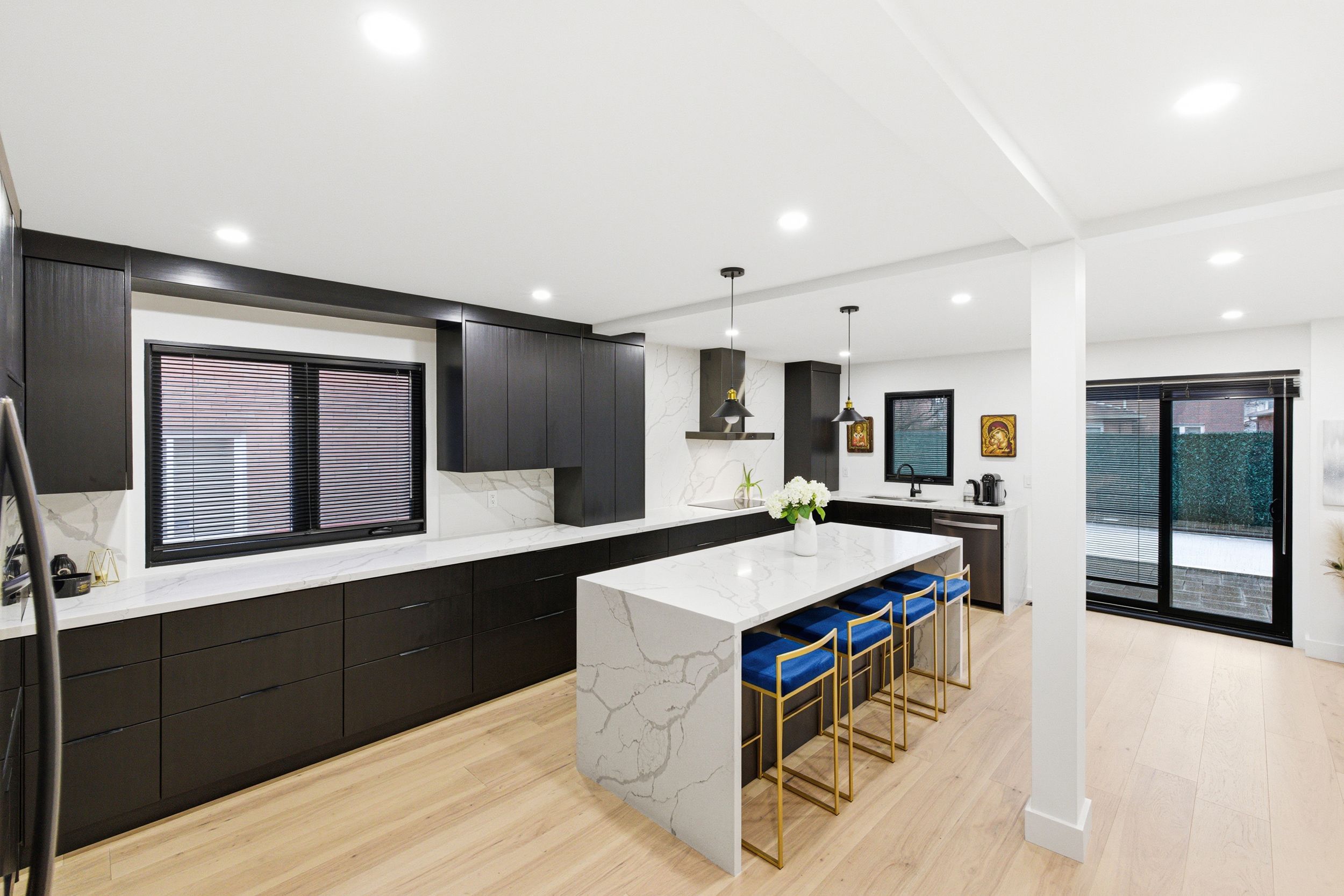 Meticulously renovated from top to bottom in 2022, this exceptional residence is a showcase of modern design and refined living. A striking custom floating staircase with a sleek glass railing sets the tone upon entry-an architectural statement that immediately defines the home's elevated aesthetic. Thoughtfully reimagined with no detail overlooked, the property features all-new windows and doors (2022), wide-plank oak hardwood flooring on the main and upper levels, and elegant electric fireplaces that add warmth and ambiance throughout. At the heart of the home, the designer kitchen impresses with premium appliances, quartz countertops and backsplash, and a dramatic waterfall island-perfectly suited for both everyday living and upscale entertaining. The fully finished basement (completed in 2022), offers additional living space with a second fireplace, ideal for relaxing or hosting in style. Upstairs, the primary suite provides a private retreat, complete with a spa-inspired ensuite featuring luxurious heated floors, while the remaining bathrooms have been tastefully upgraded with contemporary finishes. Outdoors, enjoy a newly paved asphalt driveway (2024) and a beautifully designed backyard oasis featuring a pool installed in 2023 with a new liner-perfect for summer enjoyment. With major systems already updated, including furnace and a/c (2016) and roof (approx. 2016), this turnkey home delivers a rare combination of design, quality, and lifestyle.