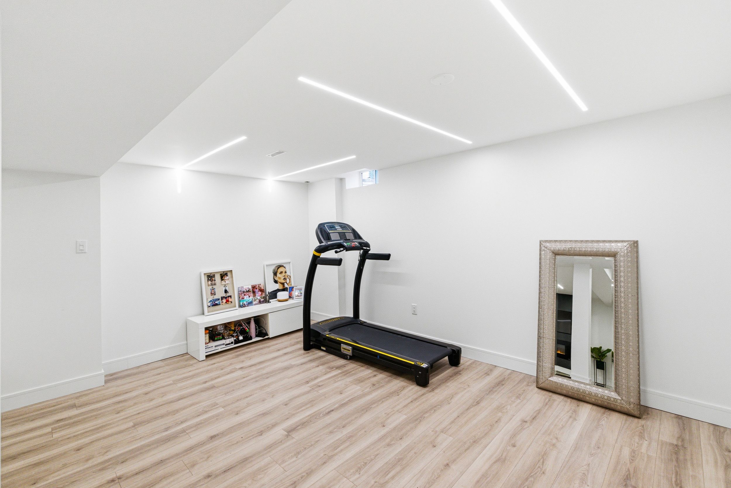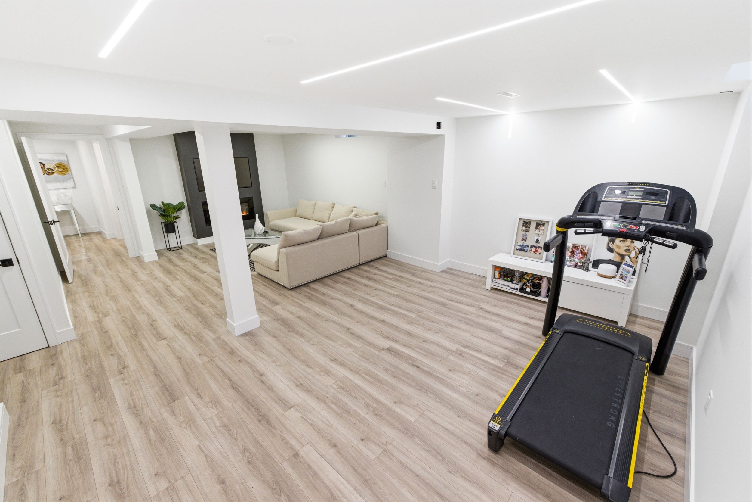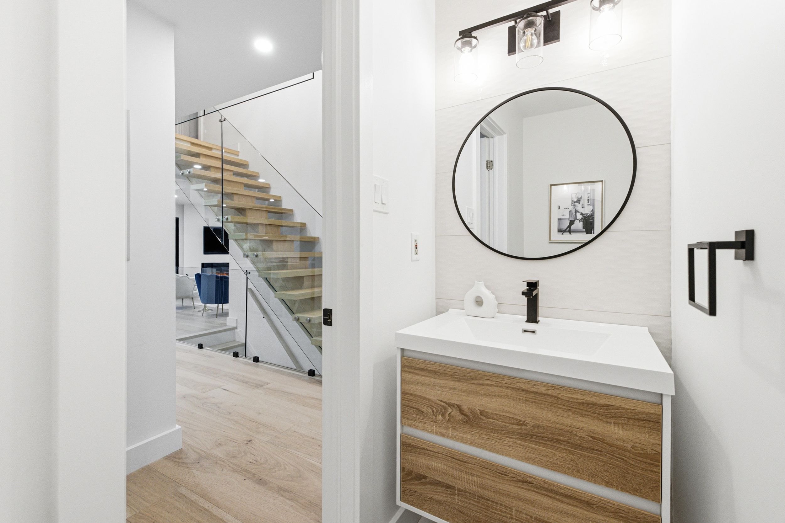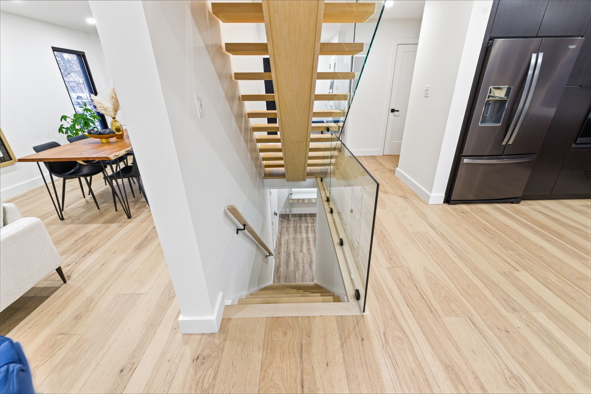 Meticulously renovated from top to bottom in 2022, this exceptional residence is a showcase of modern design and refined living. A striking custom floating staircase with a sleek glass railing sets the tone upon entry-an architectural statement that immediately defines the home's elevated aesthetic. Thoughtfully reimagined with no detail overlooked, the property features all-new windows and doors (2022), wide-plank oak hardwood flooring on the main and upper levels, and elegant electric fireplaces that add warmth and ambiance throughout. At the heart of the home, the designer kitchen impresses with premium appliances, quartz countertops and backsplash, and a dramatic waterfall island-perfectly suited for both everyday living and upscale entertaining. The fully finished basement (completed in 2022), offers additional living space with a second fireplace, ideal for relaxing or hosting in style. Upstairs, the primary suite provides a private retreat, complete with a spa-inspired ensuite featuring luxurious heated floors, while the remaining bathrooms have been tastefully upgraded with contemporary finishes. Outdoors, enjoy a newly paved asphalt driveway (2024) and a beautifully designed backyard oasis featuring a pool installed in 2023 with a new liner-perfect for summer enjoyment. With major systems already updated, including furnace and a/c (2016) and roof (approx. 2016), this turnkey home delivers a rare combination of design, quality, and lifestyle.
