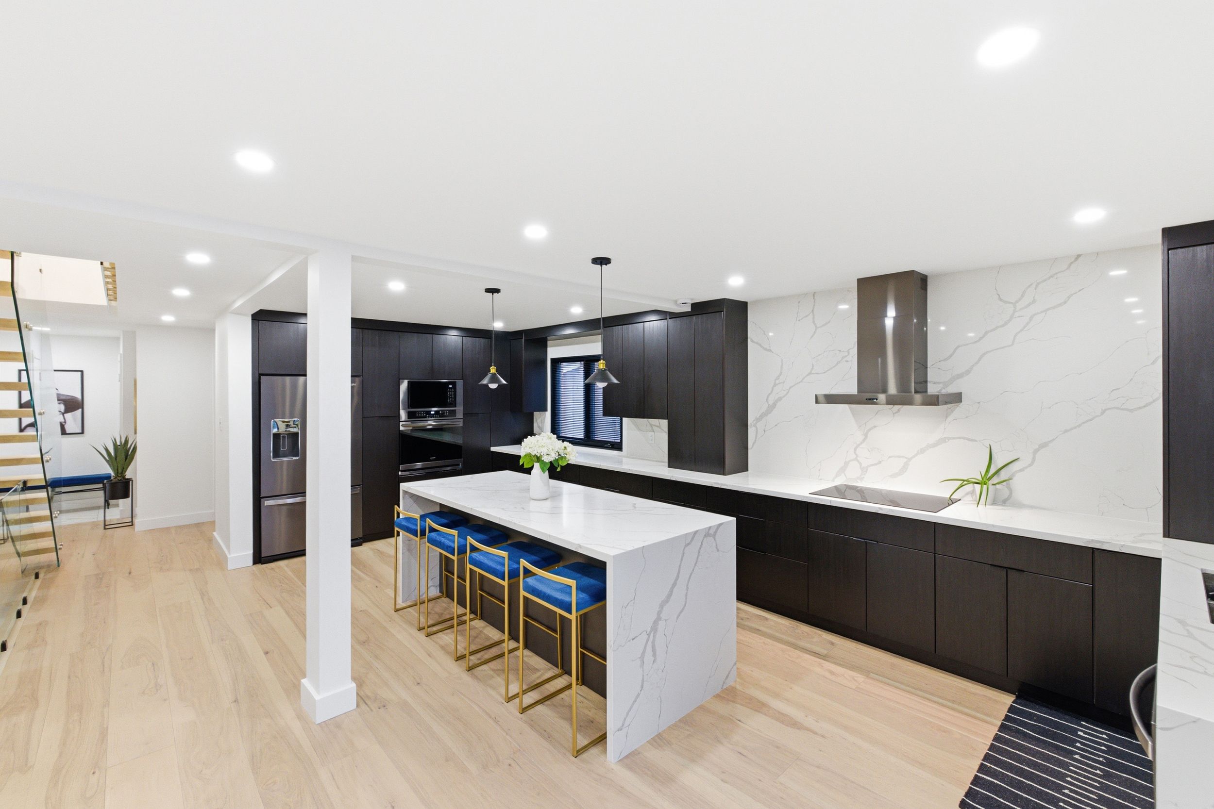 • Designer kitchen features premium appliances and a stunning waterfall island.