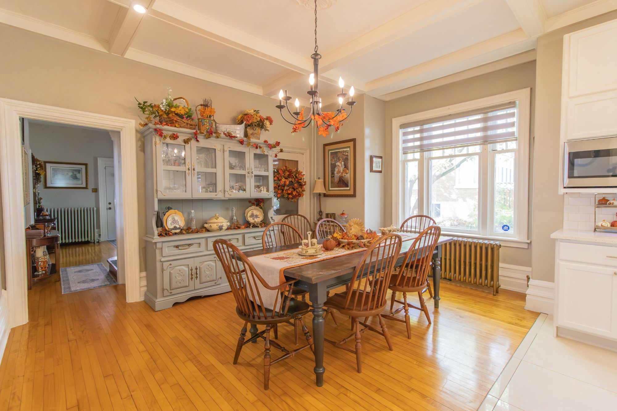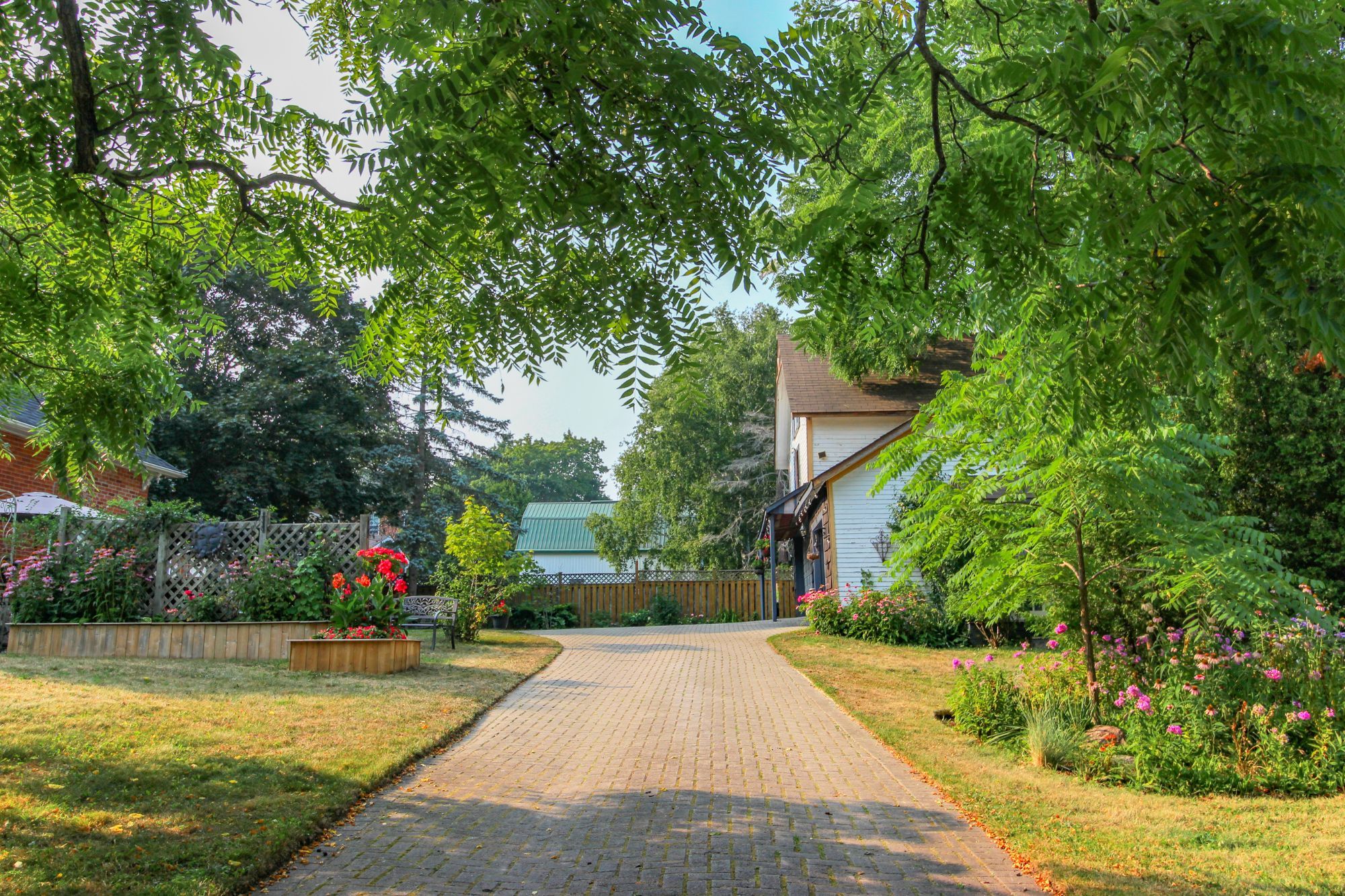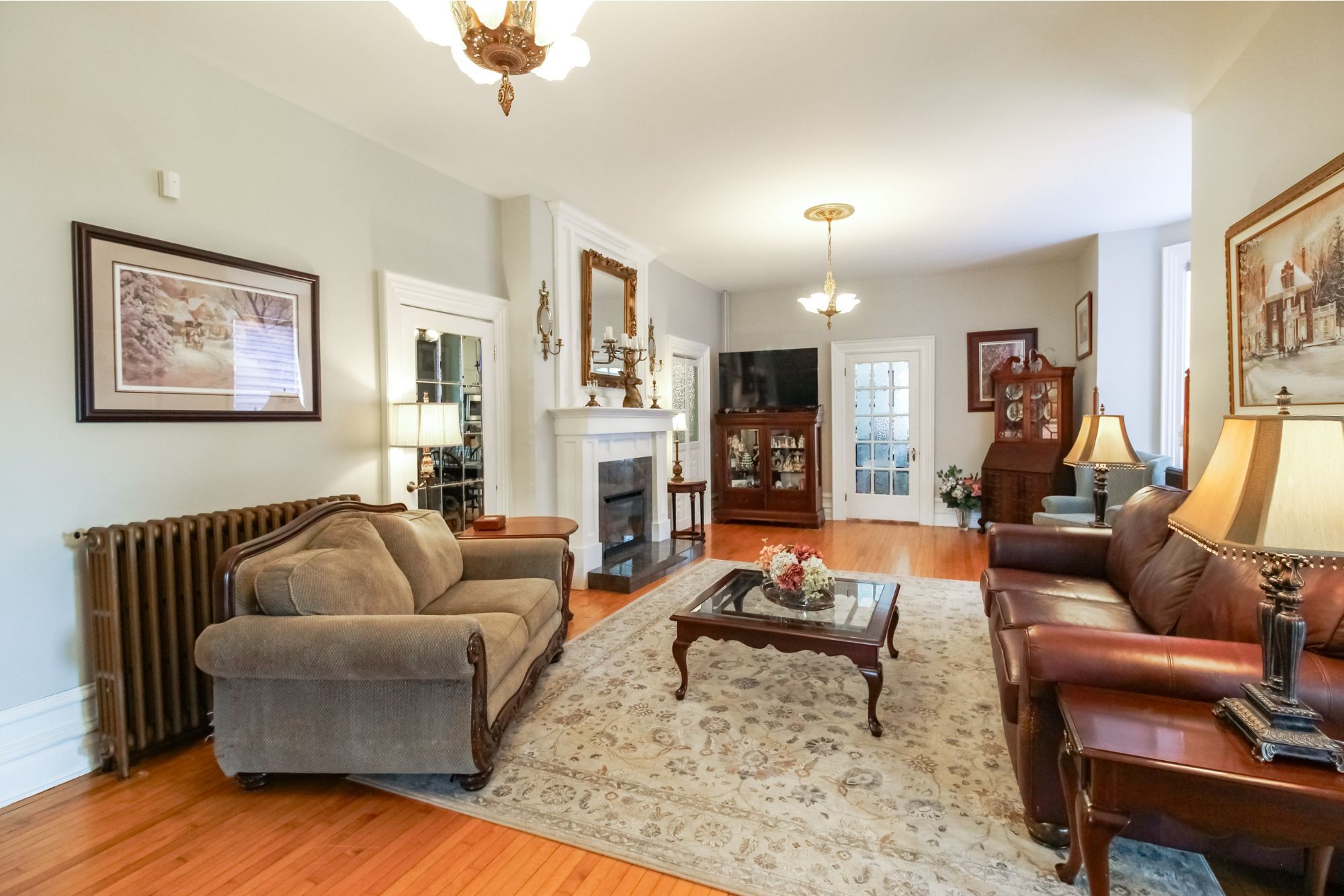 Welcome to this magnificent 2-1/2 storey brick circa 1870's century home, located in the downtown section of the village of colborne. This corner 0. 63 acre lot with interlocking brick driveway running through the property provides access/egress to both division and creek streets. The home's grandeur is one of the largest in the village, accentuated by a huge front veranda with white doric columns and ornate brackets under the wide eaves. Designed as an italianate vernacular style, this victorian home boasts an array of architectural details, including some window stained glass inserts, huge baseboards, extensive wood trim and hardwood flooring, glass door knobs, almost 10' main floor ceilings, plus a welcoming front foyer featuring a lit bannister and convenient powder room. The updated family kitchen showcases large porcelain tiles, a stylish white backsplash, s/s appliances and white cabinetry with quartz counters. The island includes a breakfast bar and the waffle white ceiling extends through to the windowed eating area. Off the kitchen, there is a convenient den, plus an expansive combined formal living/dining room with gas fireplace, hardwood floors and bay window area. Relax in the sunroom, complete with a cozy gas fireplace, abundant windows, stained wood ceiling, or step outside to the south deck with gazebo. The rear mudroom also features a gas fireplace with board-and-batten finished walls, plus access to full basement with concrete floor. Venture upstairs to the 2nd level with 3 well-appointed bedrooms, including a primary suite with a bay window and double mirrored closet doors. The upper level also features a large combination bathroom/ldry area with porcelain floor tiles, large walk-in shower, standalone soaker tub plus laundry facilities with front-load appliances. A spiral oak staircase leads to the 3rd level with a 4th bedroom, gas linear fireplace, round palladian window dormer, skylights, plus 3-pc ensuite, mirrored closet and generous storage.