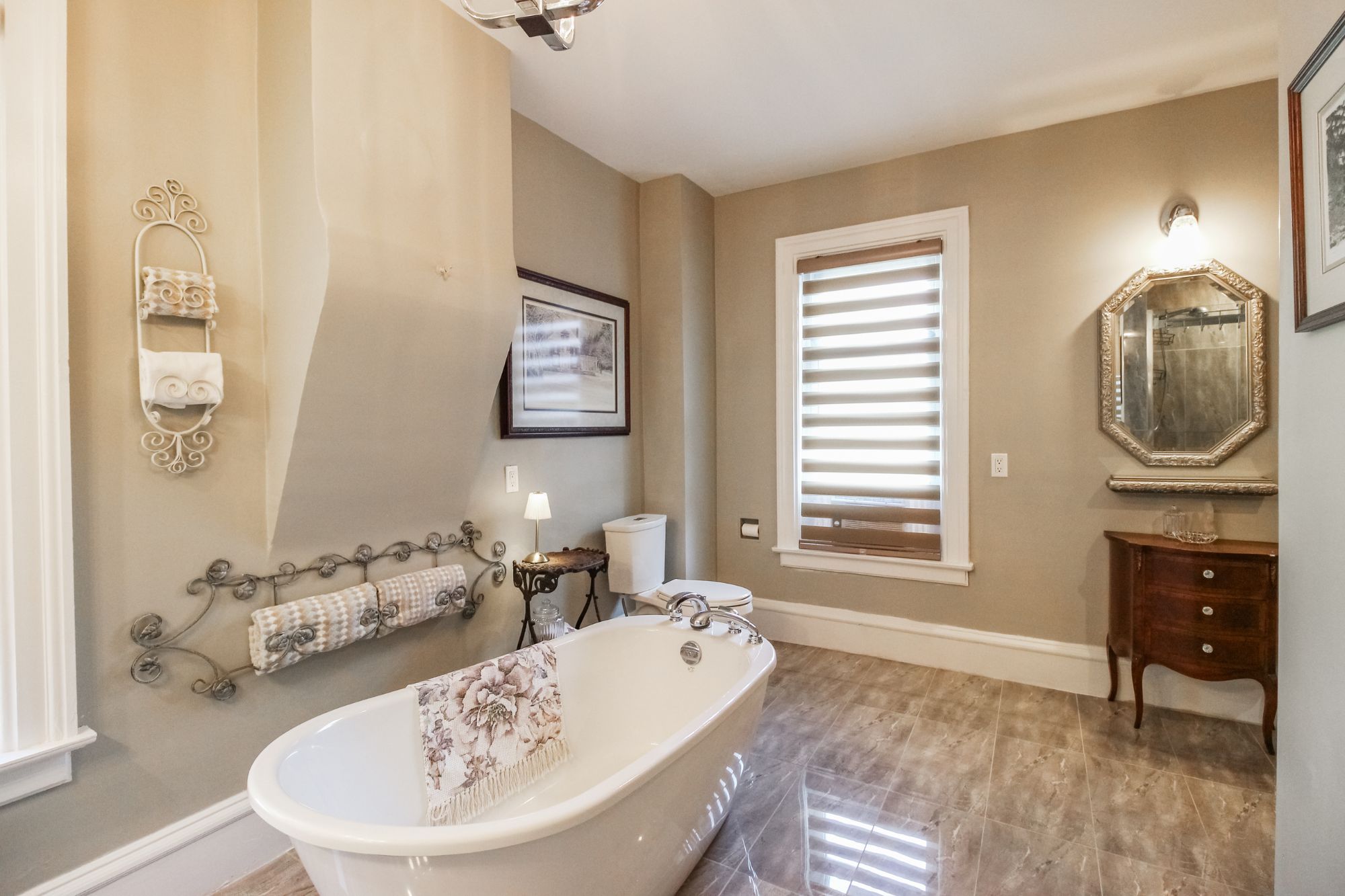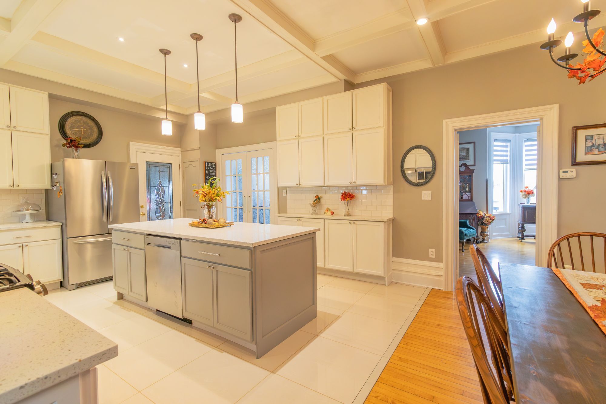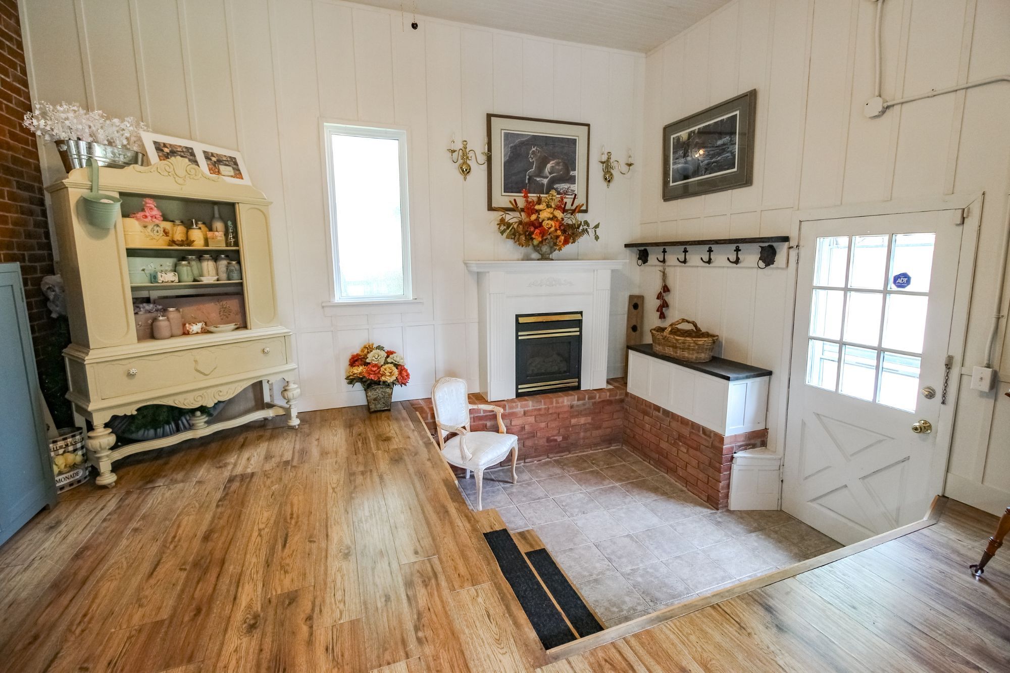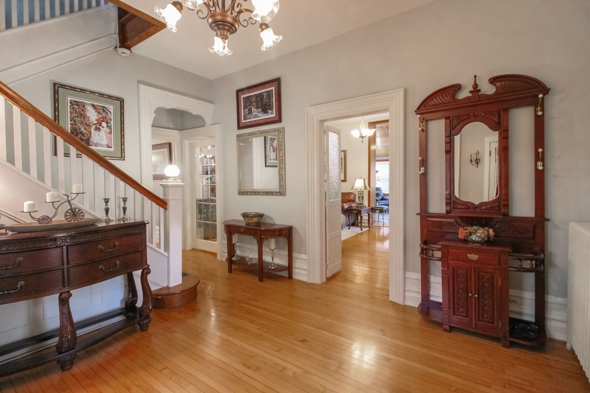 Welcome to this magnificent 2-1/2 storey brick circa 1870's century home, located in the downtown section of the village of colborne. This corner 0. 63 acre lot with interlocking brick driveway running through the property provides access/egress to both division and creek streets. The home's grandeur is one of the largest in the village, accentuated by a huge front veranda with white doric columns and ornate brackets under the wide eaves. Designed as an italianate vernacular style, this victorian home boasts an array of architectural details, including some window stained glass inserts, huge baseboards, extensive wood trim and hardwood flooring, glass door knobs, almost 10' main floor ceilings, plus a welcoming front foyer featuring a lit bannister and convenient powder room. The updated family kitchen showcases large porcelain tiles, a stylish white backsplash, s/s appliances and white cabinetry with quartz counters. The island includes a breakfast bar and the waffle white ceiling extends through to the windowed eating area. Off the kitchen, there is a convenient den, plus an expansive combined formal living/dining room with gas fireplace, hardwood floors and bay window area. Relax in the sunroom, complete with a cozy gas fireplace, abundant windows, stained wood ceiling, or step outside to the south deck with gazebo. The rear mudroom also features a gas fireplace with board-and-batten finished walls, plus access to full basement with concrete floor. Venture upstairs to the 2nd level with 3 well-appointed bedrooms, including a primary suite with a bay window and double mirrored closet doors. The upper level also features a large combination bathroom/ldry area with porcelain floor tiles, large walk-in shower, standalone soaker tub plus laundry facilities with front-load appliances. A spiral oak staircase leads to the 3rd level with a 4th bedroom, gas linear fireplace, round palladian window dormer, skylights, plus 3-pc ensuite, mirrored closet and generous storage.